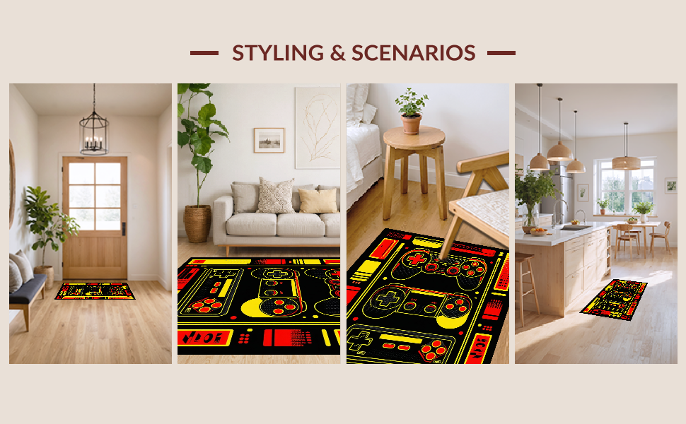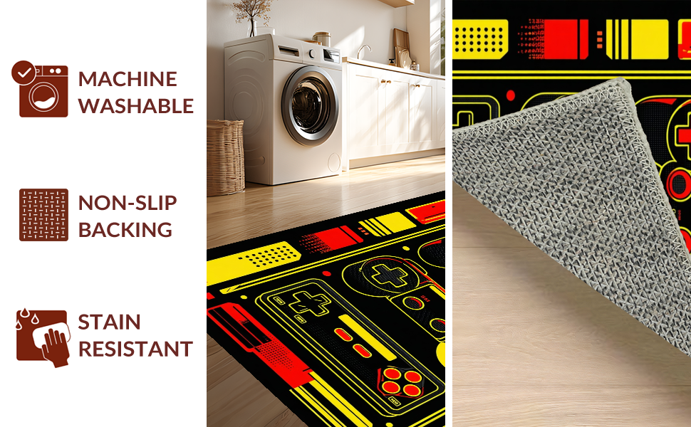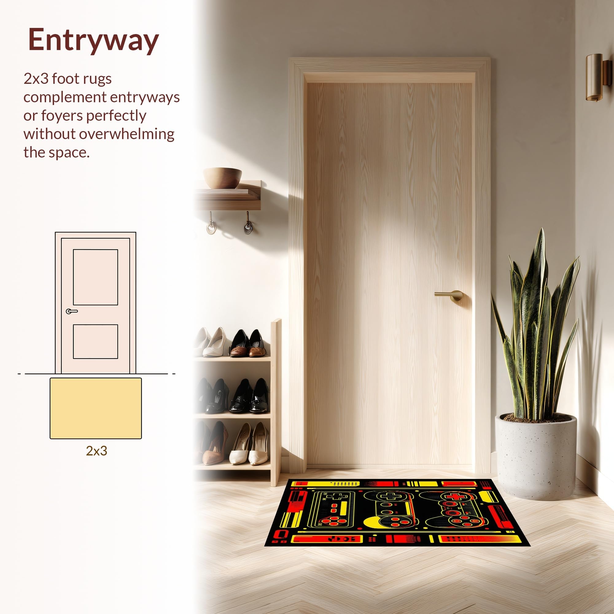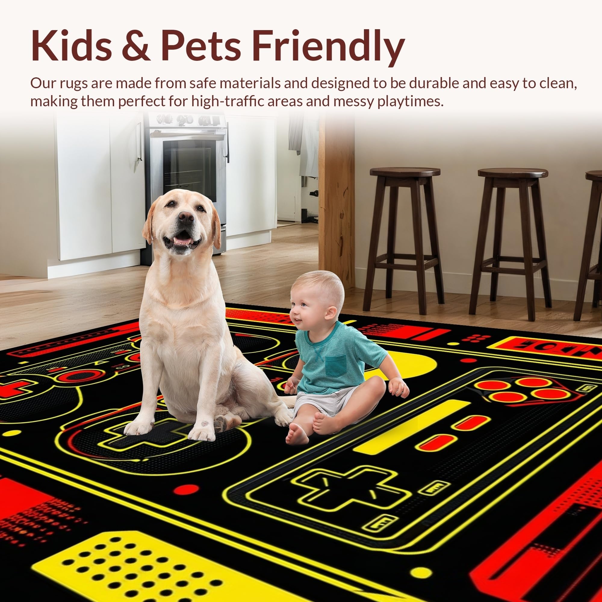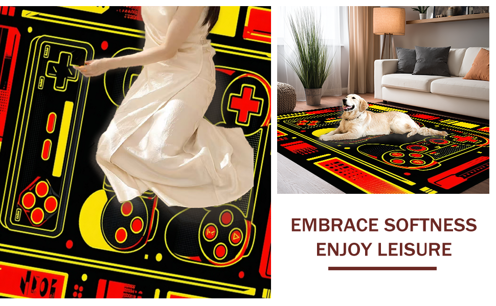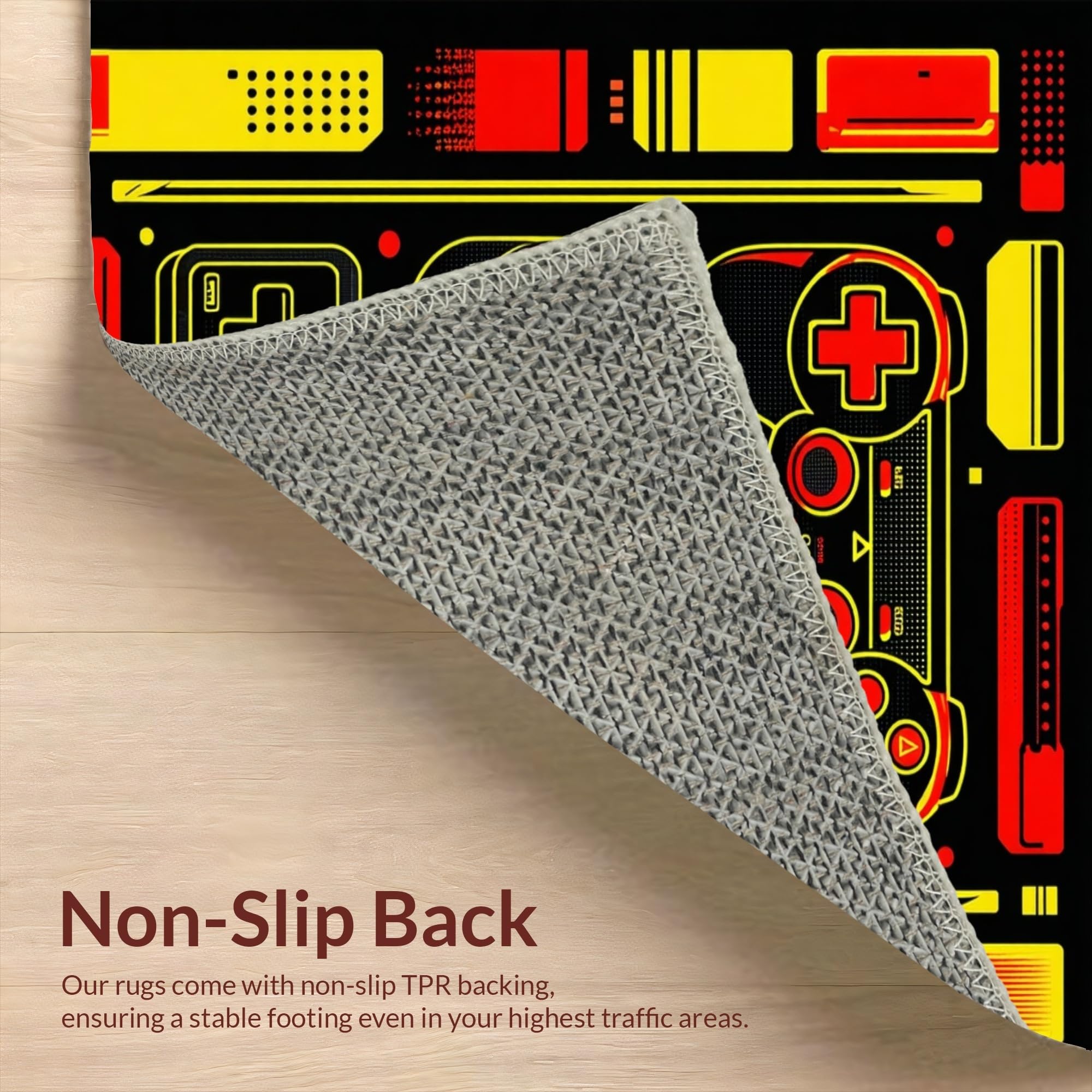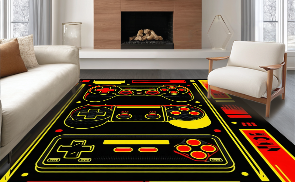 Ultra Soft Area Rug, Non Slip, Stain Resistant, Washable Area Rugs for Living Room, Bedroom, Edgy Abstract Gamepad Visuals(Black) Overview: