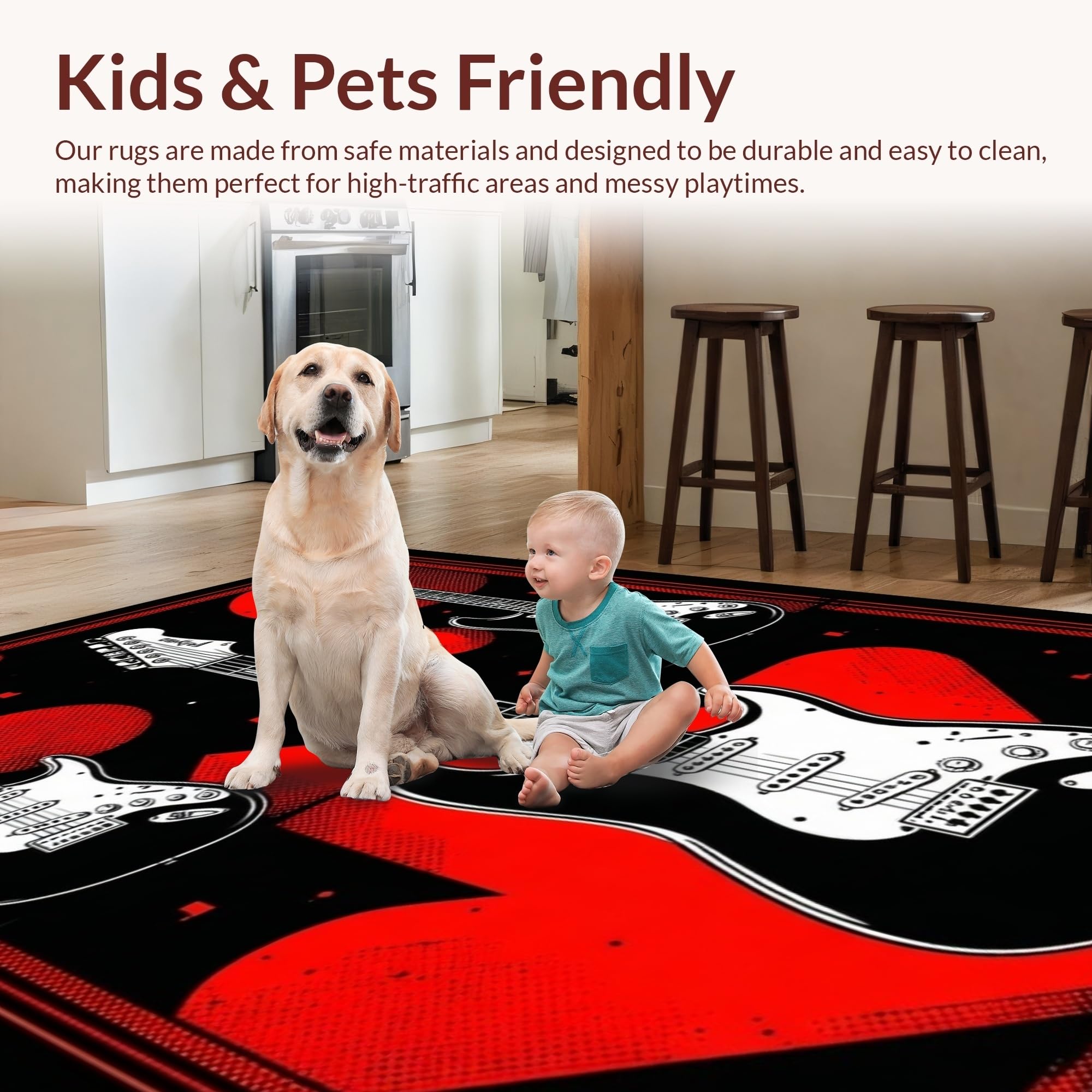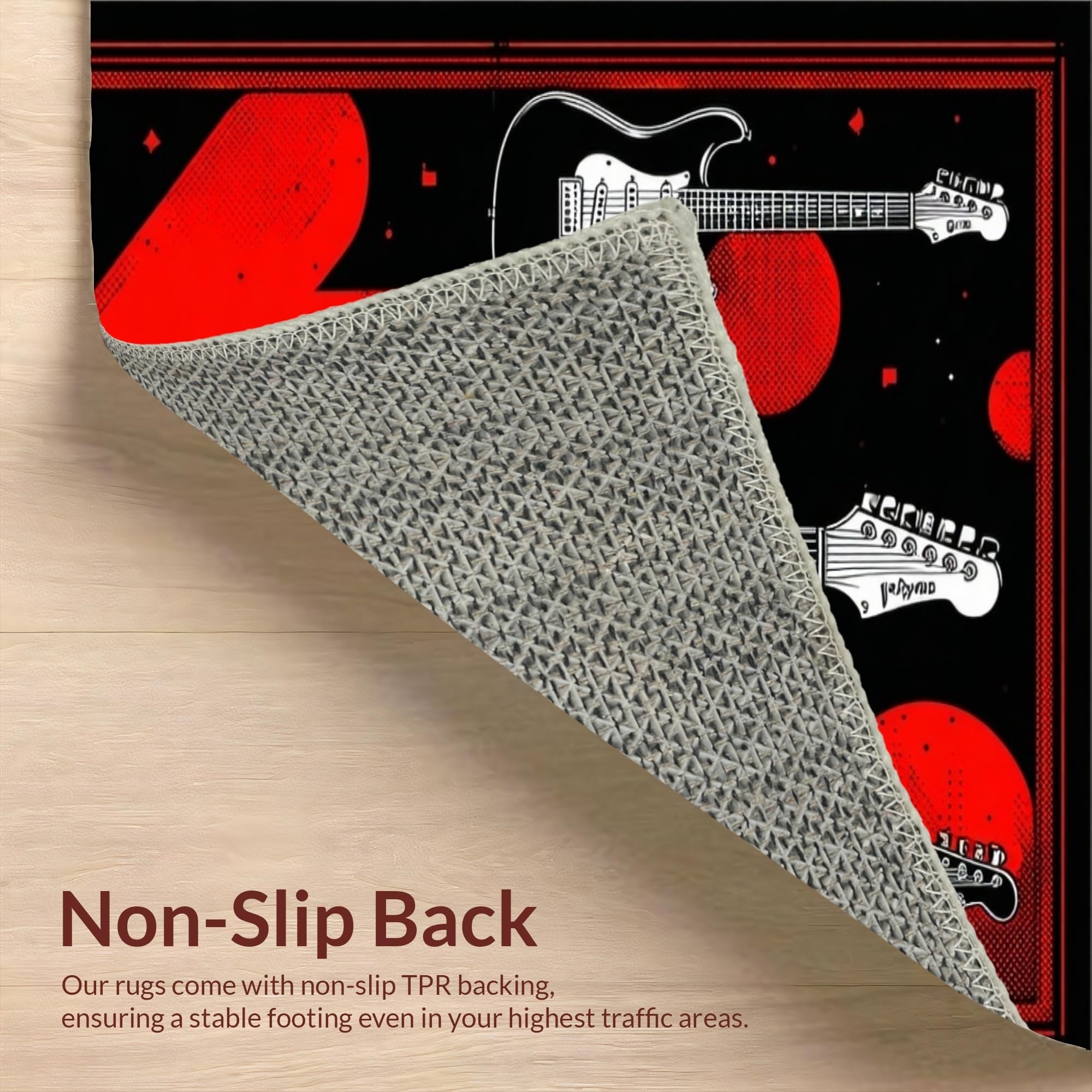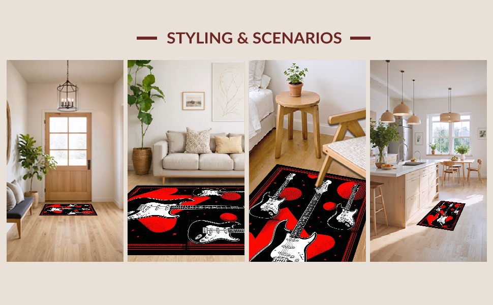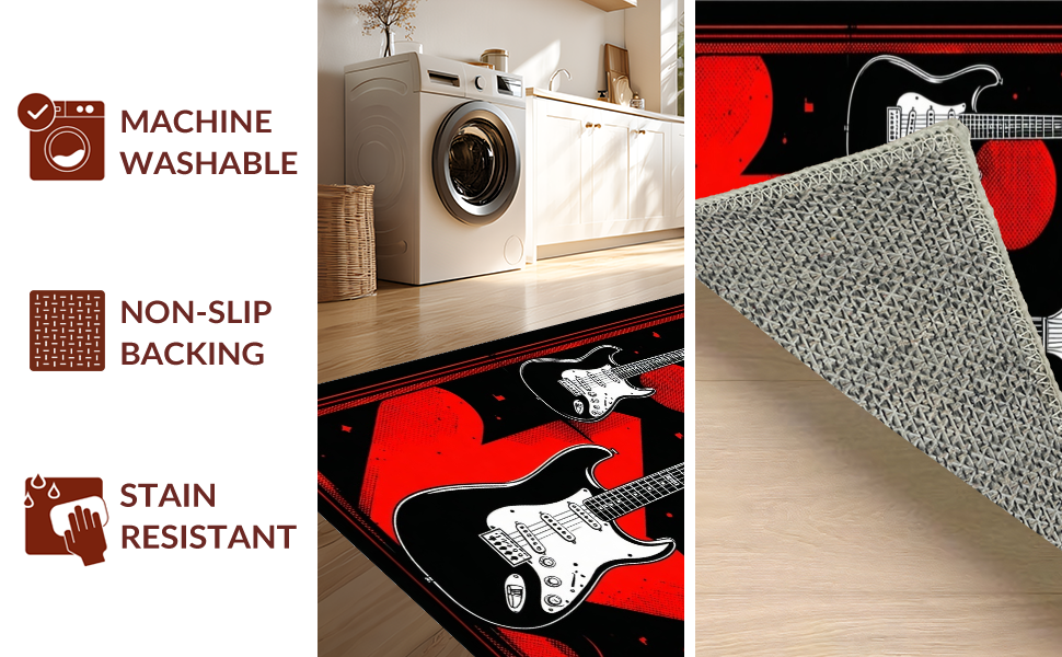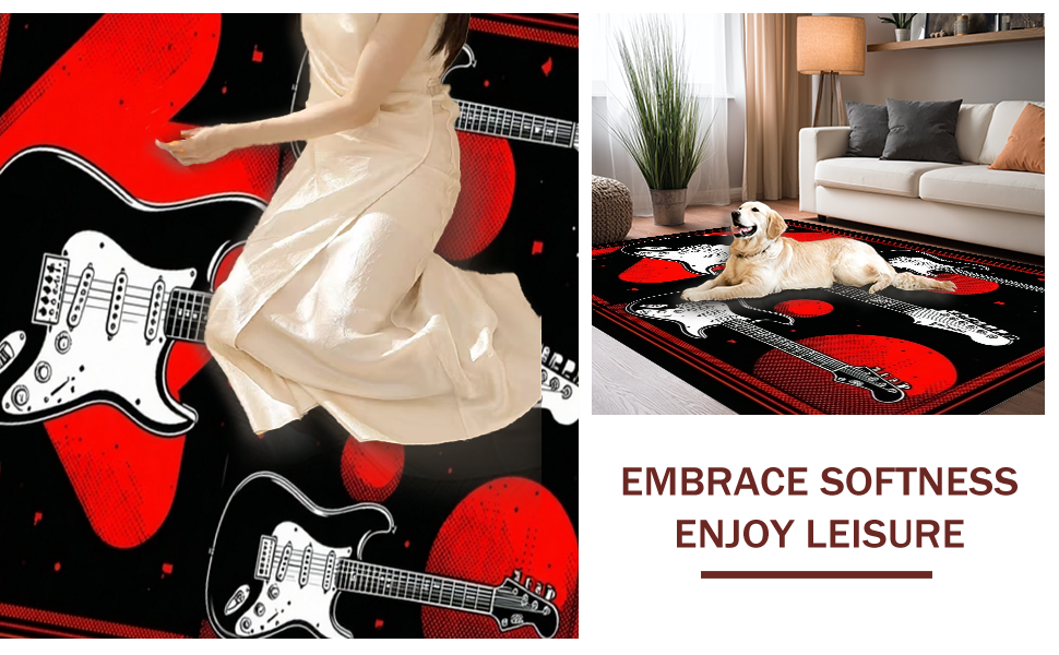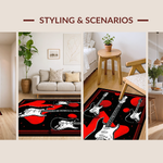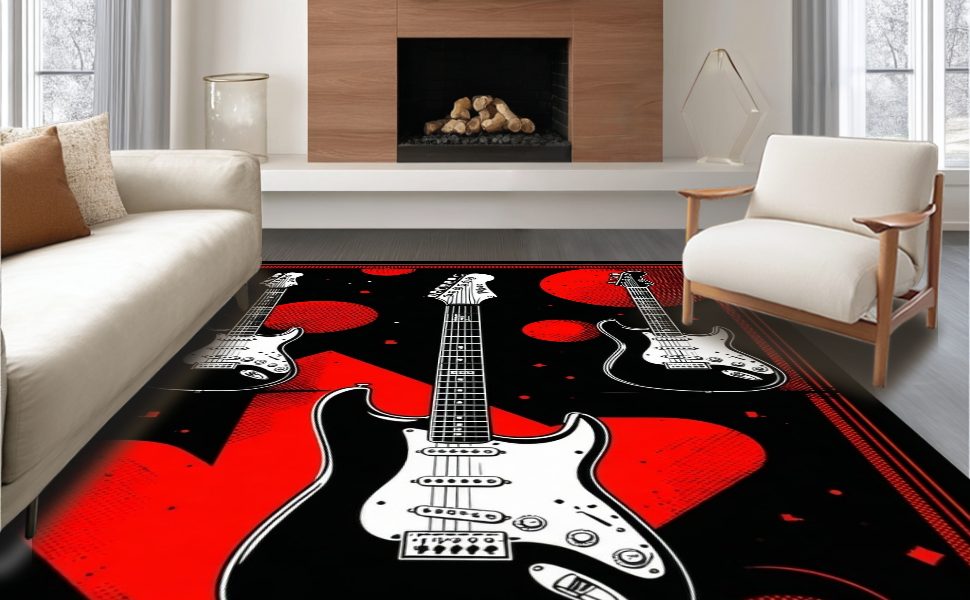 Ultra Soft Area Rug, Non Slip, Stain Resistant, Washable Area Rugs for Living Room, Bedroom, Edgy Abstract Guitar Composition(Black) Overview: