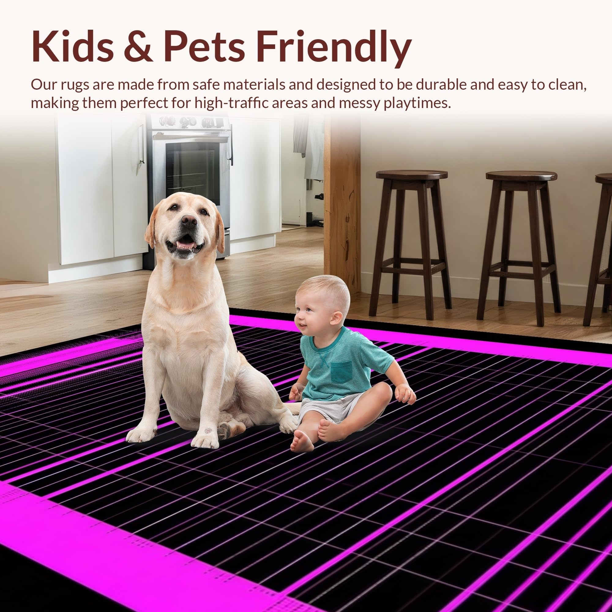 Ultra Soft Area Rug, Non Slip, Stain Resistant, Washable Area Rugs for Living Room, Bedroom, Edgy Layered Design Elements(Pink) Overview: