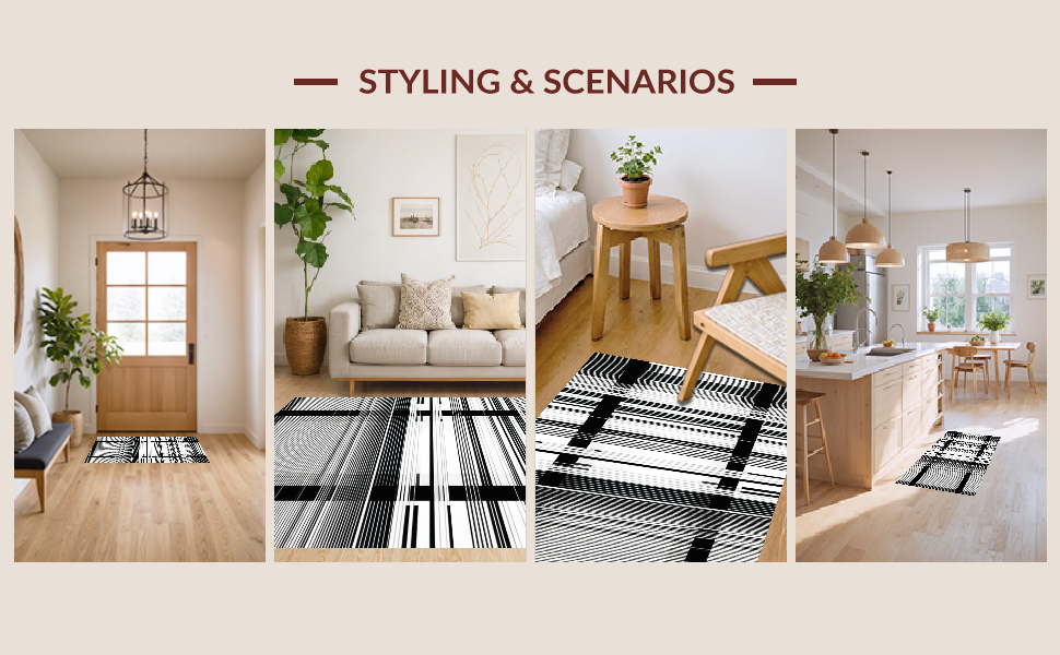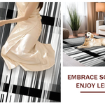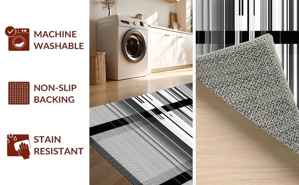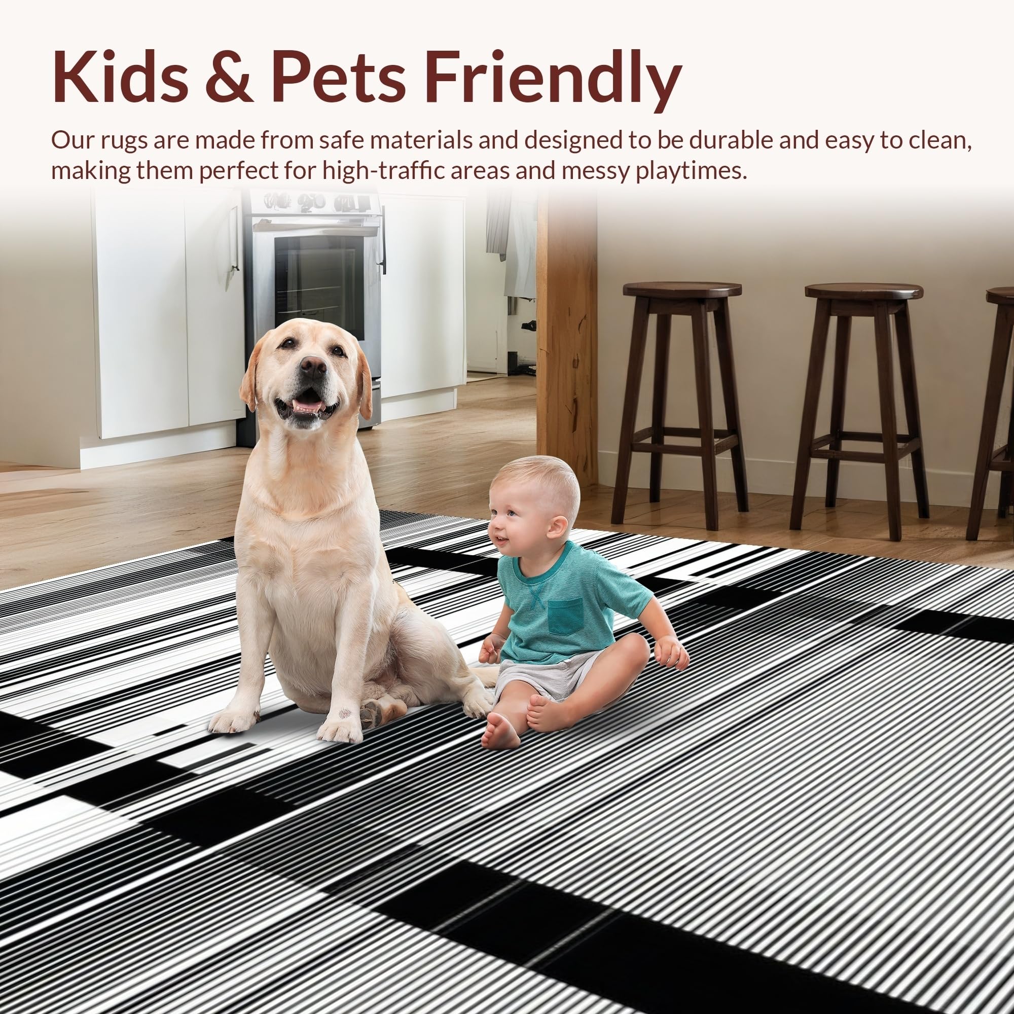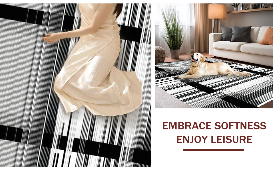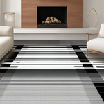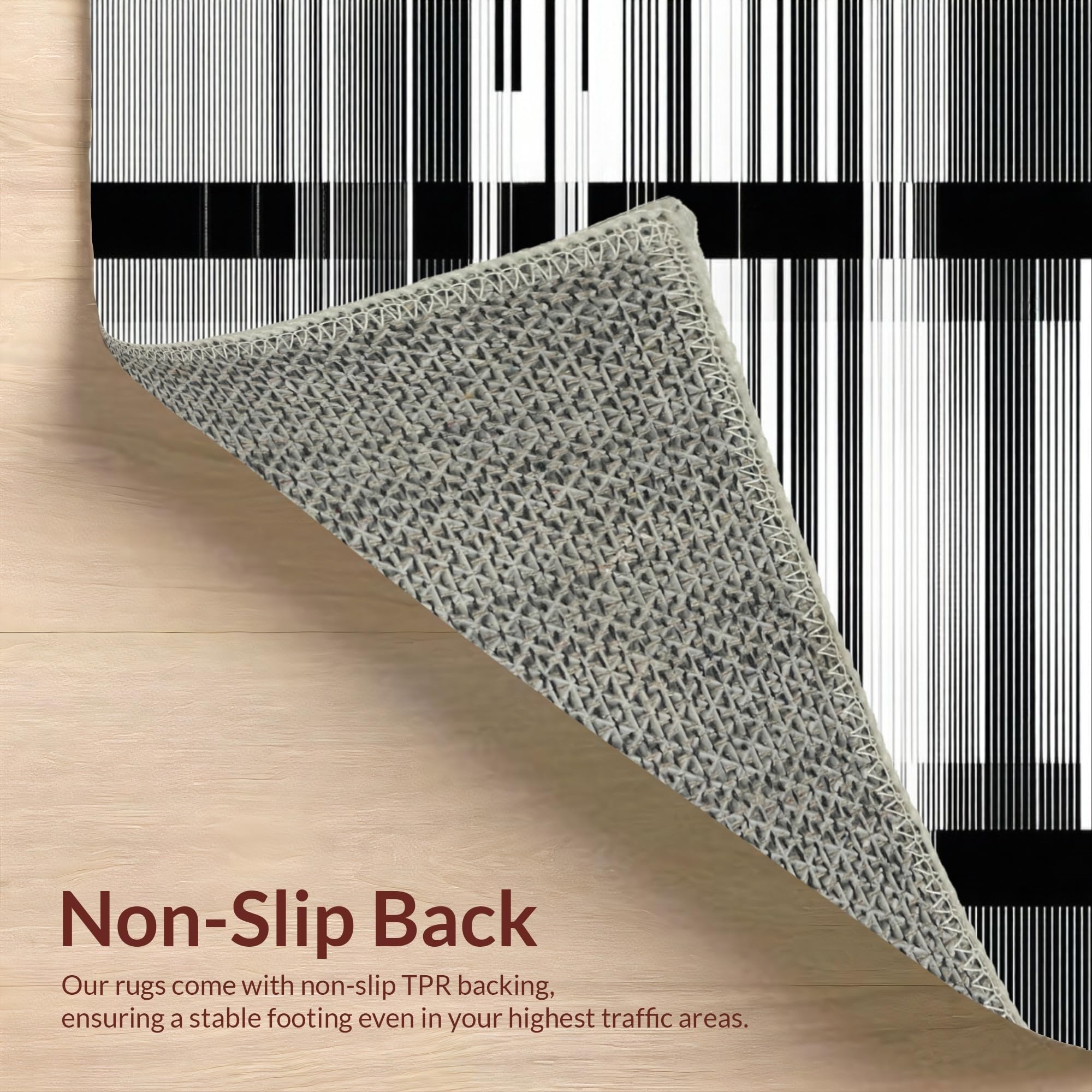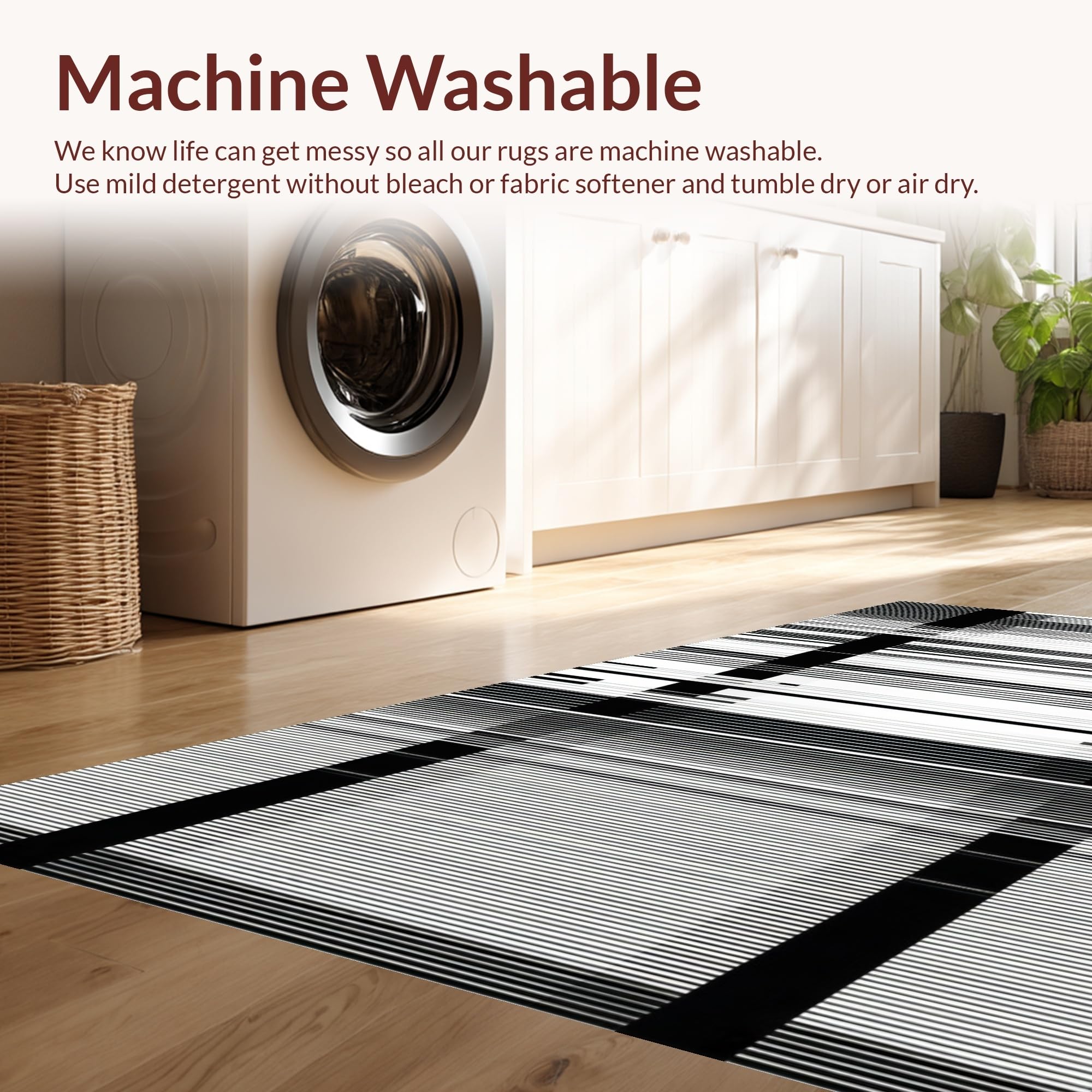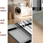 Ultra Soft Area Rug, Non Slip, Stain Resistant, Washable Area Rugs for Living Room, Bedroom, Edgy Modern Symmetrical Lines(Black) Overview: