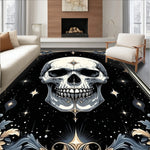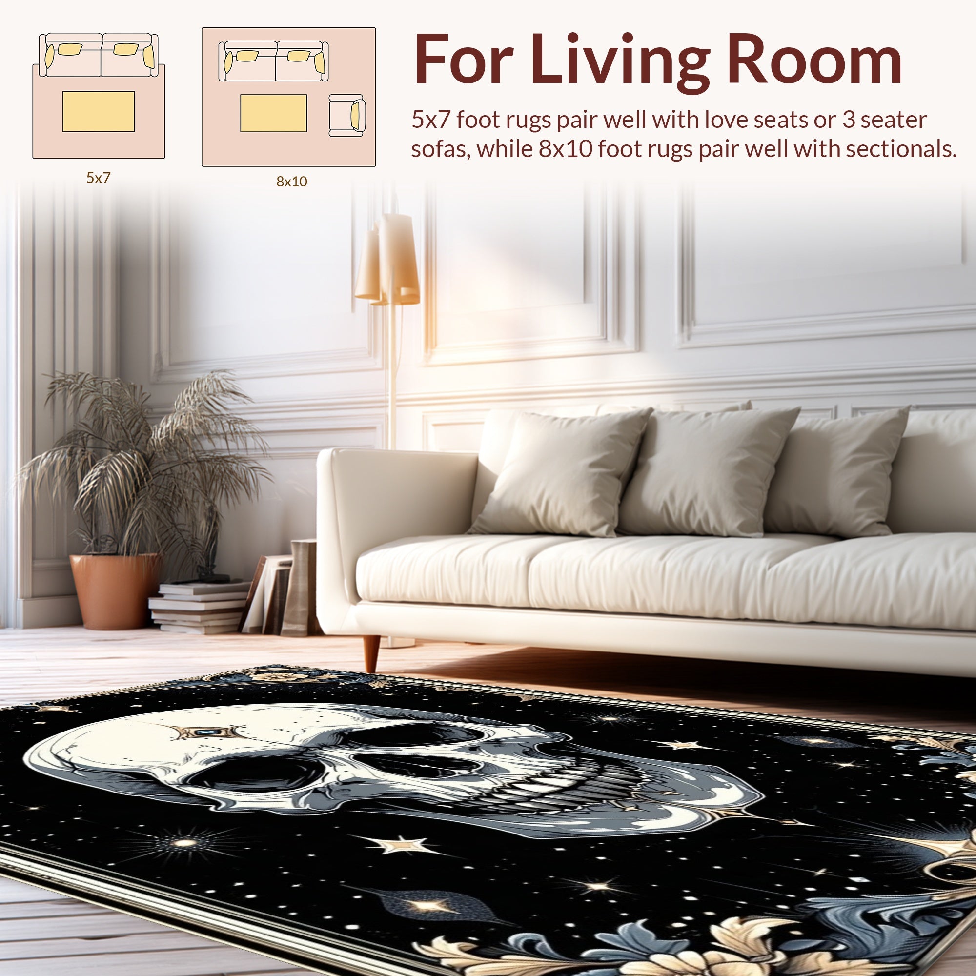 Flatwoven High Traffic Area Rug, Edgy Monochrome Gothic Accents, Non Slip, Stain Resistant, Washable Area Rugs for Living Room, Bedroom (Black) Overview: