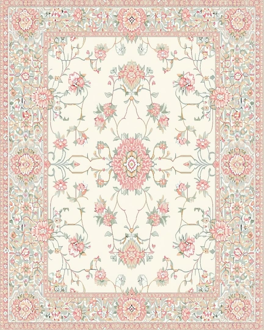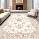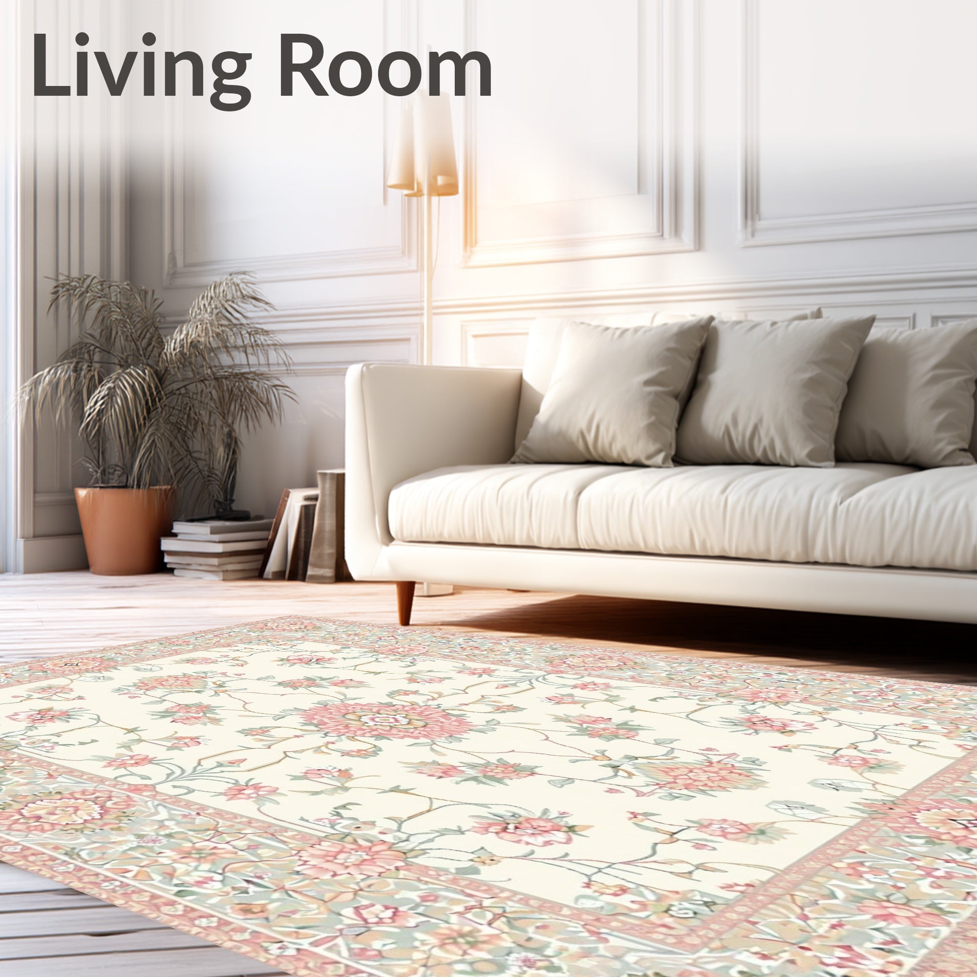 Ultra Soft Area Rug, Non Slip, Stain Resistant, Washable Area Rugs for Living Room, Bedroom, Educational Children with Floral Motifs and Pastel Colors(Ivory) Overview: