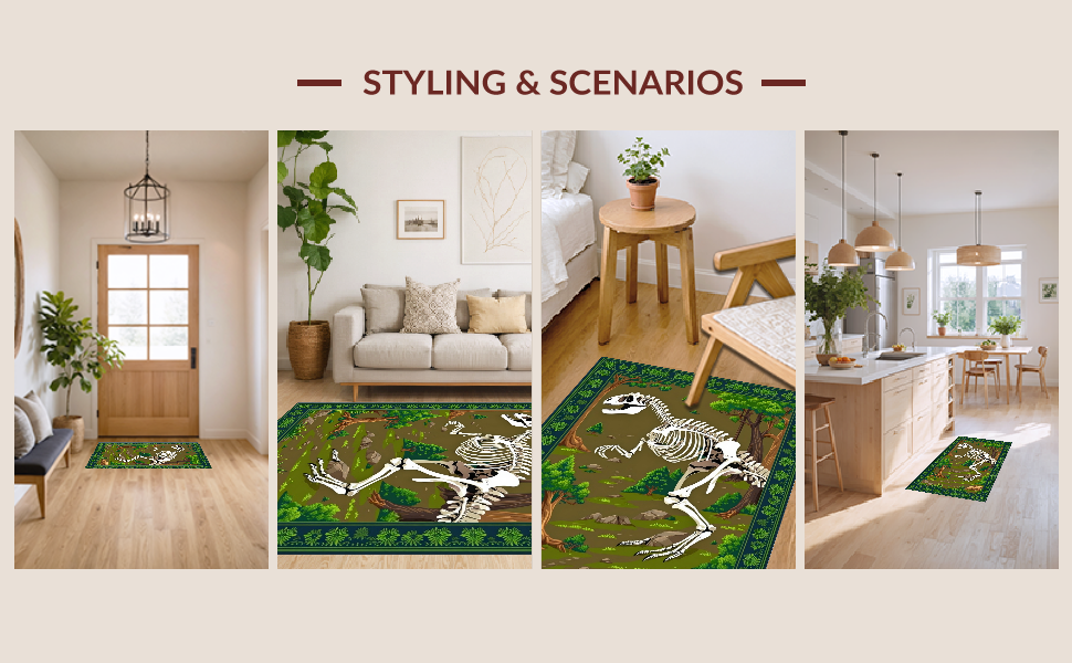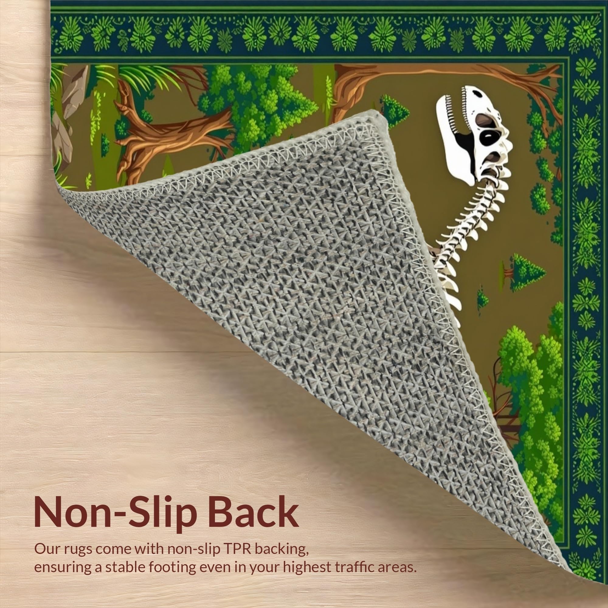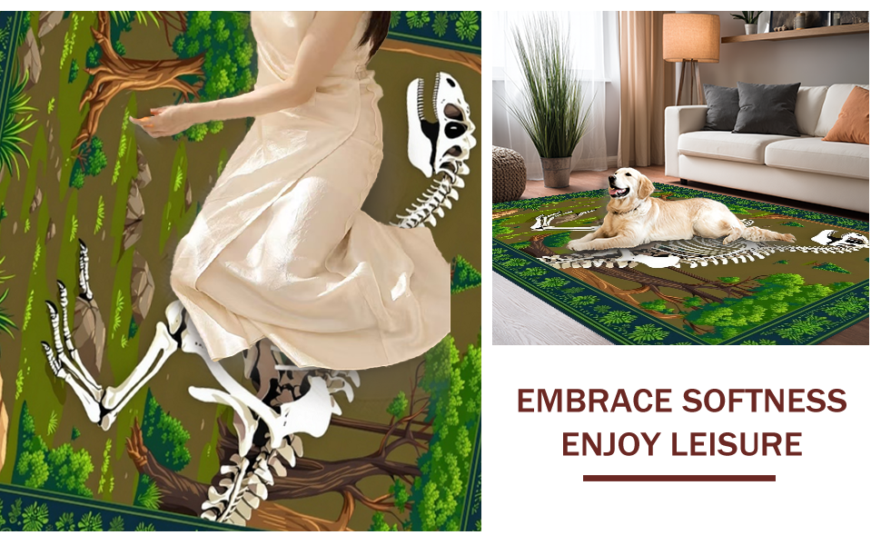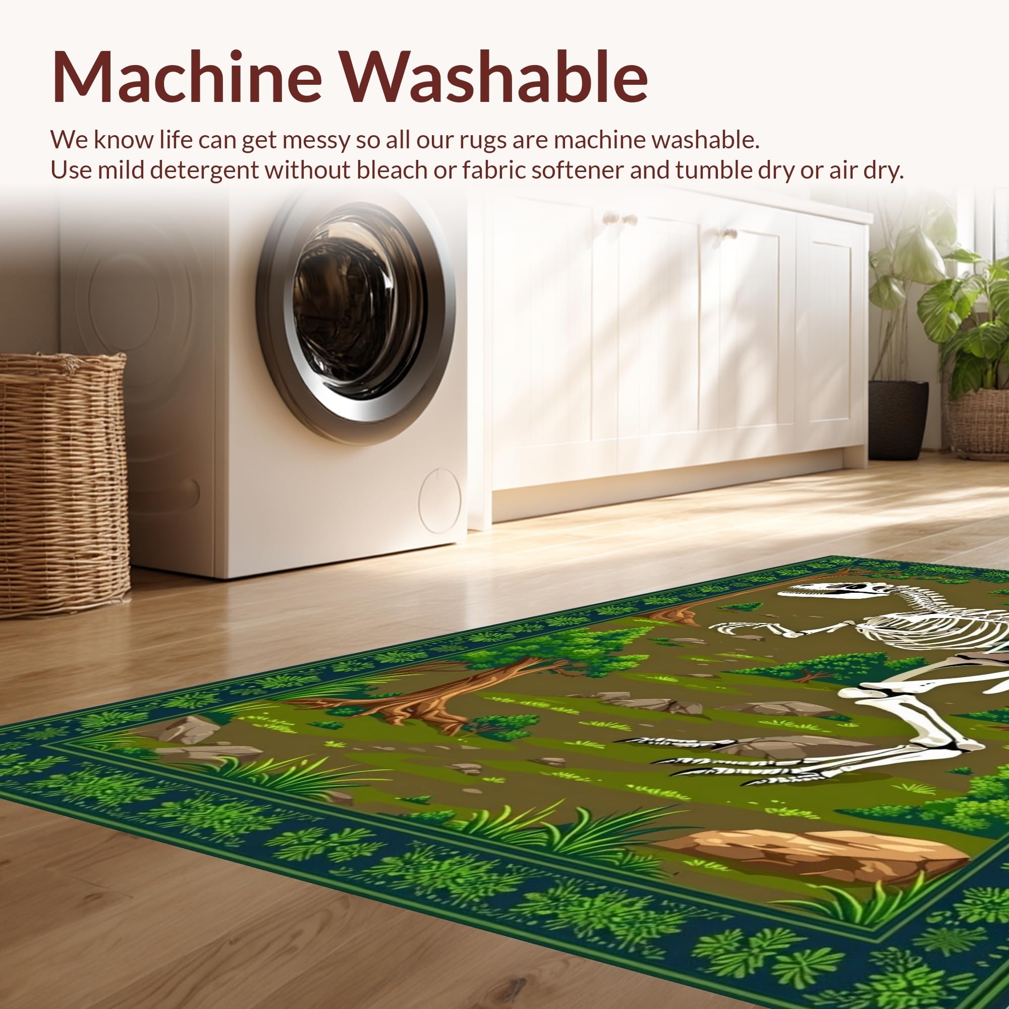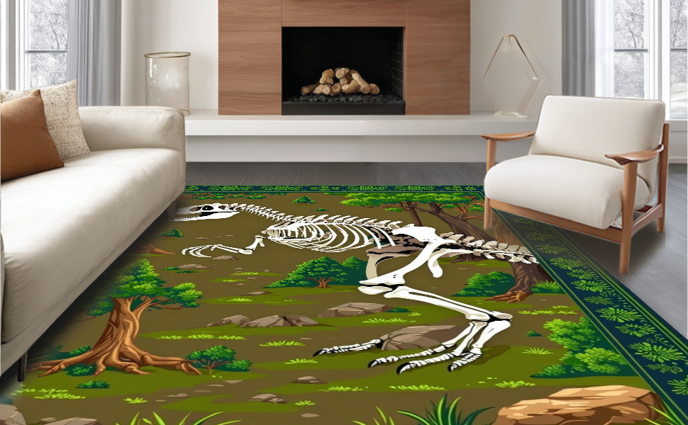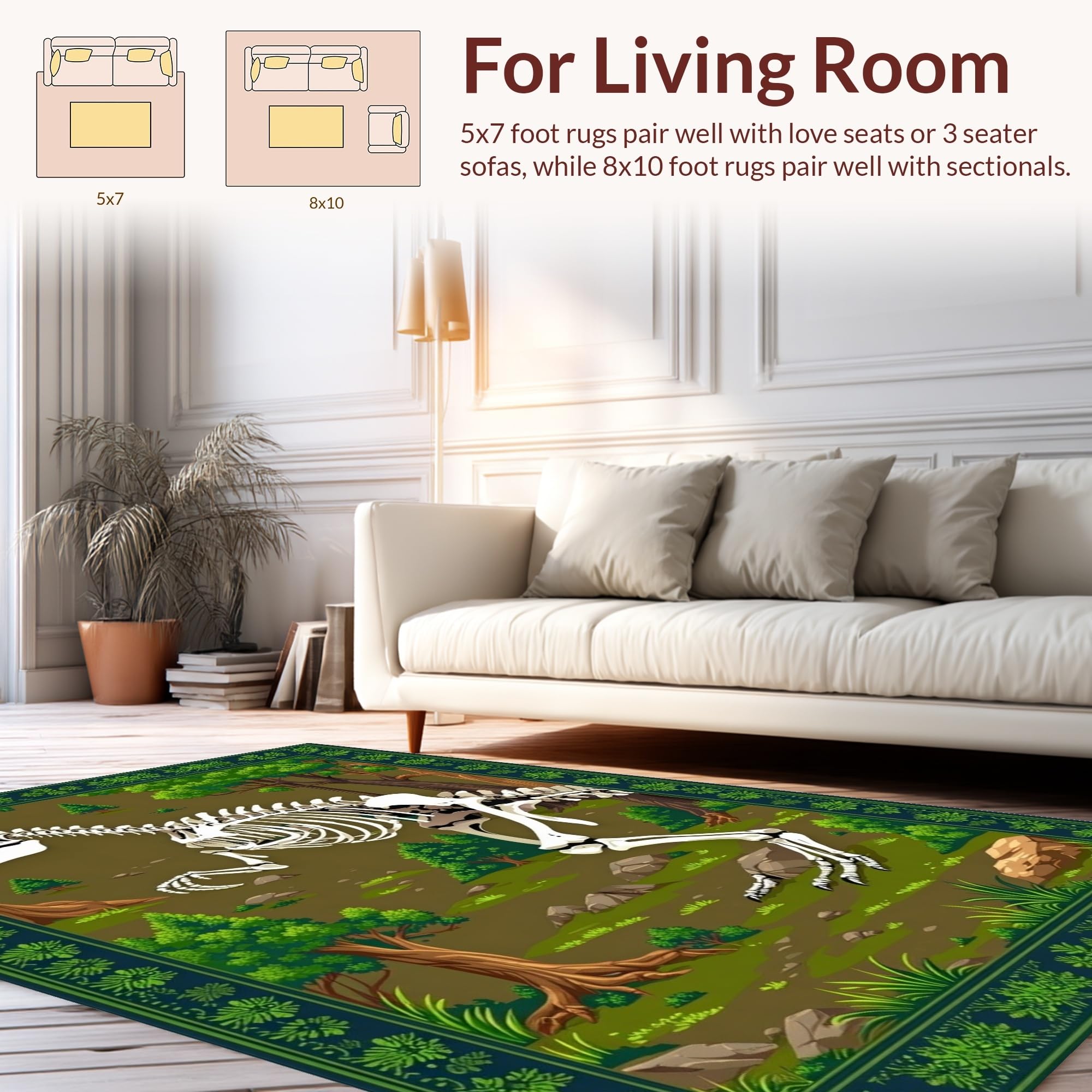 Ultra Soft Area Rug, Non Slip, Stain Resistant, Washable Area Rugs for Living Room, Bedroom, Educational Historic Fossil Design(Green) Overview: