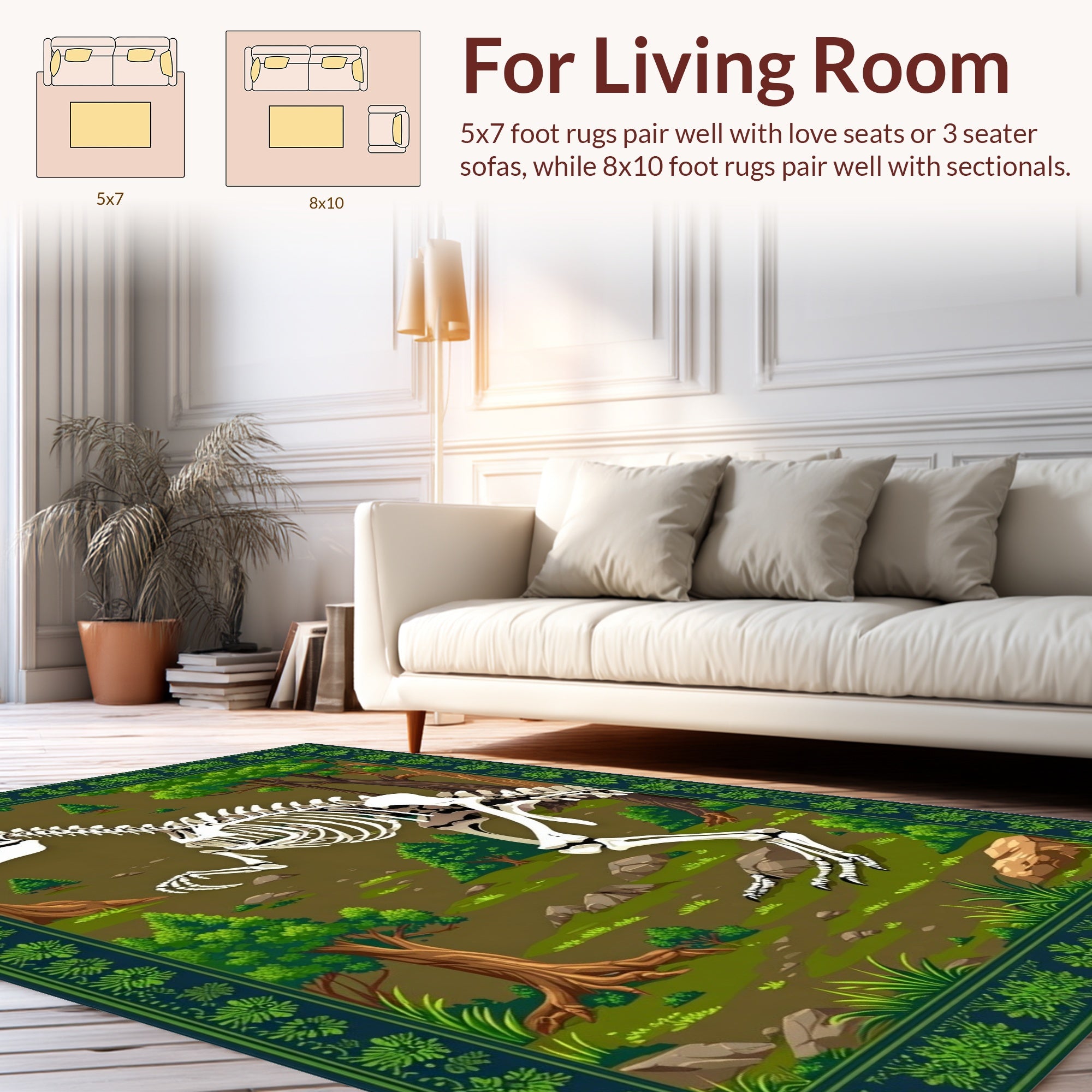 Flatwoven High Traffic Area Rug, Educational Historic Fossil Design, Non Slip, Stain Resistant, Washable Area Rugs for Living Room, Bedroom (Green) Overview: