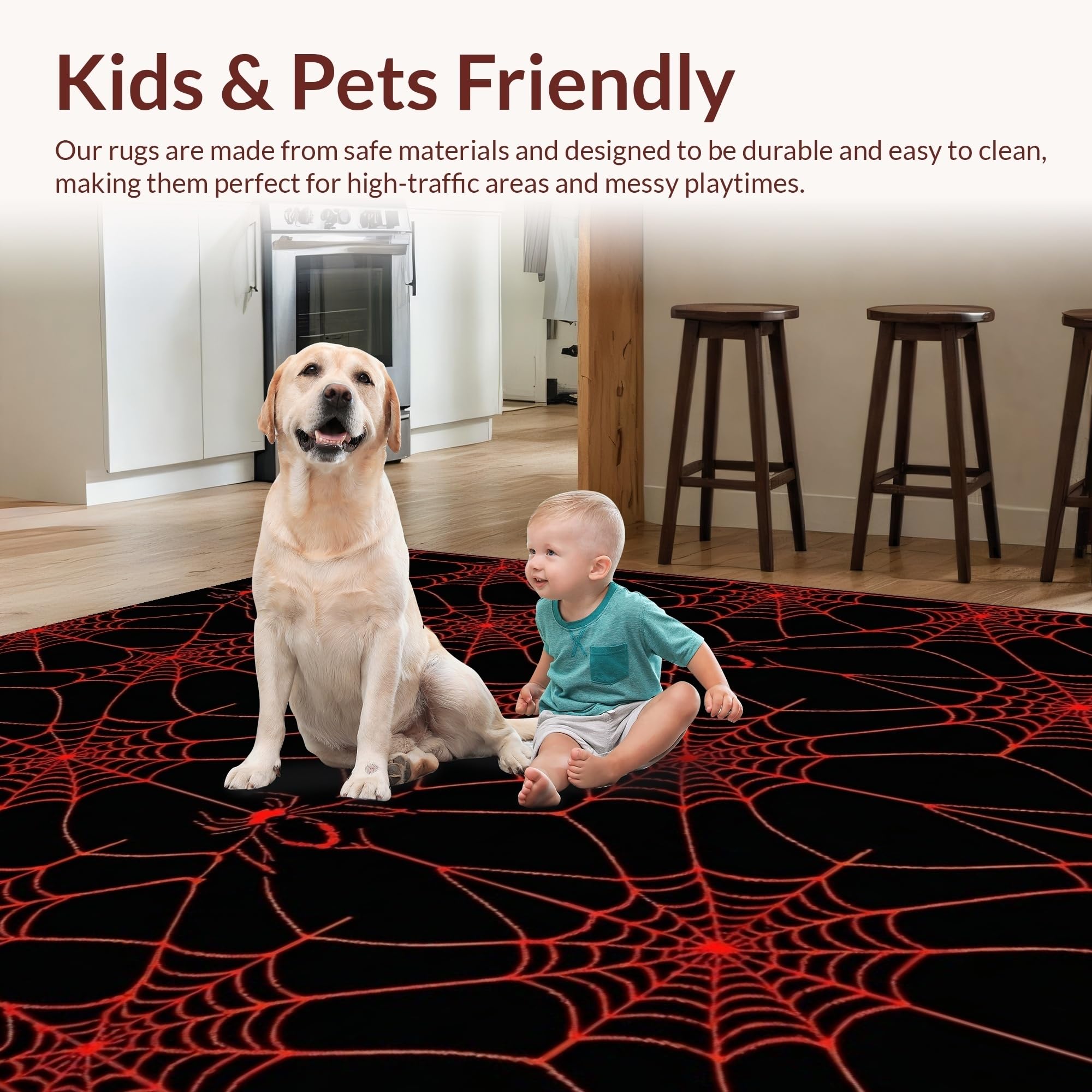Ultra Soft Area Rug, Non Slip, Stain Resistant, Washable Area Rugs for Living Room, Bedroom, Eerie Elegant Round Patterned Mat(Black) Overview: