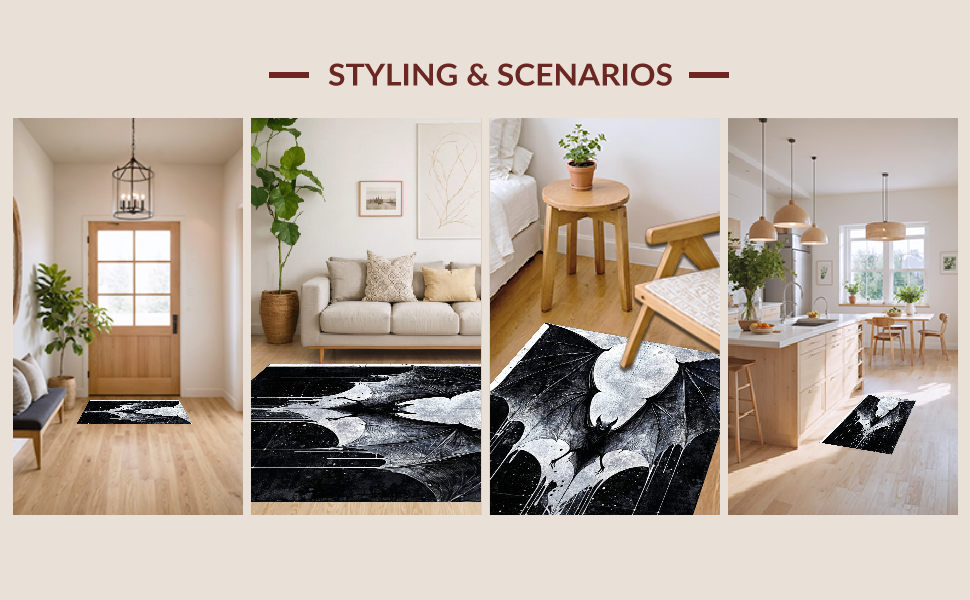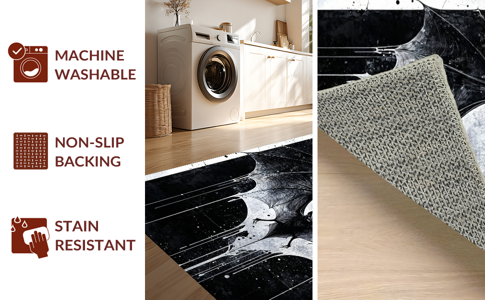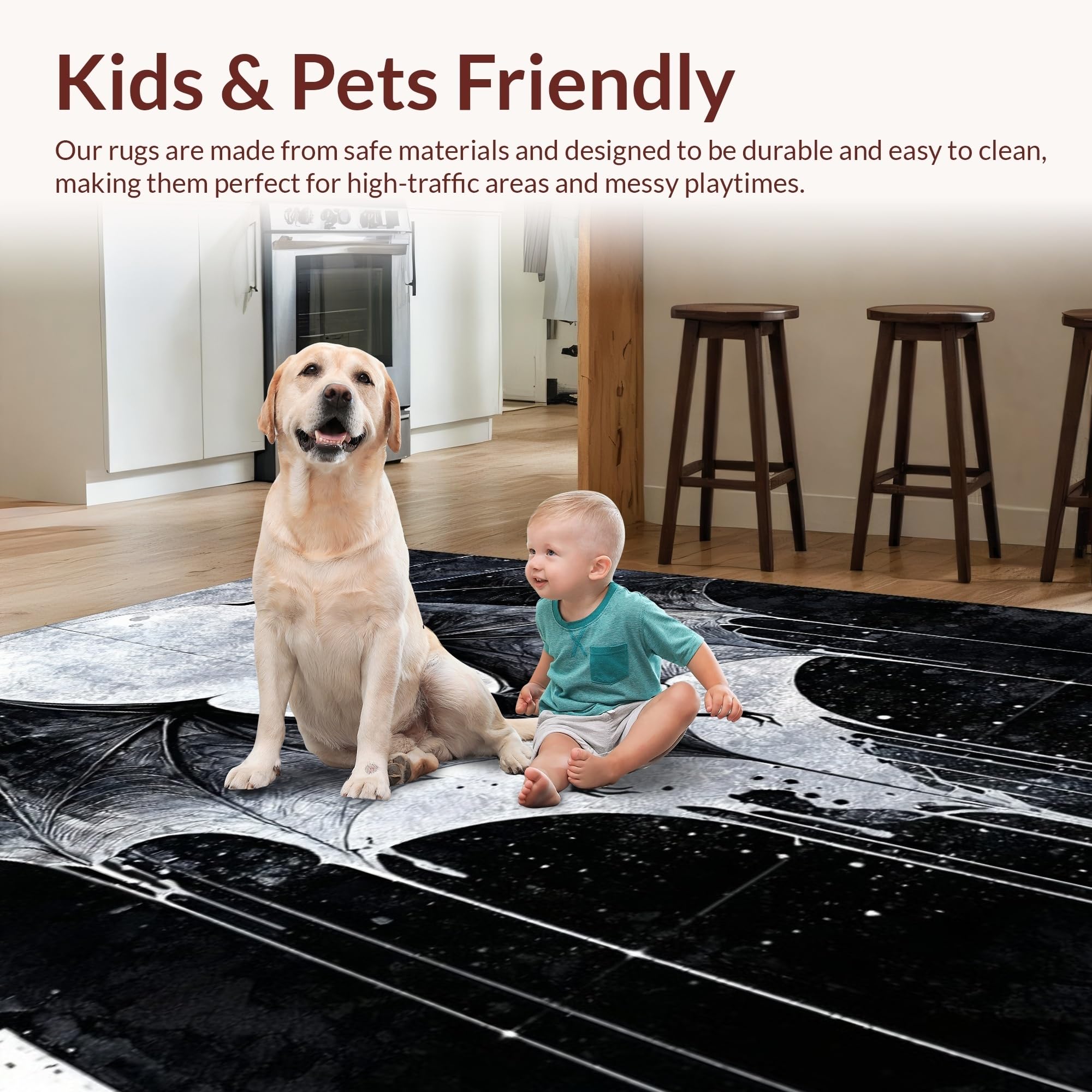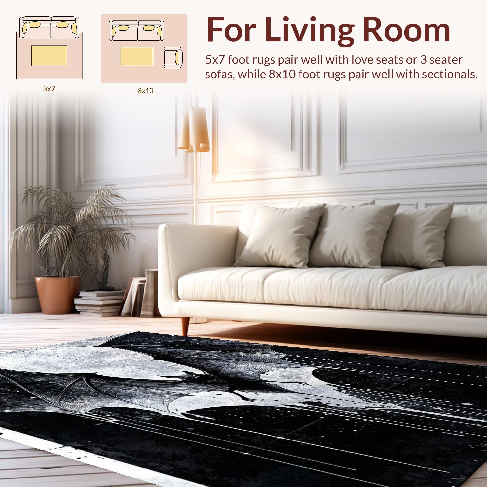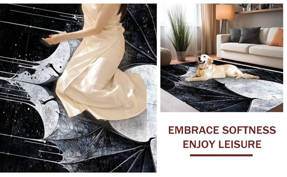 Ultra Soft Area Rug, Non Slip, Stain Resistant, Washable Area Rugs for Living Room, Bedroom, Eerie Minimalist Nighttime Decor(Black) Overview: