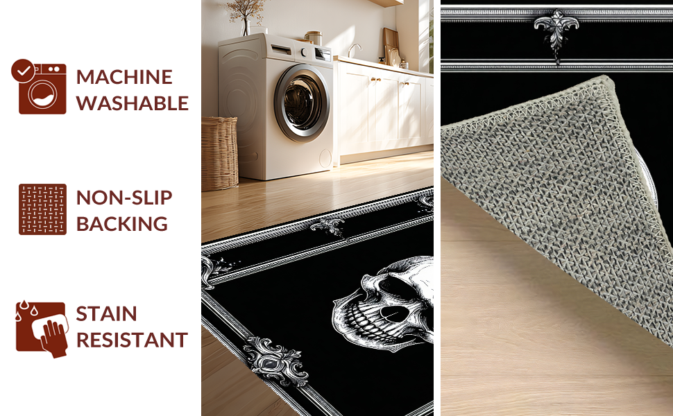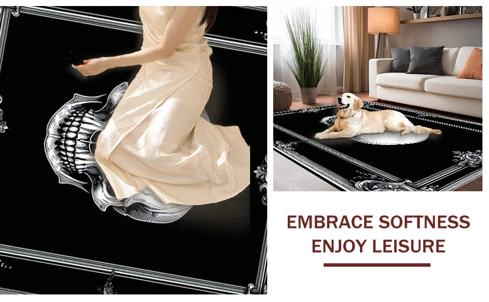 Ultra Soft Area Rug, Non Slip, Stain Resistant, Washable Area Rugs for Living Room, Bedroom, Eerie Monochrome Graphic Design(Black) Overview: