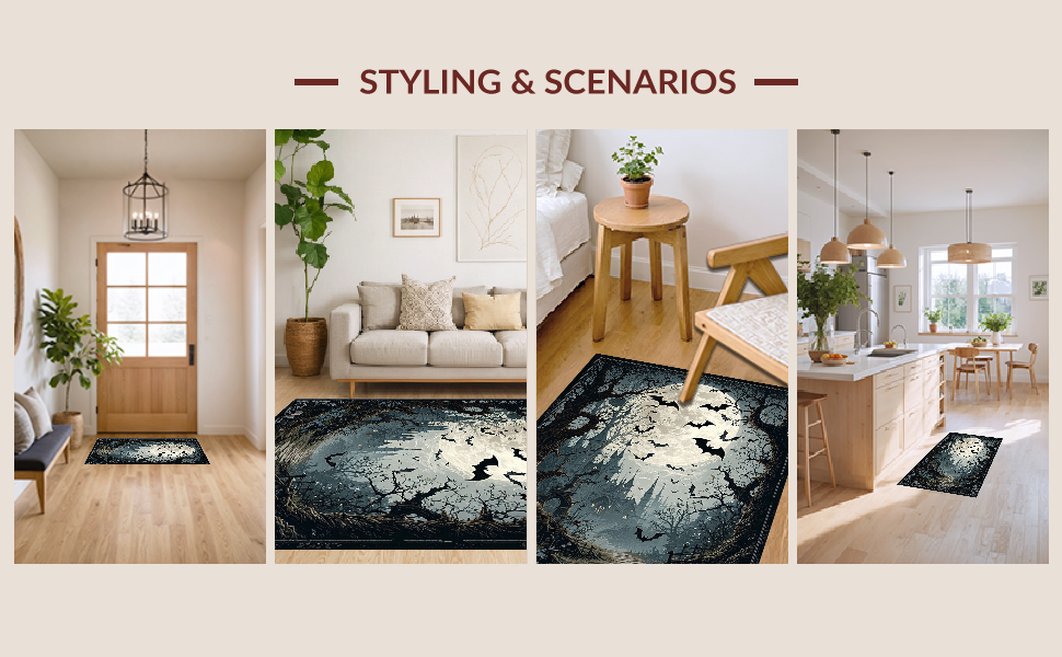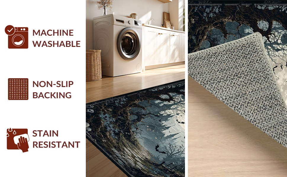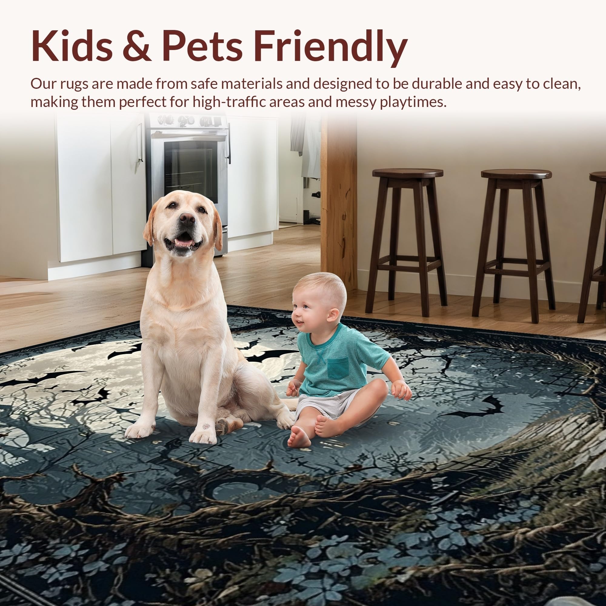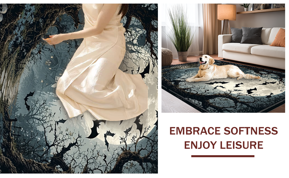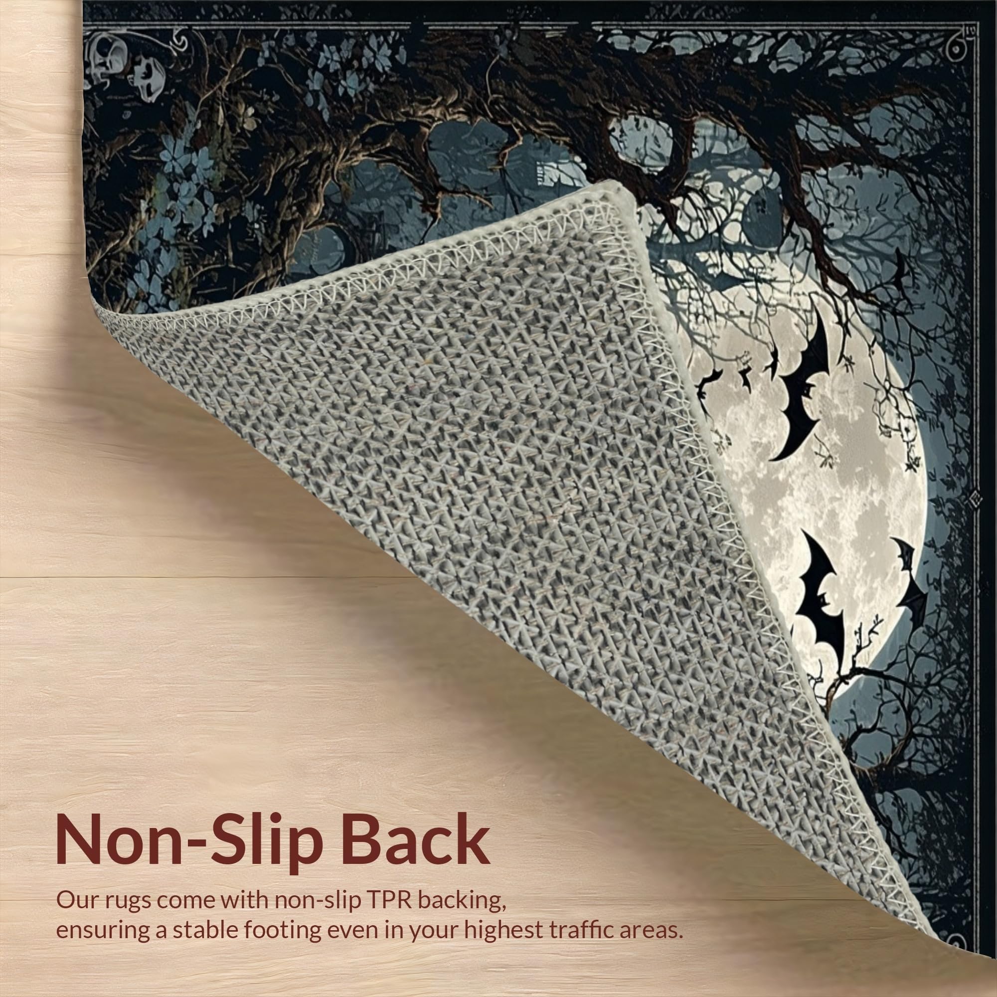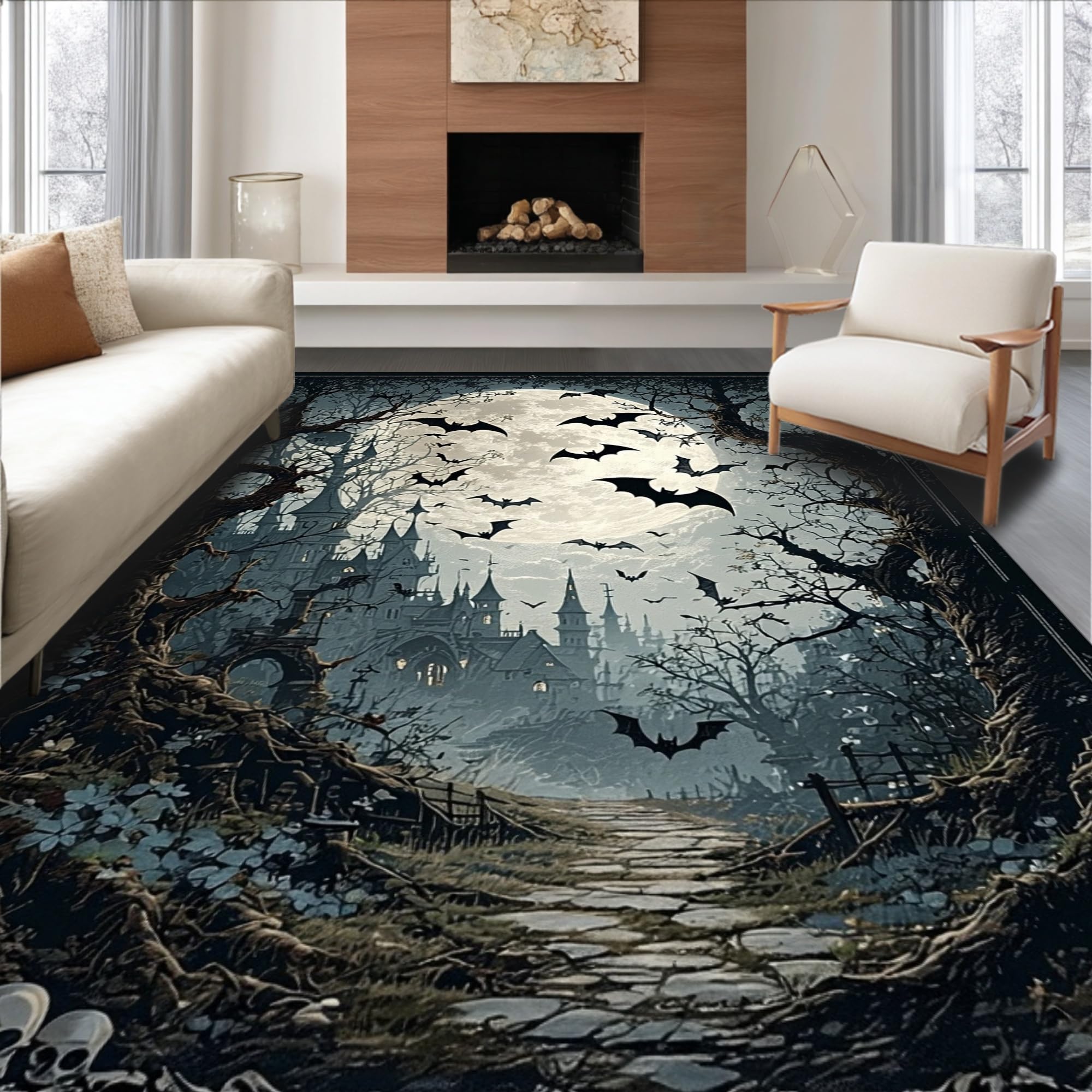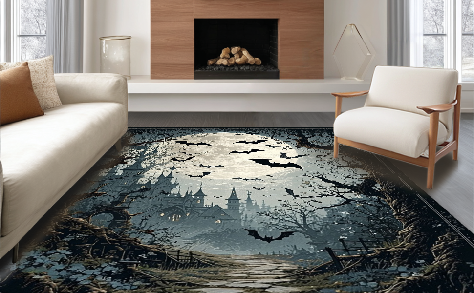 Ultra Soft Area Rug, Non Slip, Stain Resistant, Washable Area Rugs for Living Room, Bedroom, Eerie Shadowy Bat Pattern(Black) Overview: