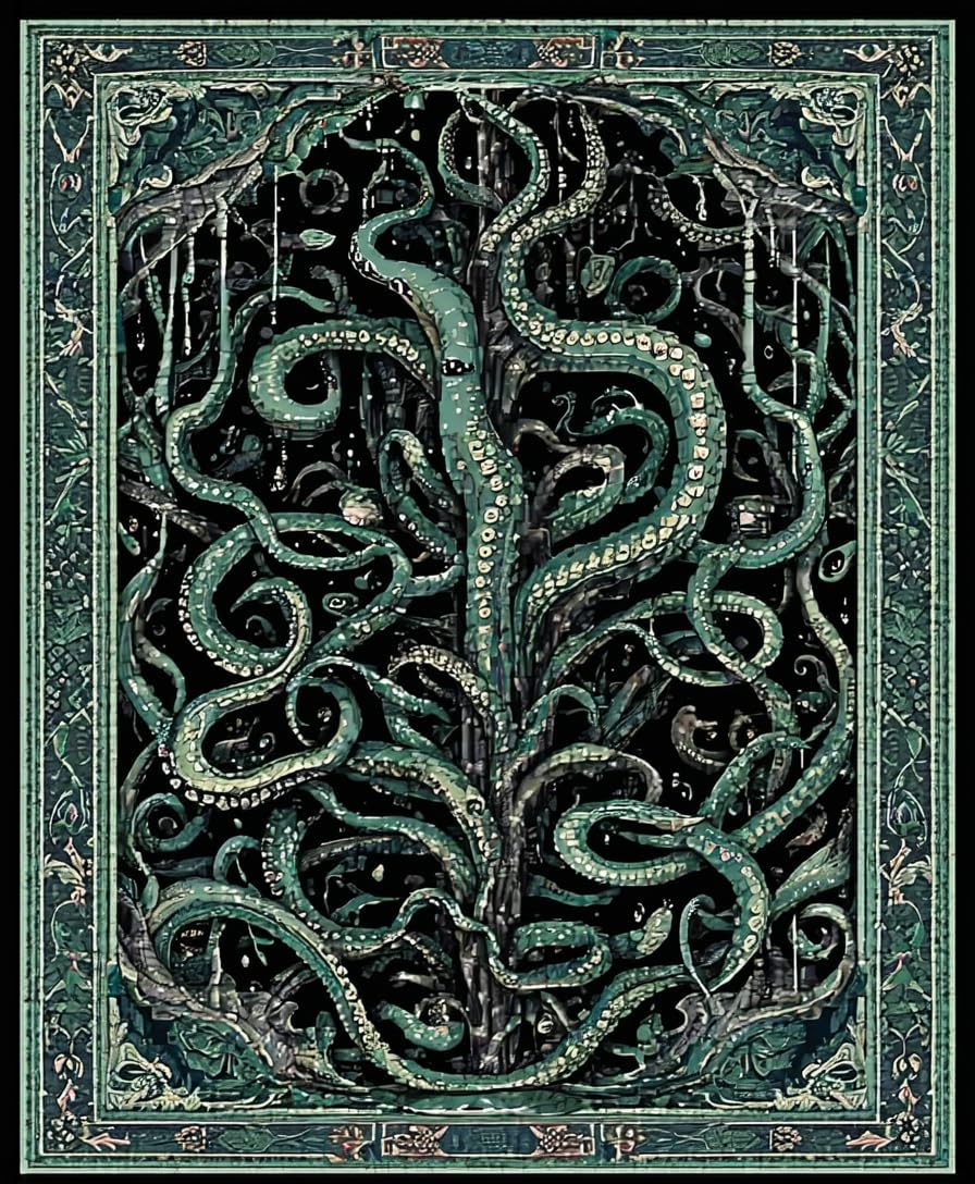 Eerie Snake with Dramatic Cthulhu Tentacle Aesthetic(Green)