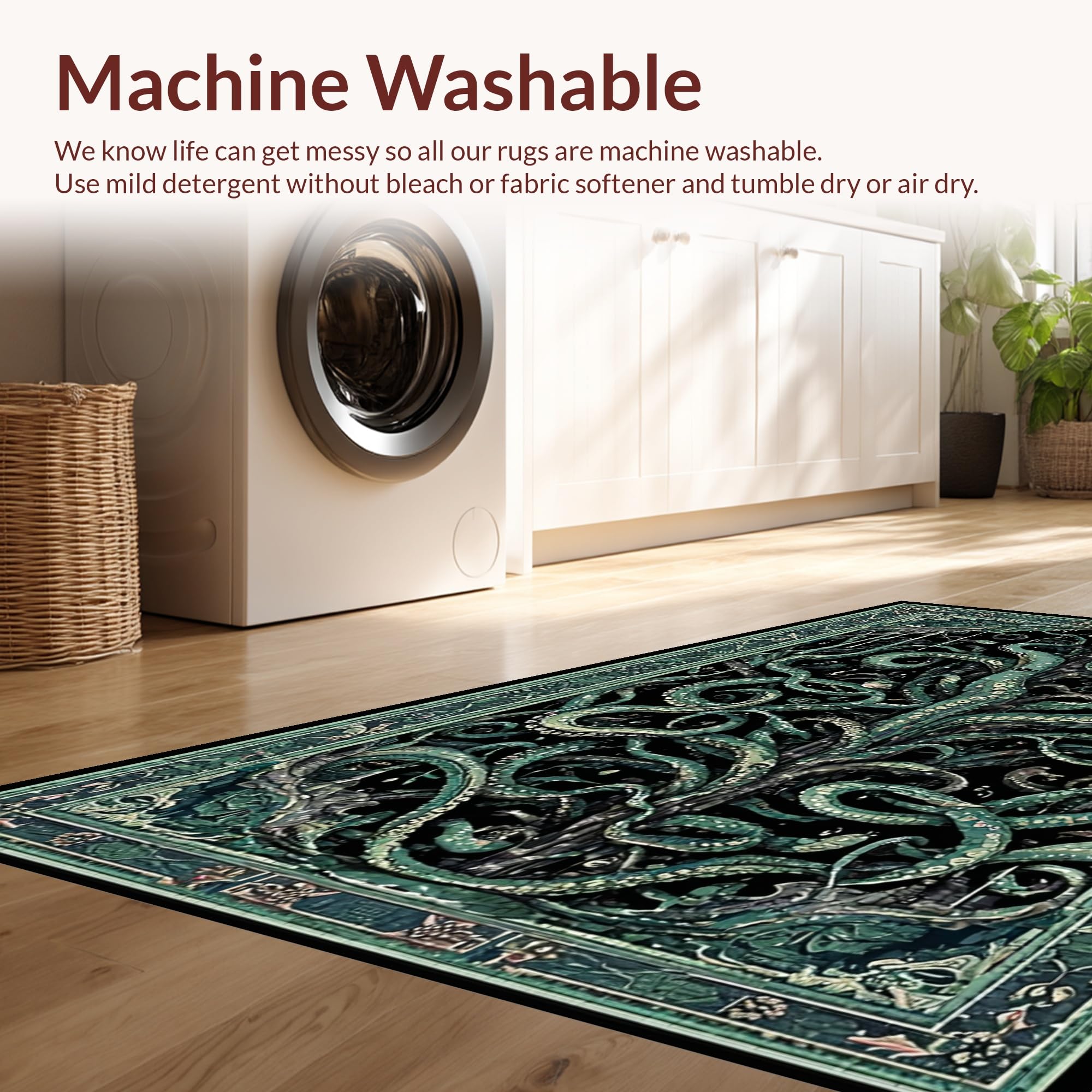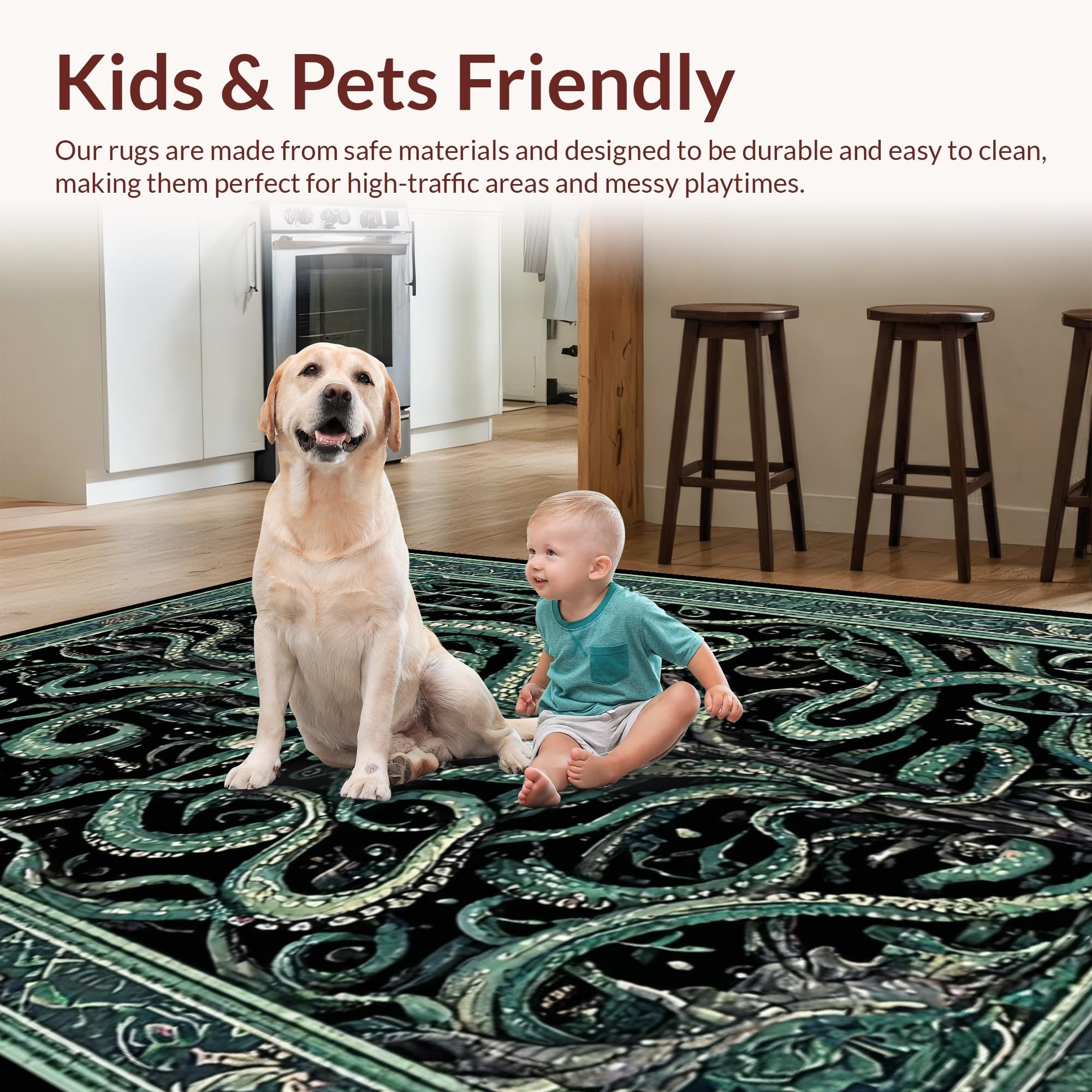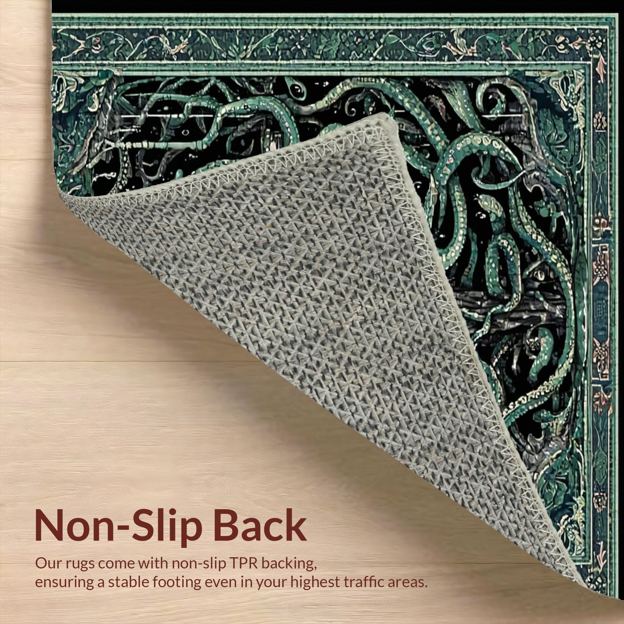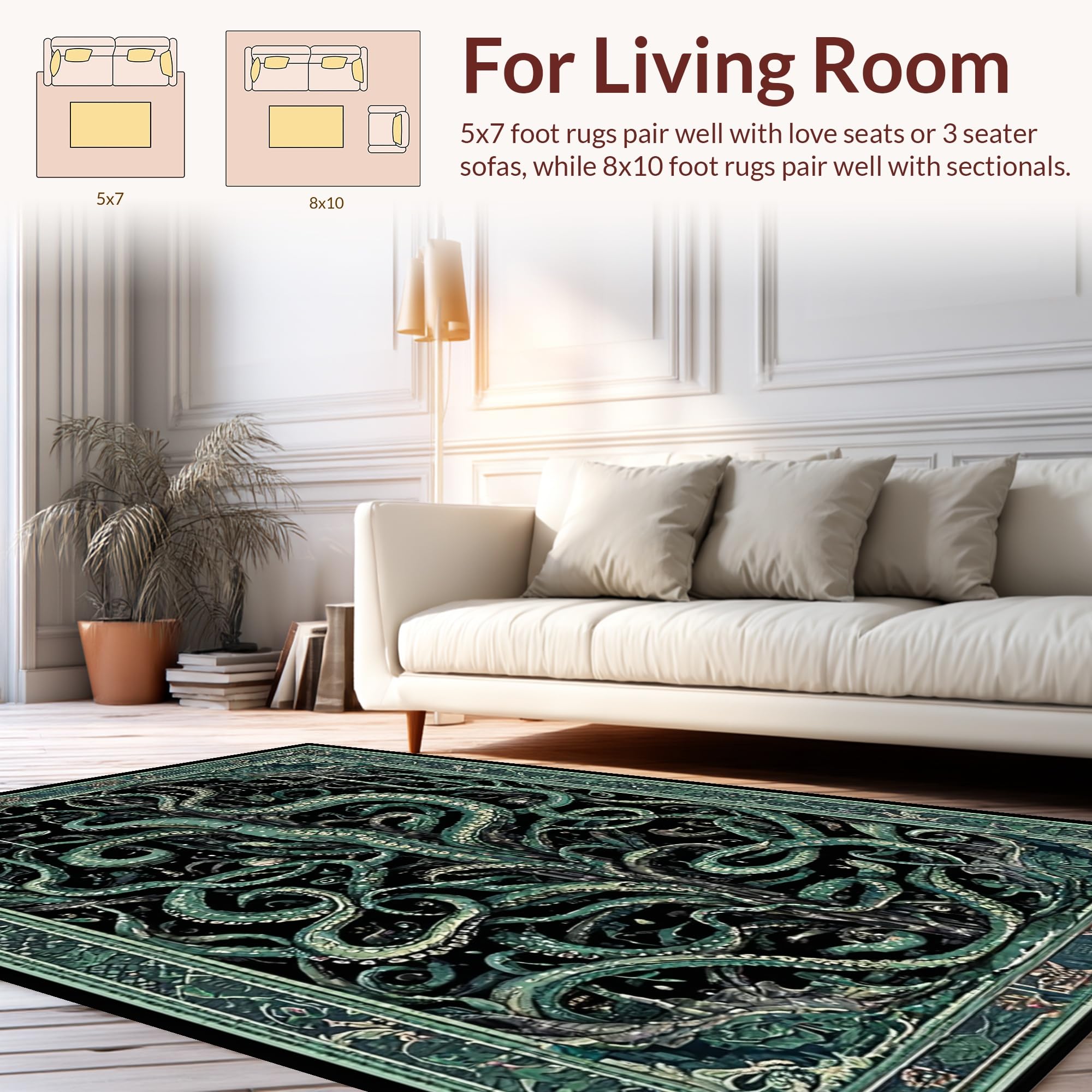 Ultra Soft Area Rug, Non Slip, Stain Resistant, Washable Area Rugs for Living Room, Bedroom, Eerie Snake Rug with Dramatic Cthulhu Tentacle Aesthetic(Green) Overview: