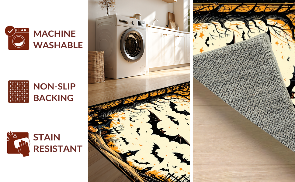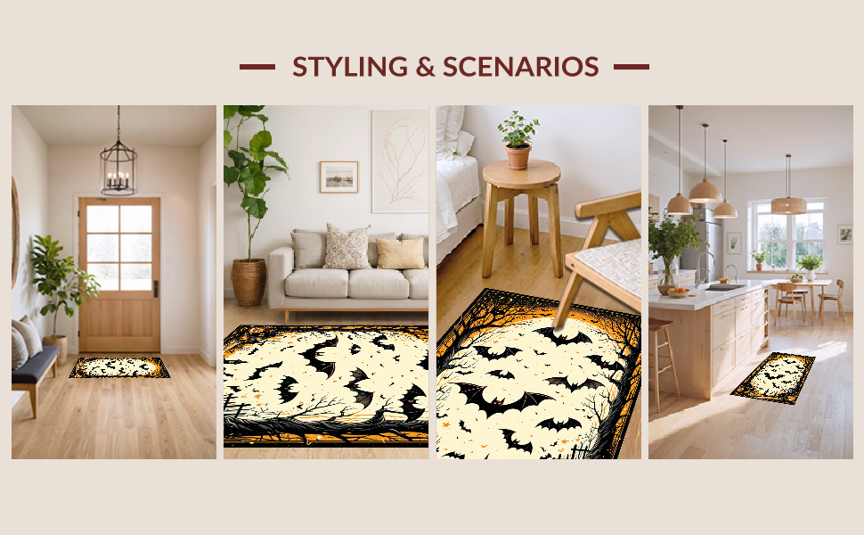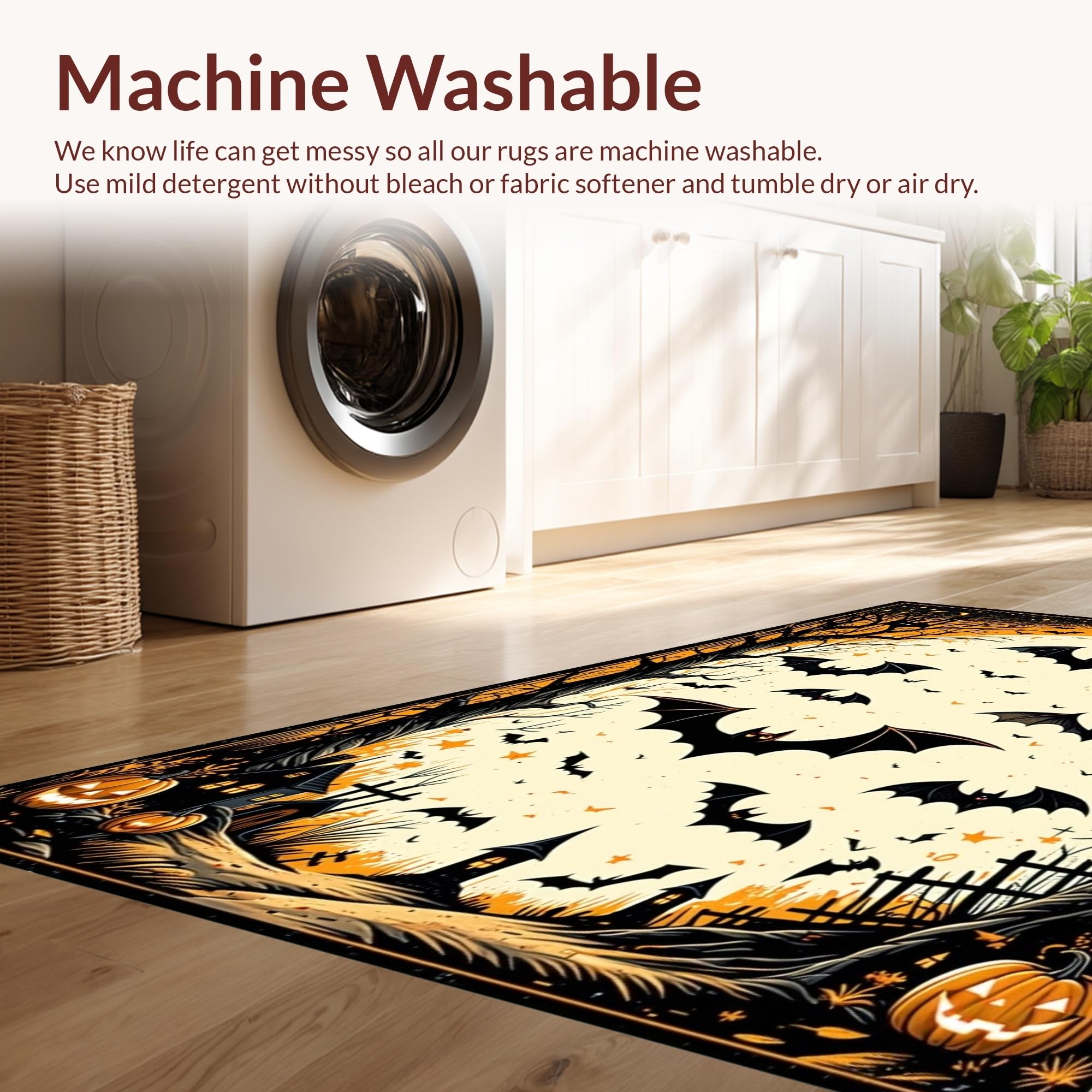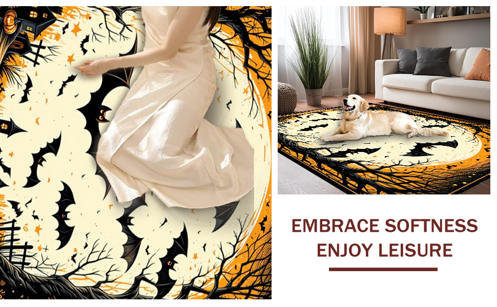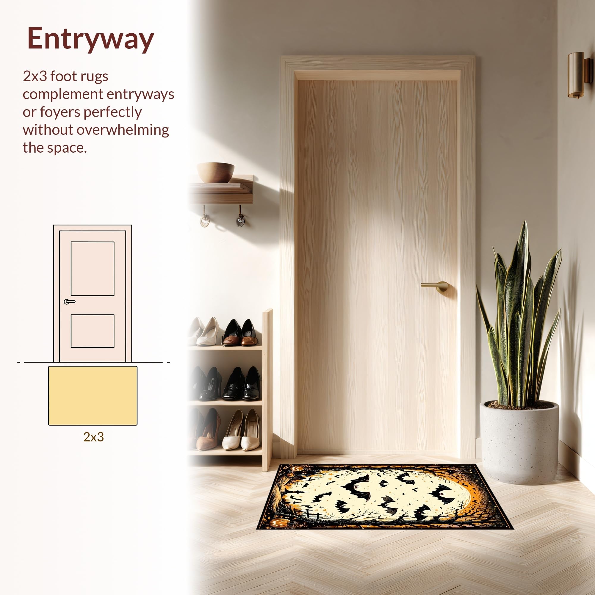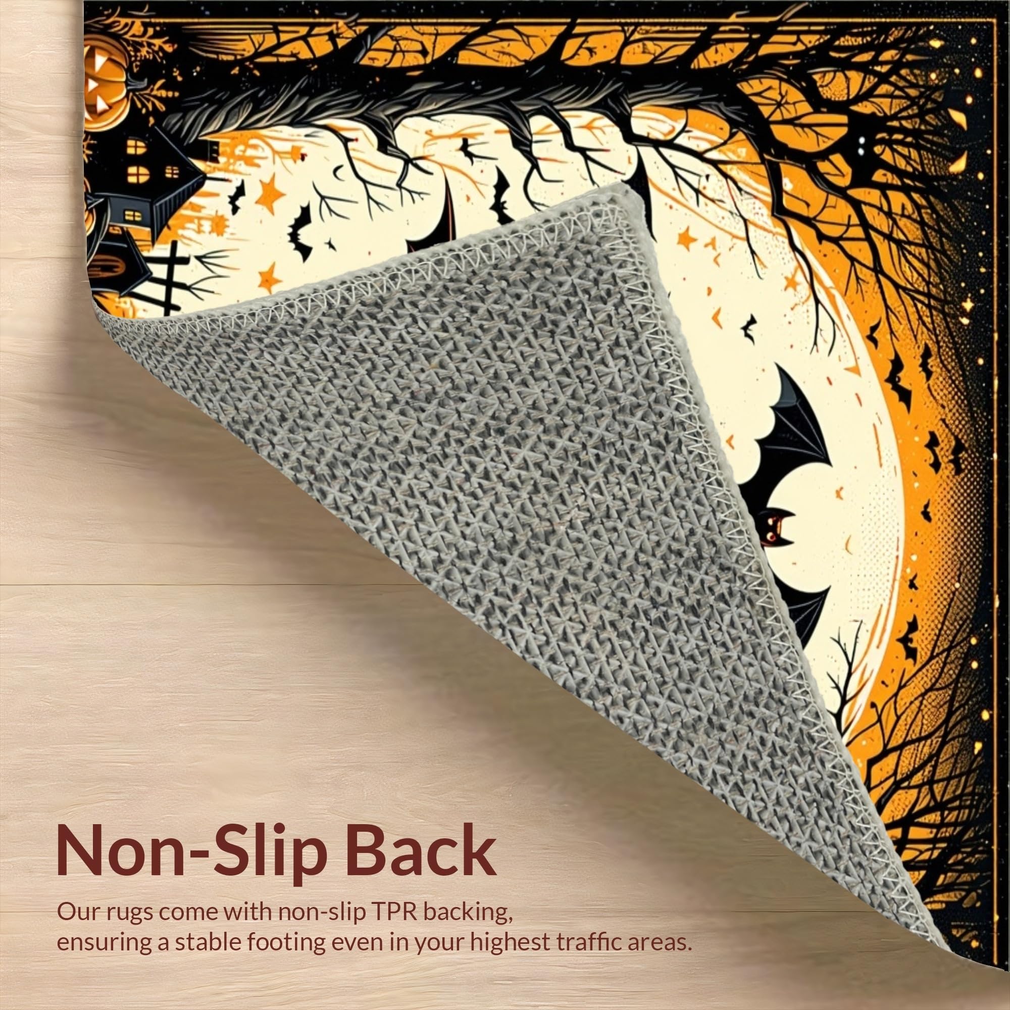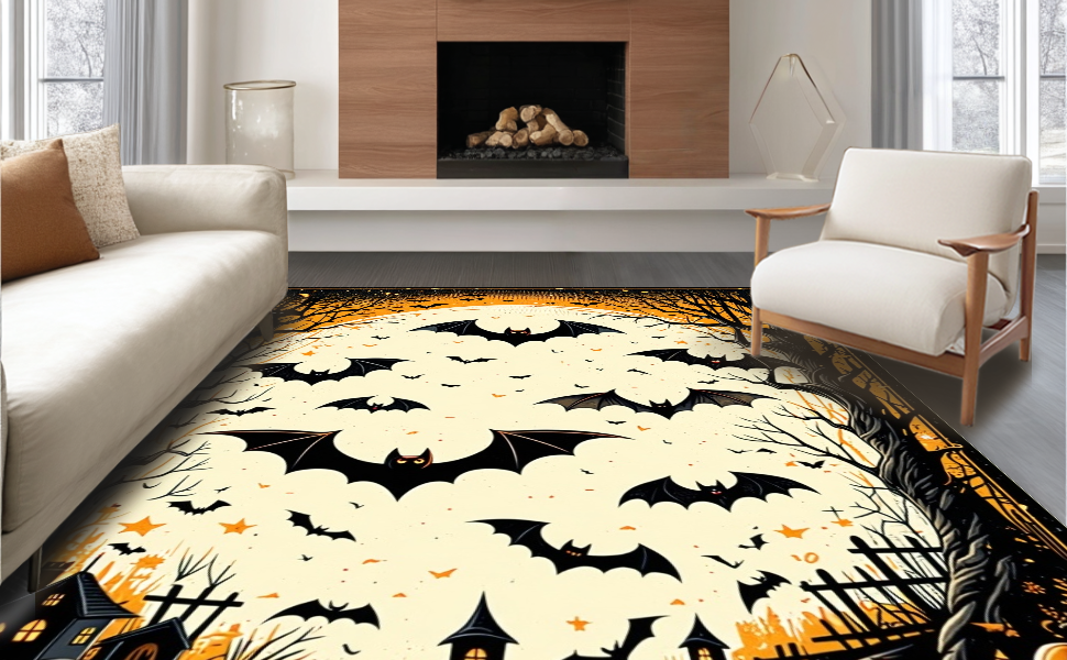 Ultra Soft Area Rug, Non Slip, Stain Resistant, Washable Area Rugs for Living Room, Bedroom, Eerie Vintage Bat Silhouette(Black) Overview: