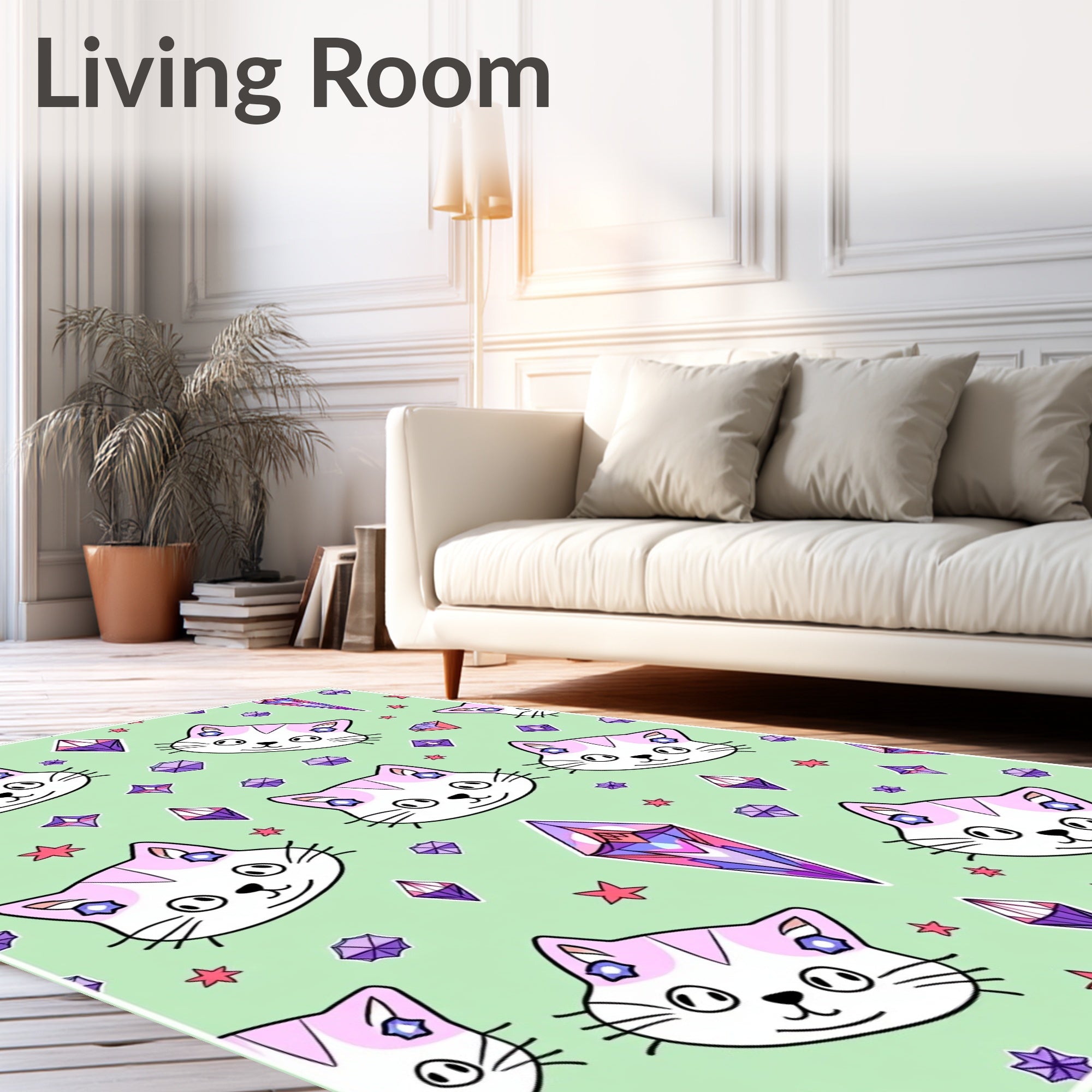 Ultra Soft Area Rug, Non Slip, Stain Resistant, Washable Area Rugs for Living Room, Bedroom, Electric Kitten Mosaic with Sparkling Accents(Green) Overview: