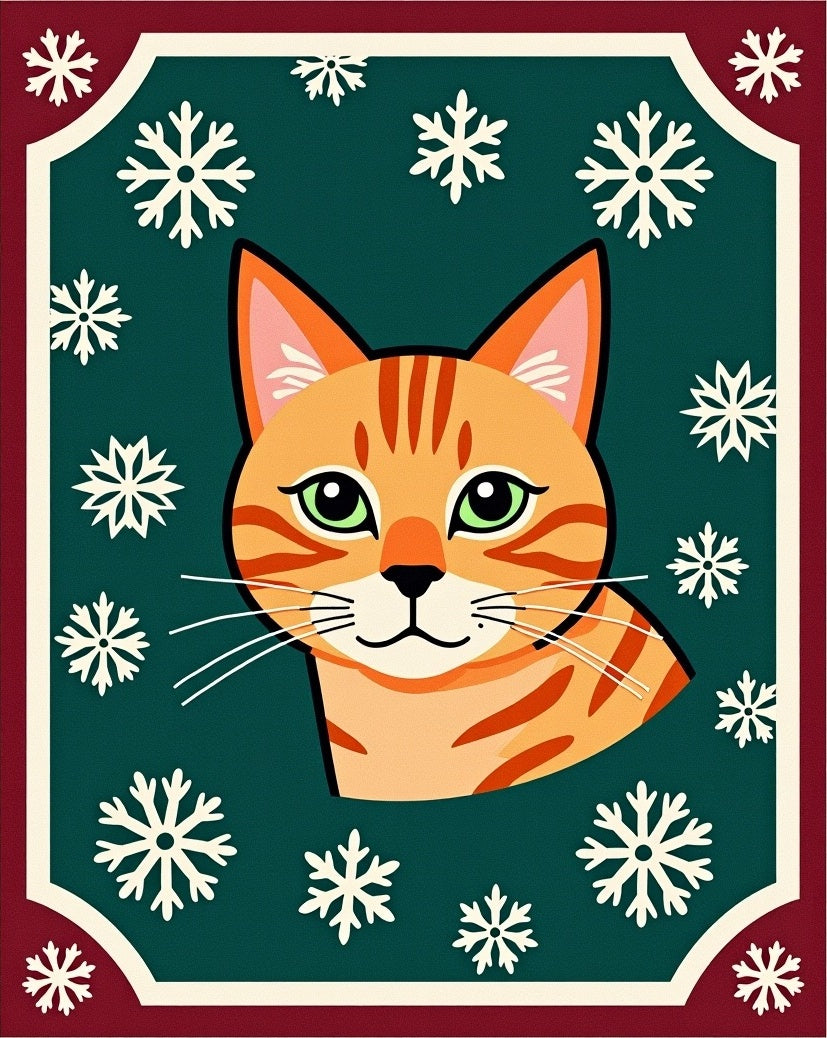 Ultra Soft Area Rug, Non Slip, Stain Resistant, Washable Area Rugs for Living Room, Bedroom, Electric Tabby Cat Portrait Decorative Floor with Snowflake Accents(Orange) Overview: