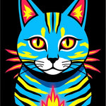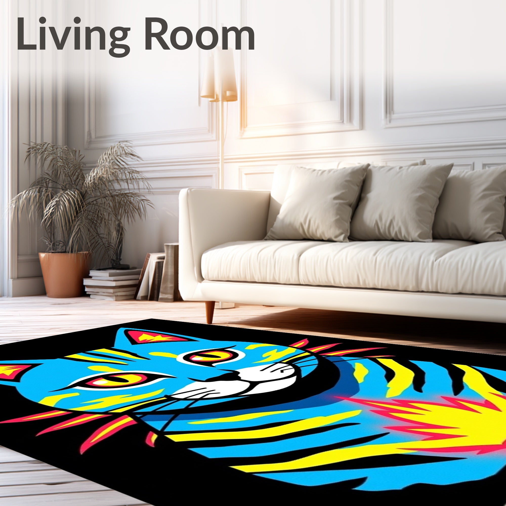 Ultra Soft Area Rug, Non Slip, Stain Resistant, Washable Area Rugs for Living Room, Bedroom, Electric Tabby Portrait Seasonal Floor with Integrated Features(Blue) Overview: