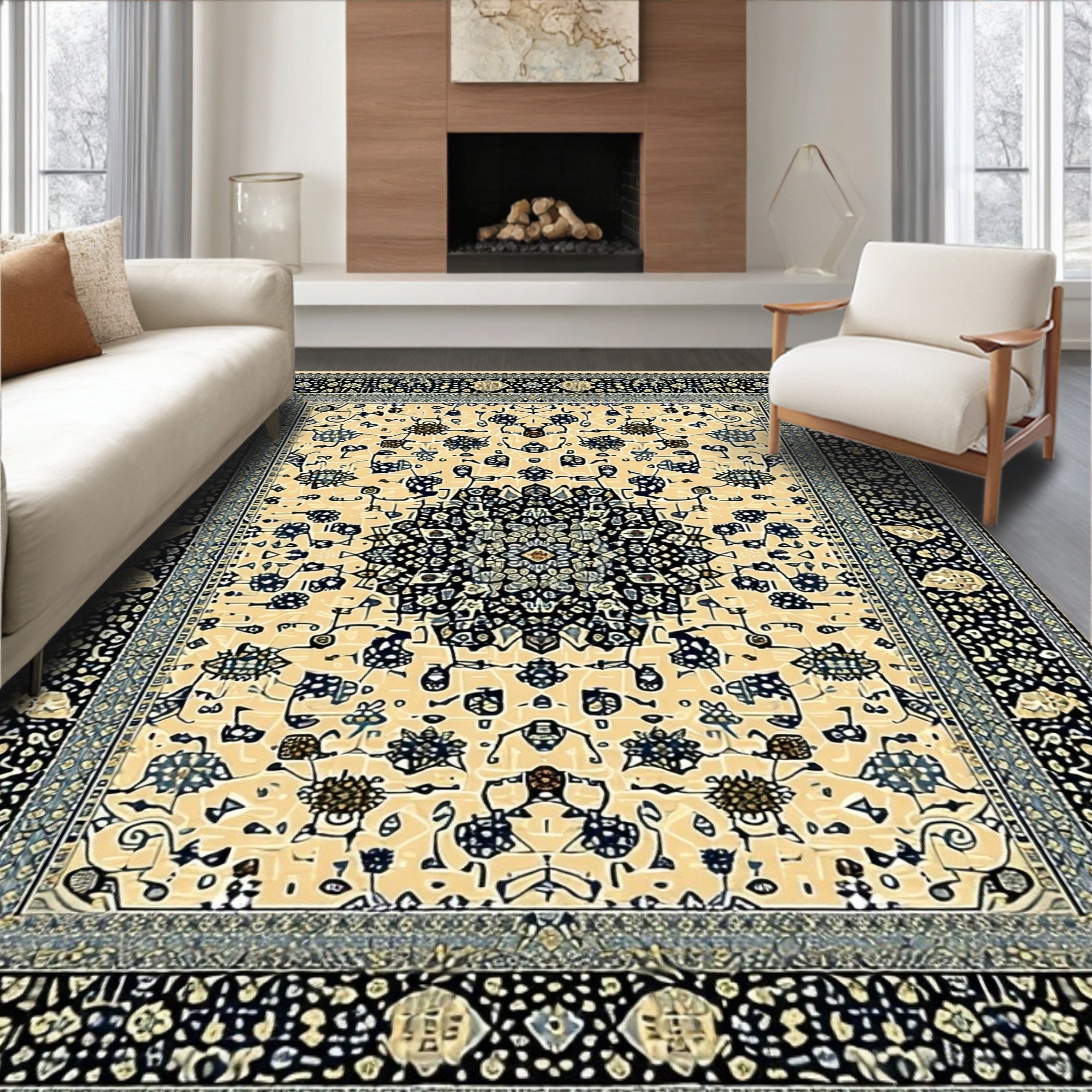 Ultra Soft Area Rug, Non Slip, Stain Resistant, Washable Area Rugs for Living Room, Bedroom, Elegant Abstract Beige/Black Deco(Beige) Overview:
