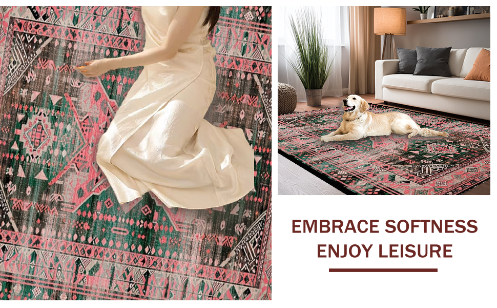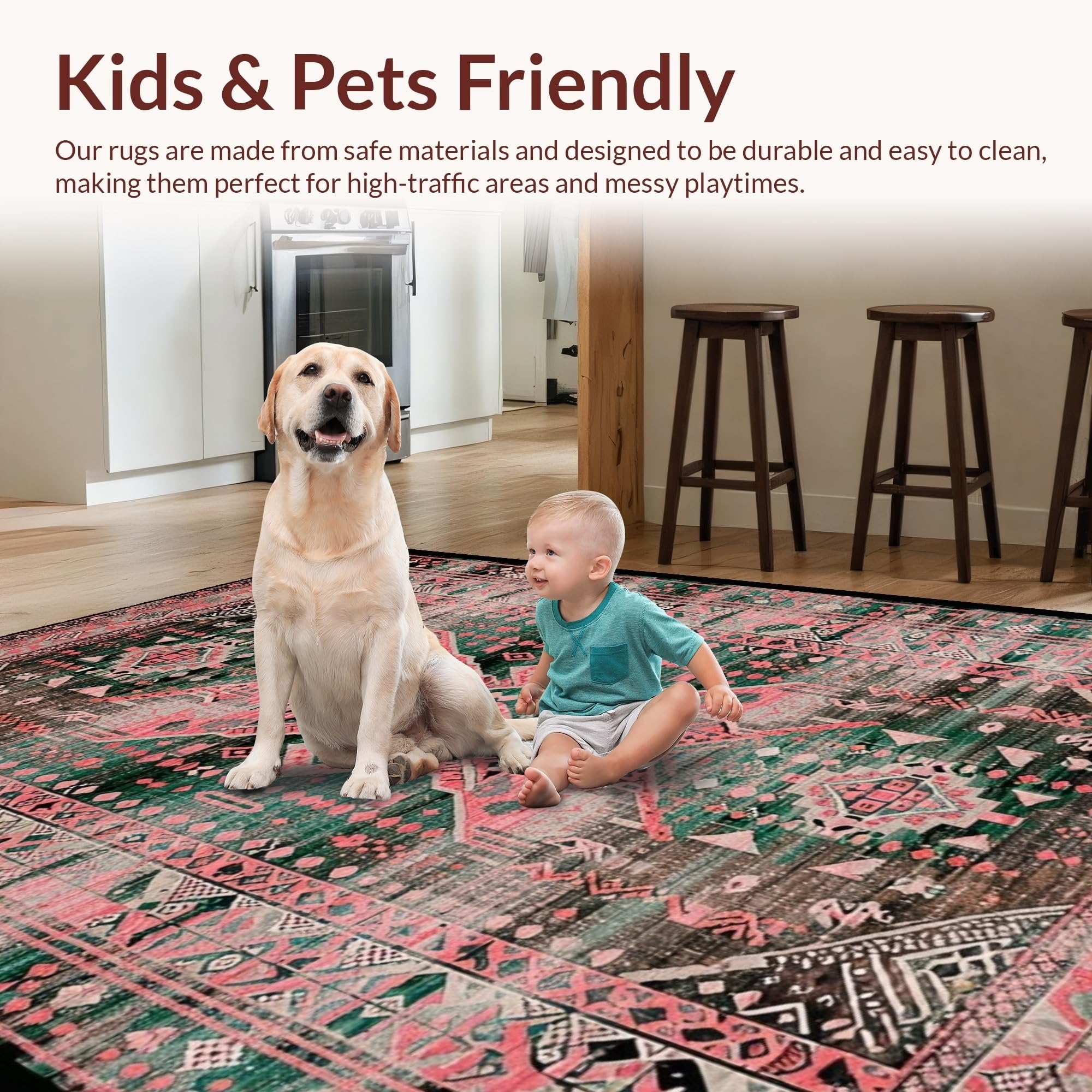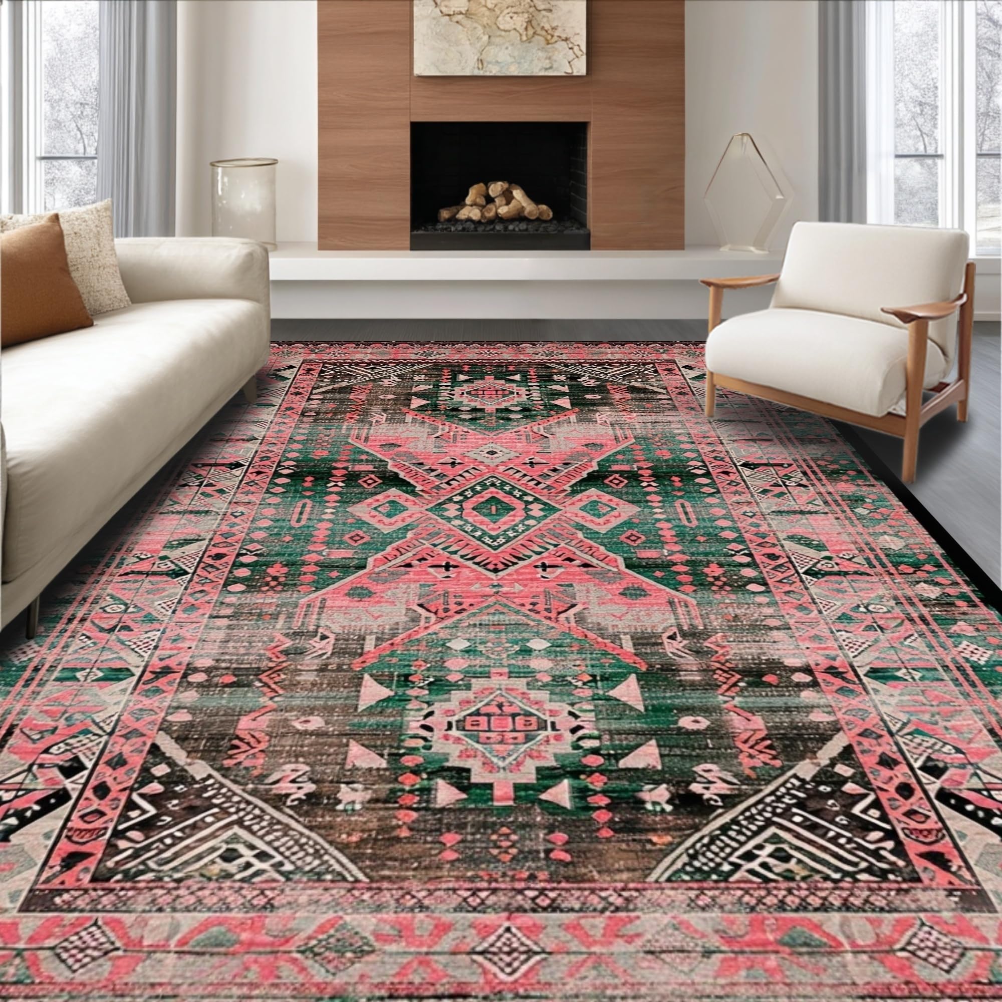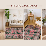 Ultra Soft Area Rug, Non Slip, Stain Resistant, Washable Area Rugs for Living Room, Bedroom, Elegant Abstract Botanical Fusion(Pink) Overview: