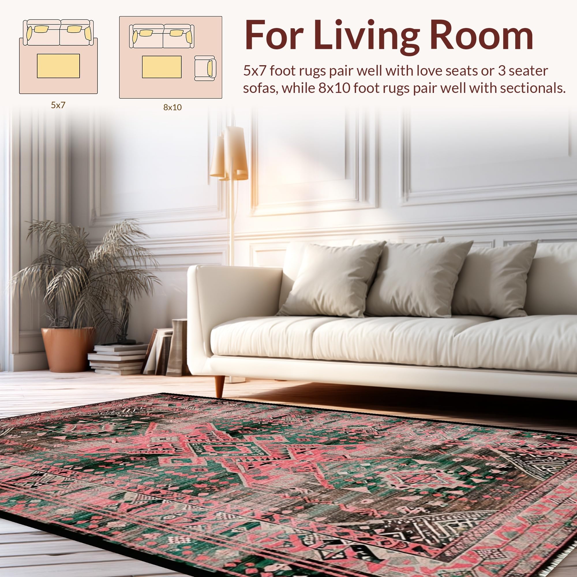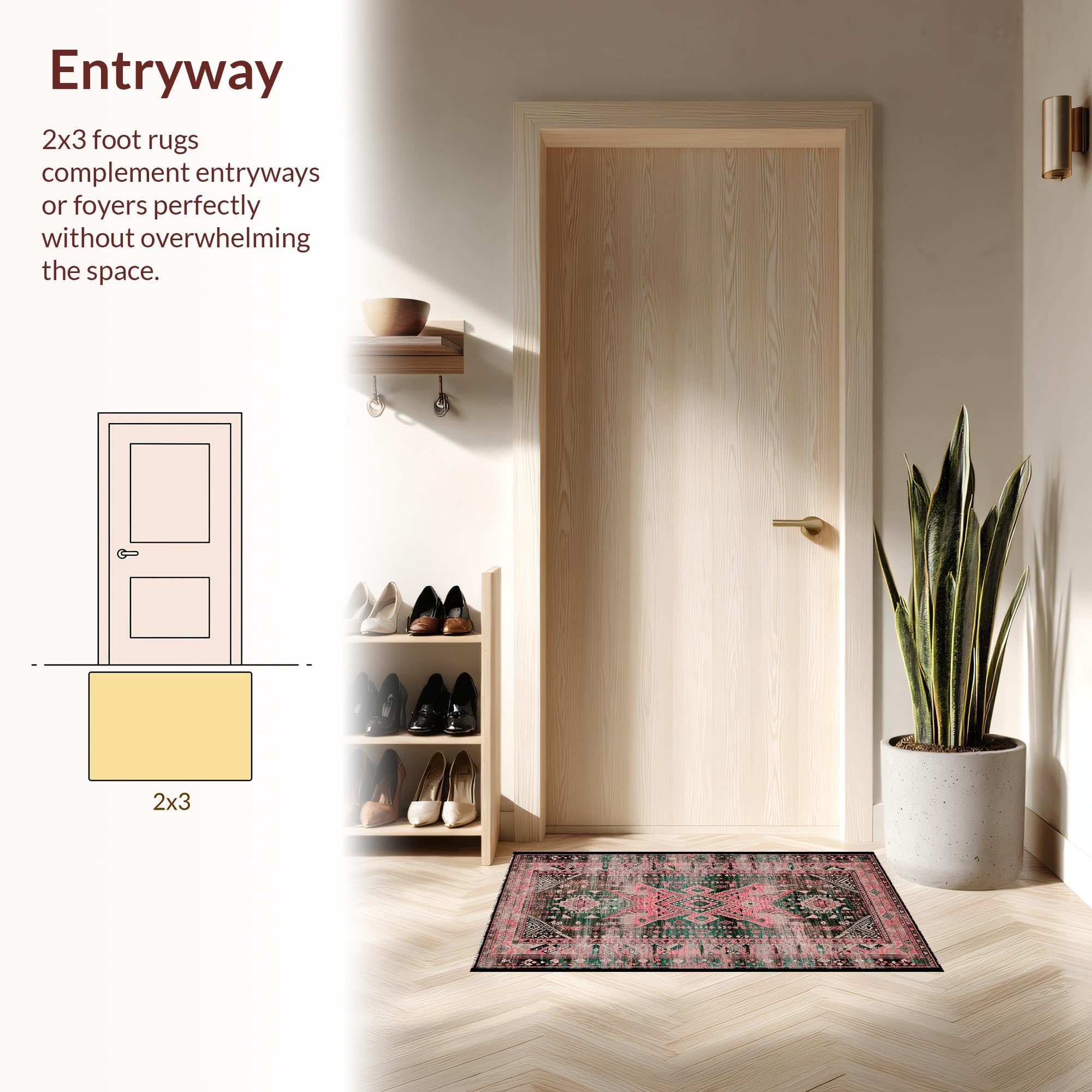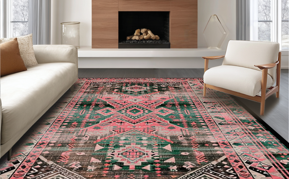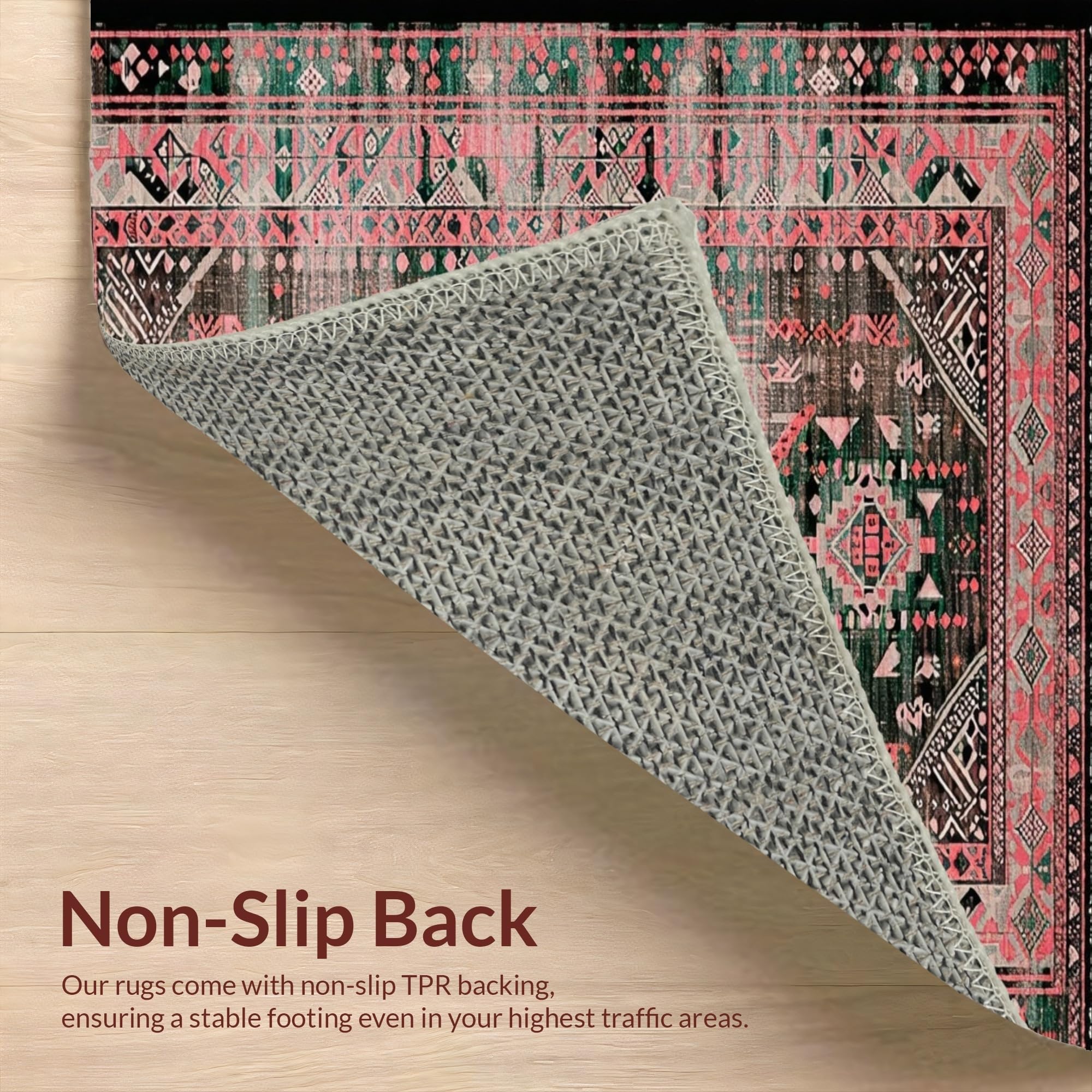 Ultra Soft Area Rug, Non Slip, Stain Resistant, Washable Area Rugs for Living Room, Bedroom, Elegant Abstract Botanical Fusion(Pink) Overview:
