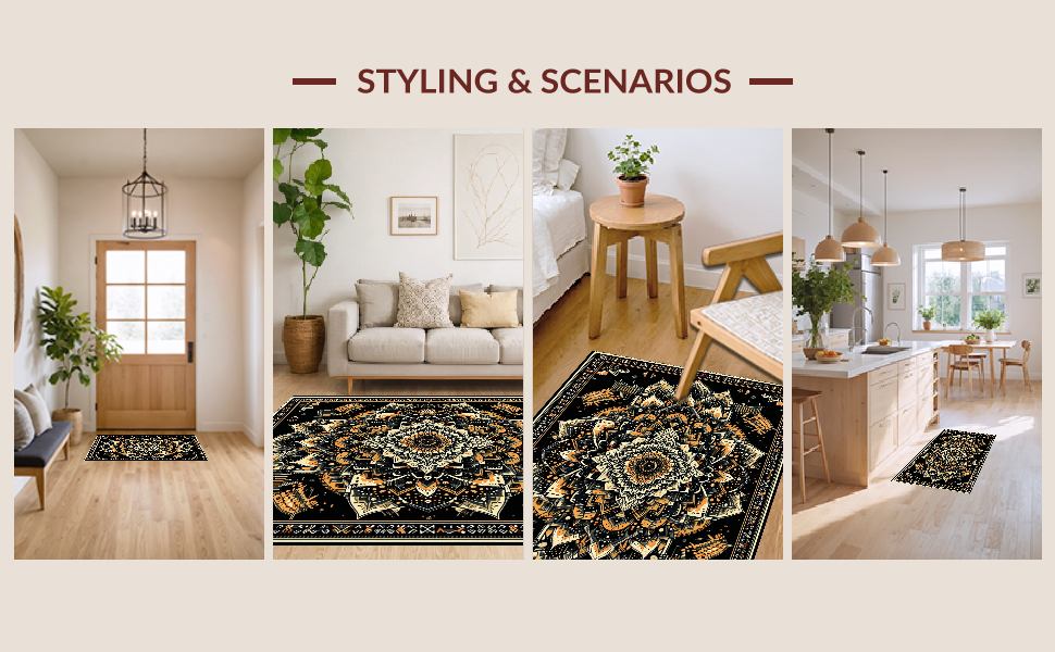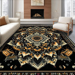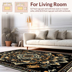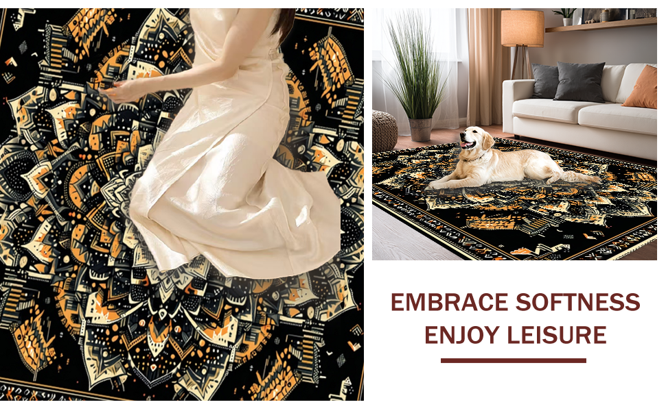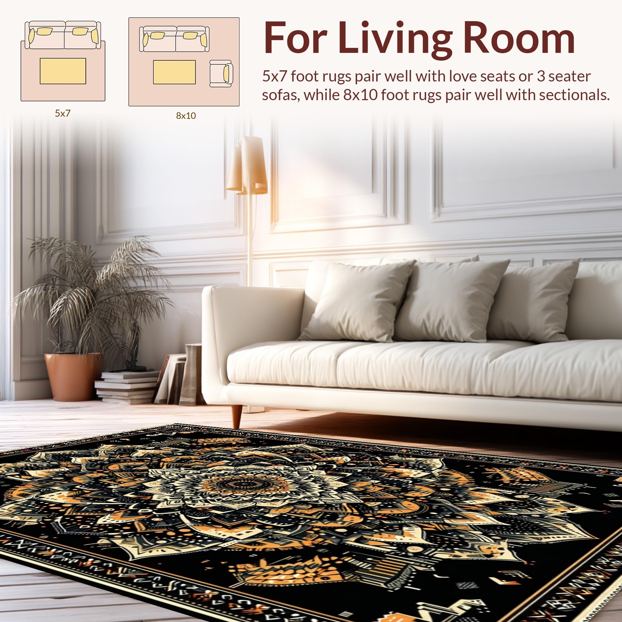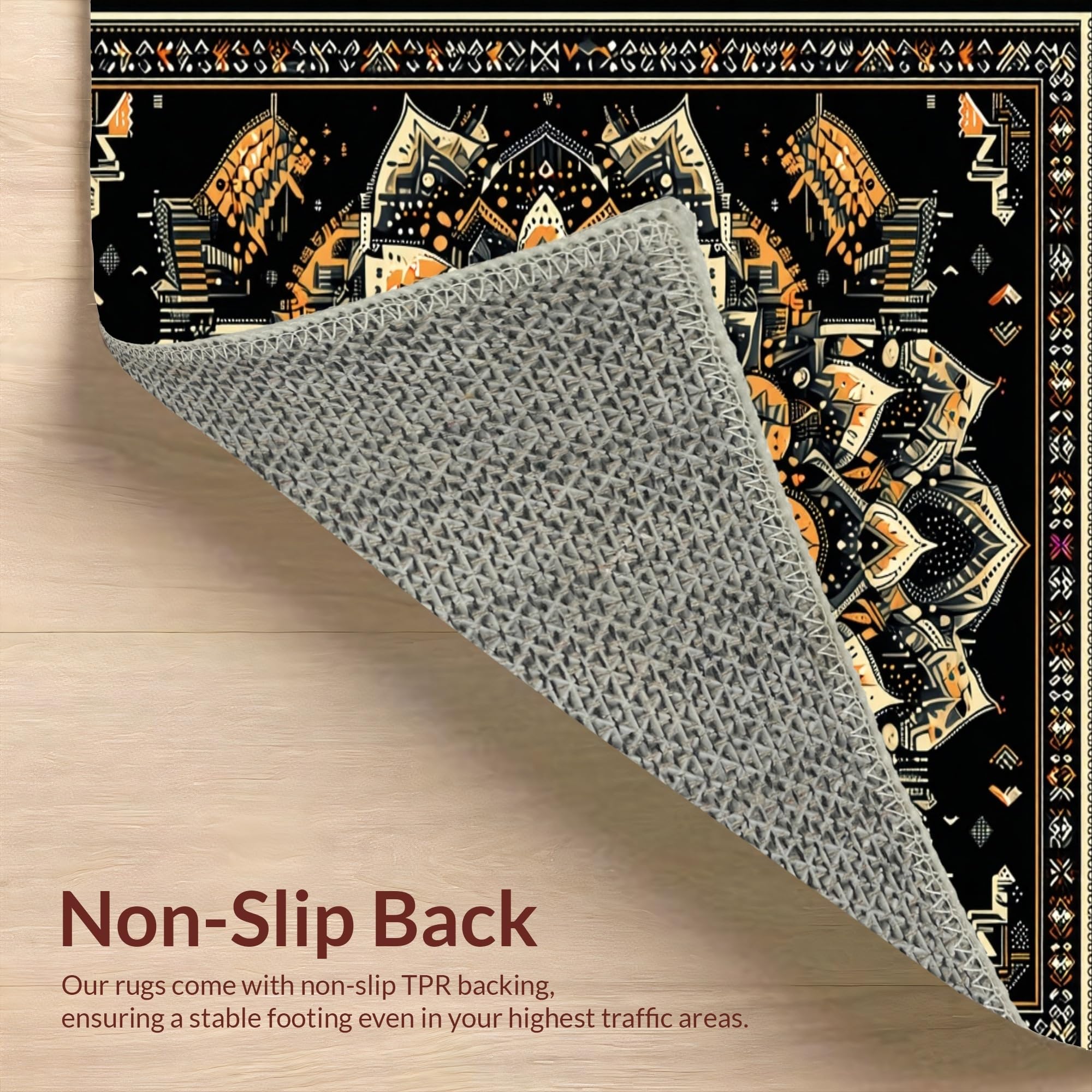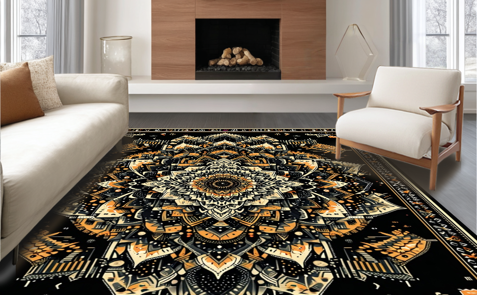 Ultra Soft Area Rug, Non Slip, Stain Resistant, Washable Area Rugs for Living Room, Bedroom, Elegant Abstract Circular Motif(Black) Overview: