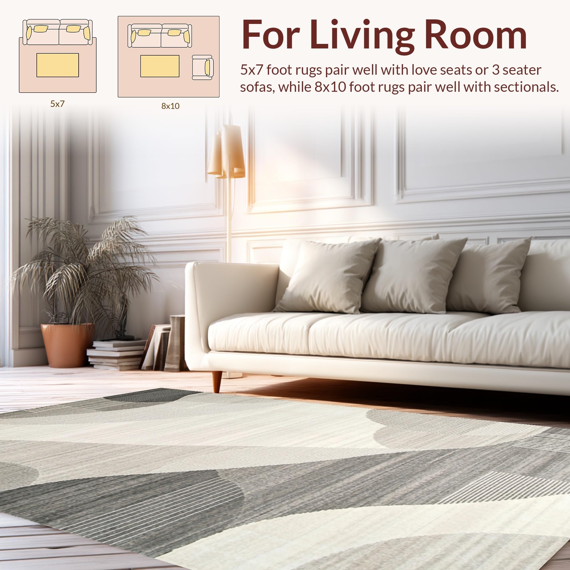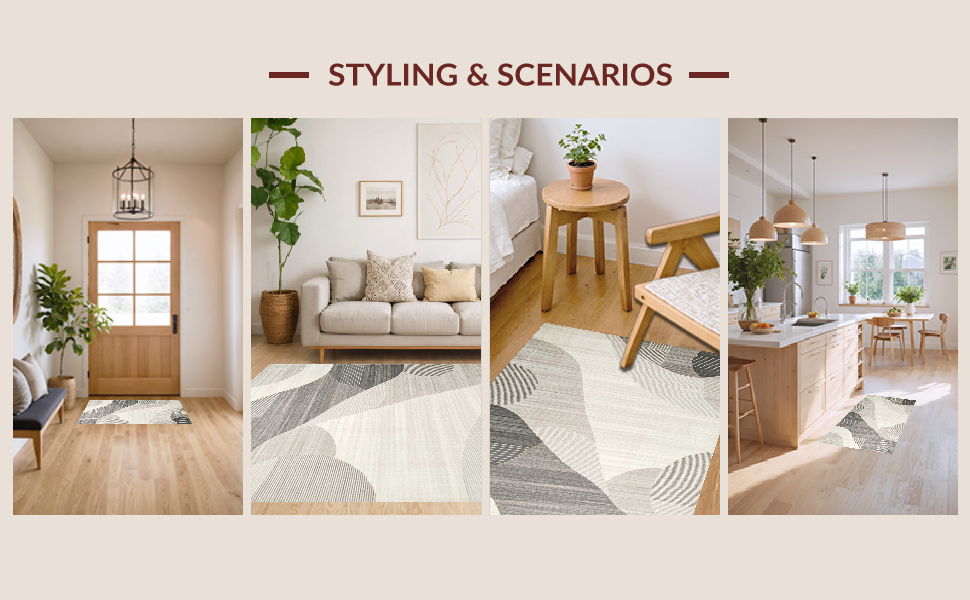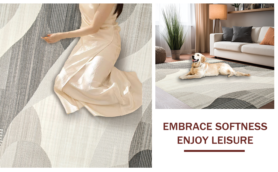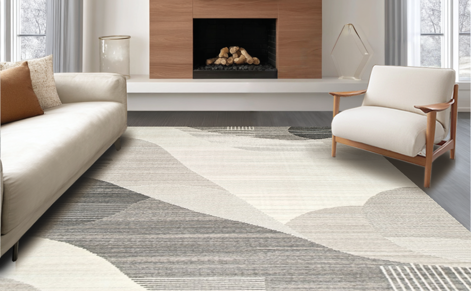 Ultra Soft Area Rug, Non Slip, Stain Resistant, Washable Area Rugs for Living Room, Bedroom, Elegant Abstract Geometric Motif(Gray) Overview: