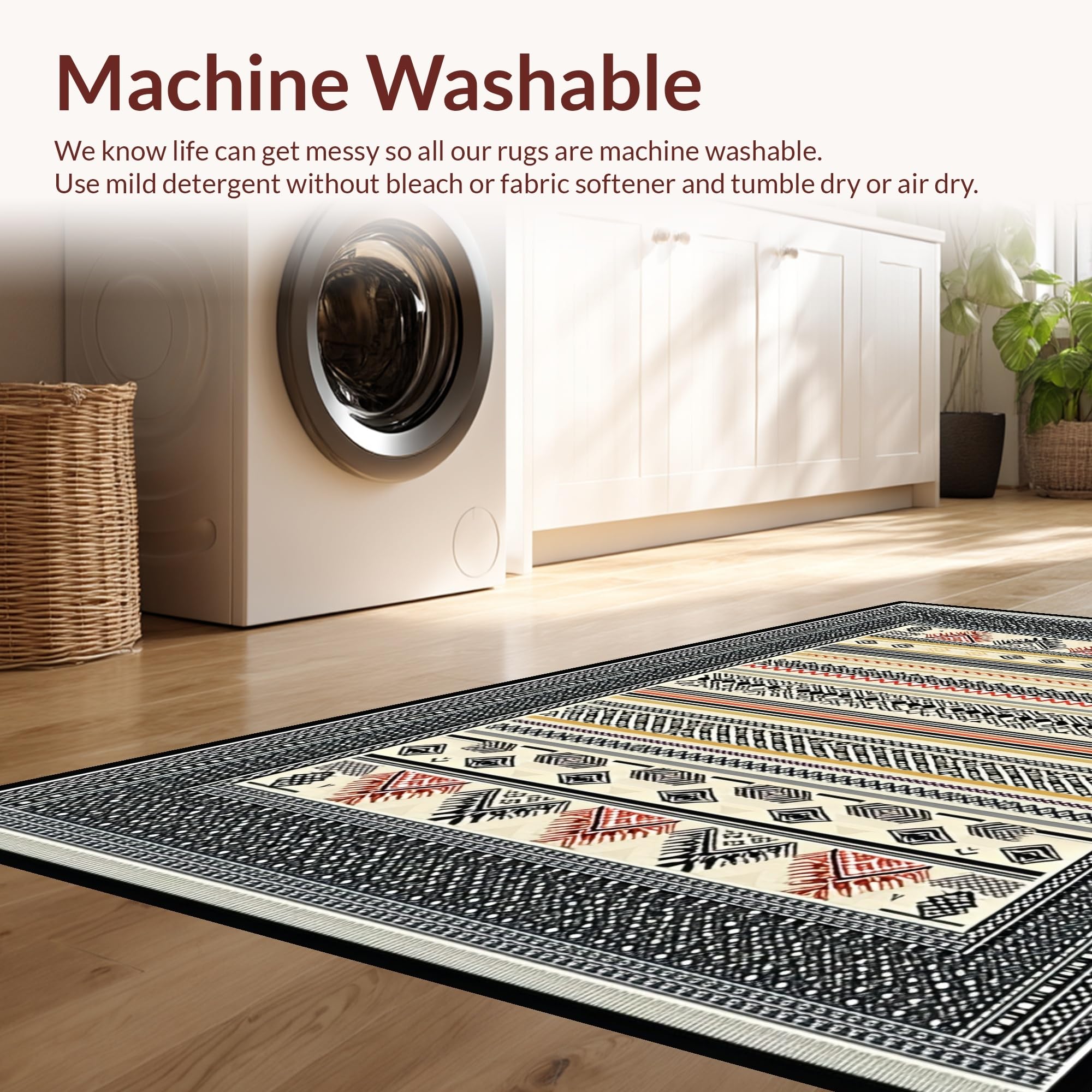 - Machine Washable: Our rugs can be easily thrown in the wash machine.