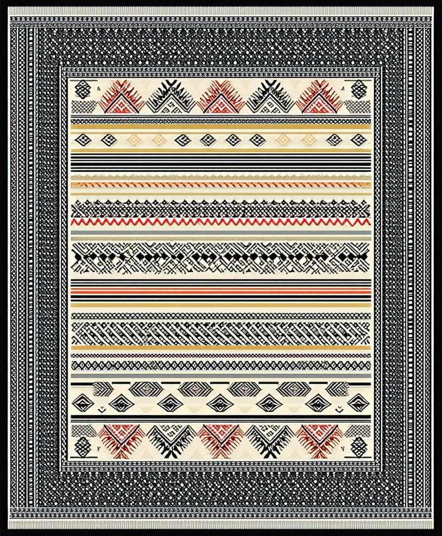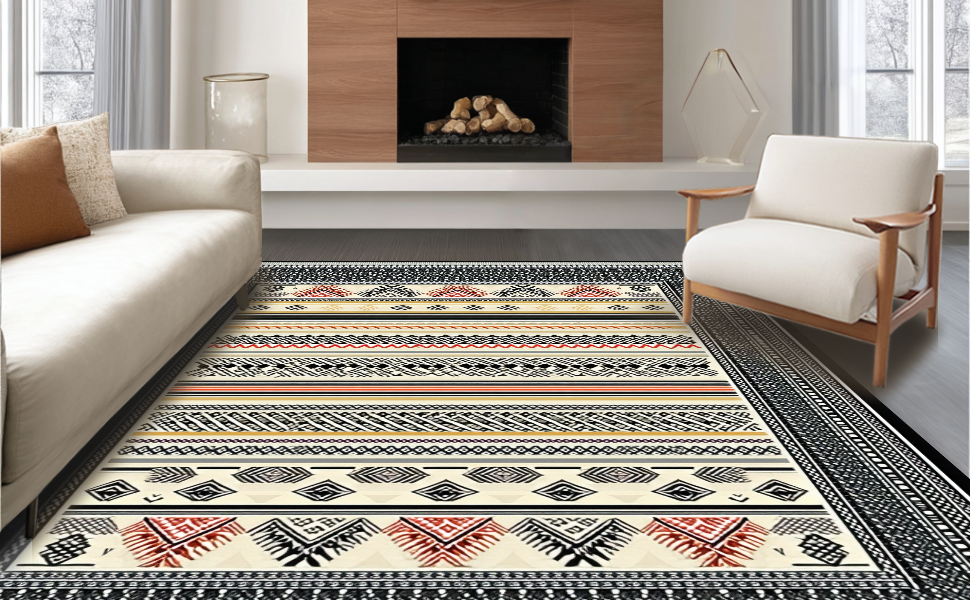 Ultra Soft Area Rug, Non Slip, Stain Resistant, Washable Area Rugs for Living Room, Bedroom, Elegant Abstract Layered Motif(Black) Overview: