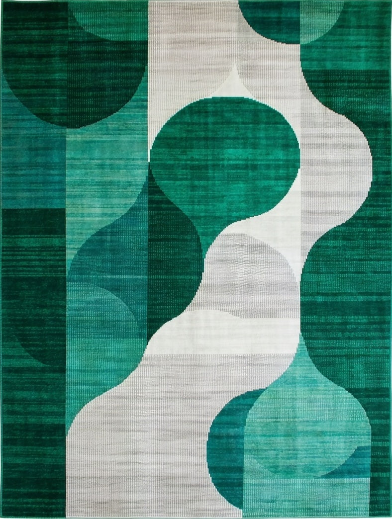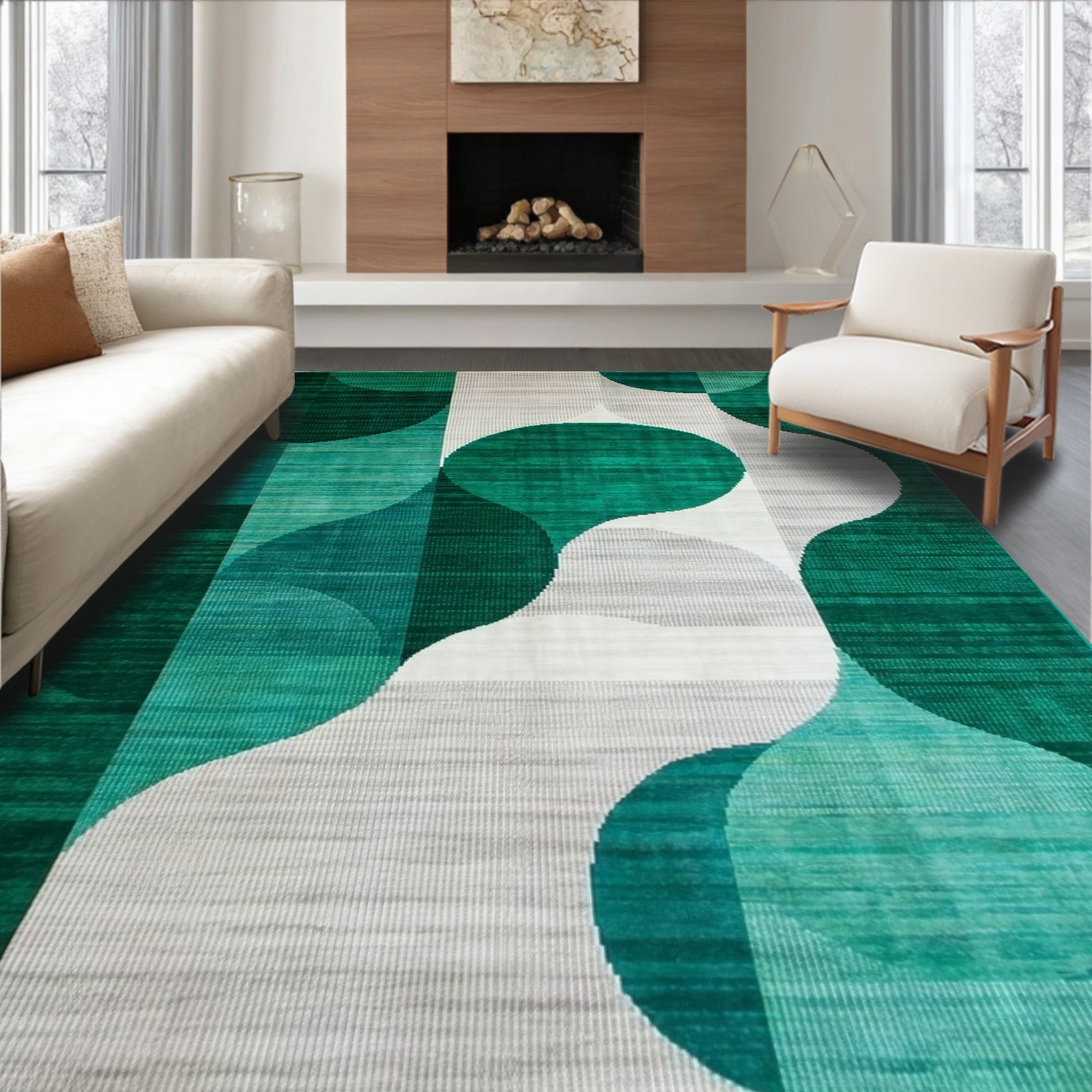 Ultra Soft Area Rug, Non Slip, Stain Resistant, Washable Area Rugs for Living Room, Bedroom, Elegant Abstract Scallop Area with Geometric Shapes and Modern Flair(Green) Overview: