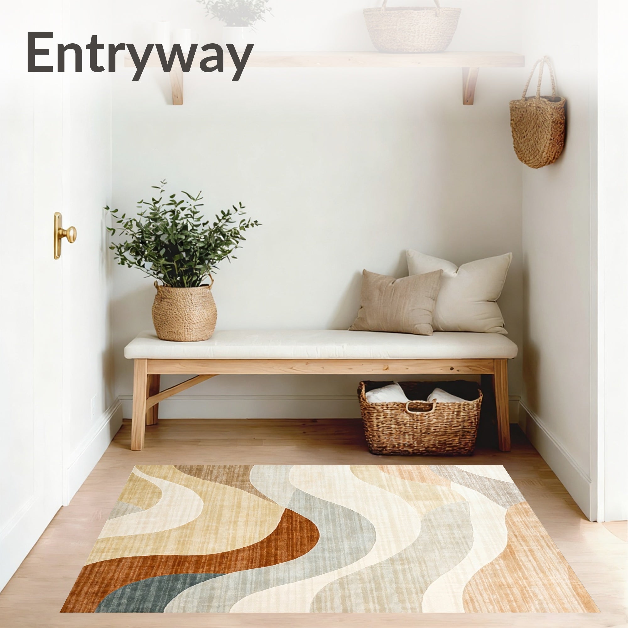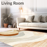 Ultra Soft Area Rug, Non Slip, Stain Resistant, Washable Area Rugs for Living Room, Bedroom, Elegant Abstract Swirl Lines Area with Warm Beige and Brown Tones(Beige) Overview: