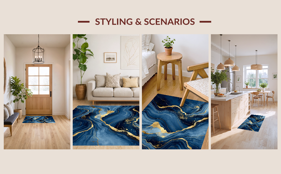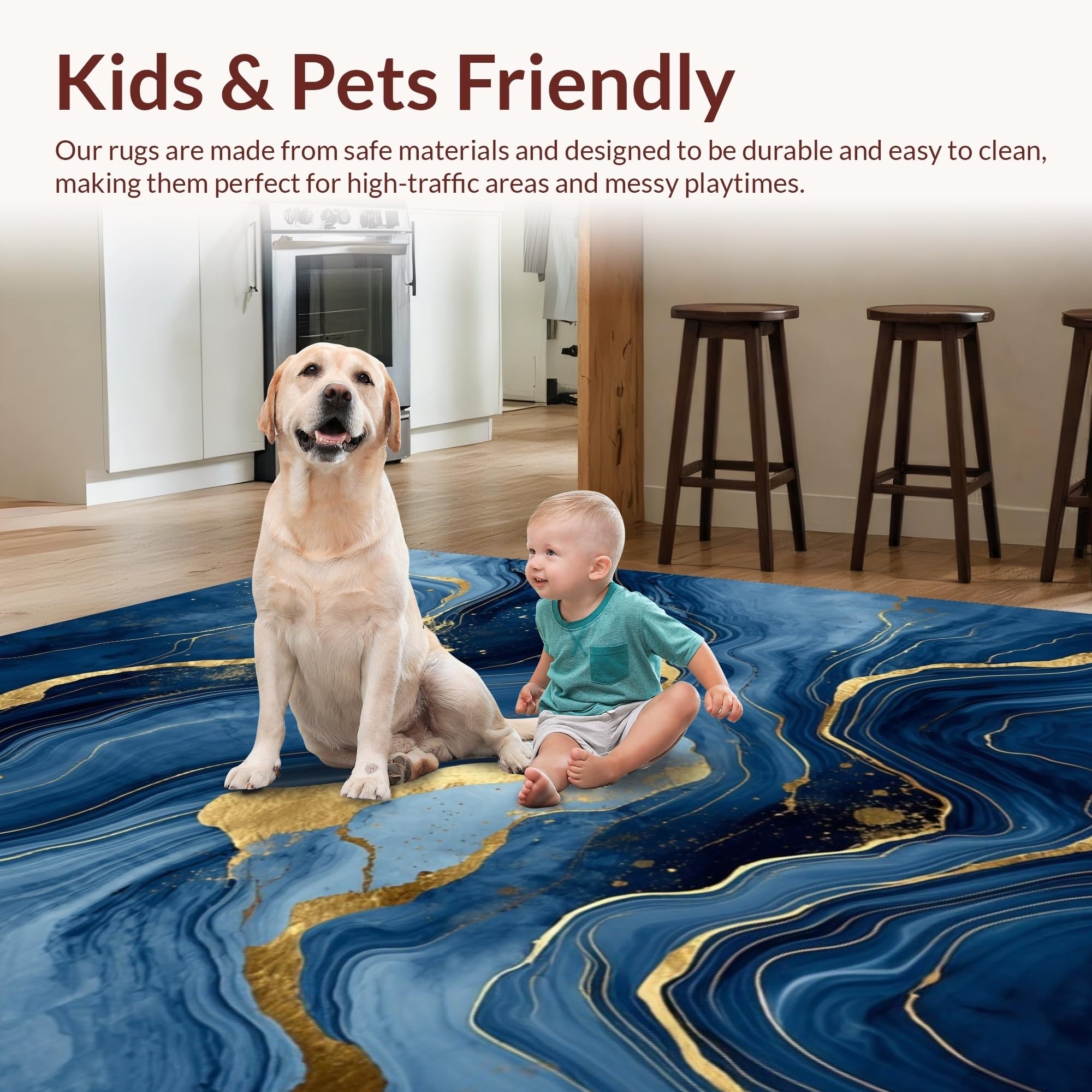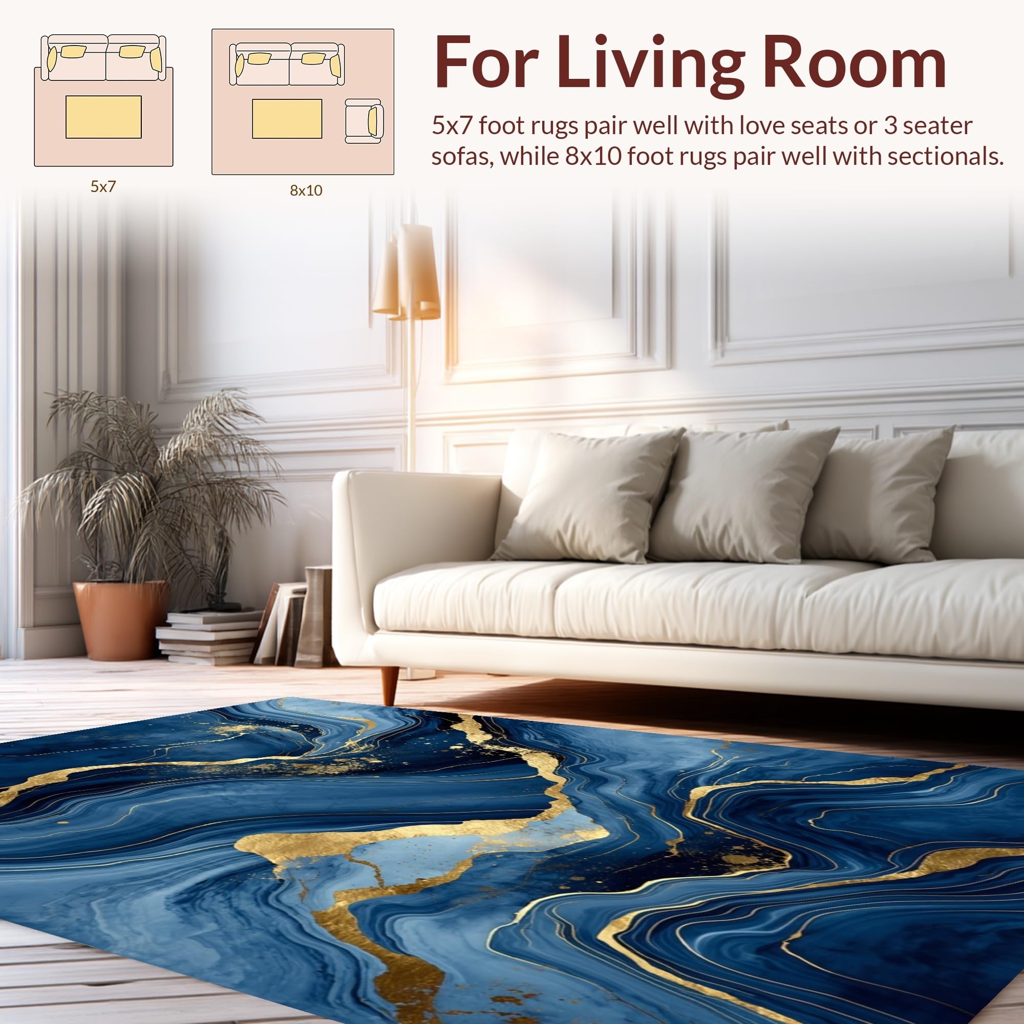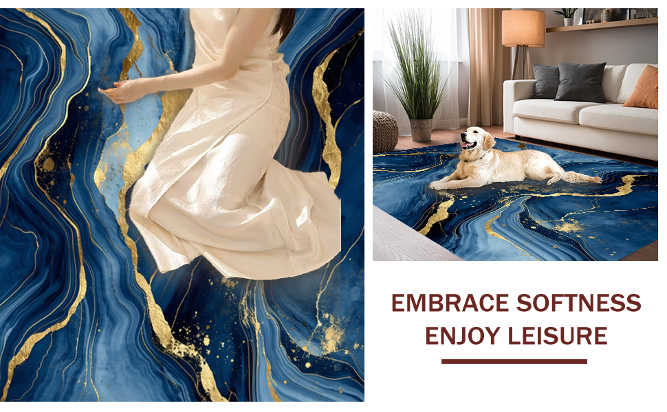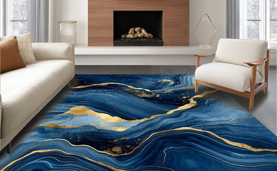 Ultra Soft Area Rug, Non Slip, Stain Resistant, Washable Area Rugs for Living Room, Bedroom, Elegant Abstract Wavy Design(Blue) Overview: