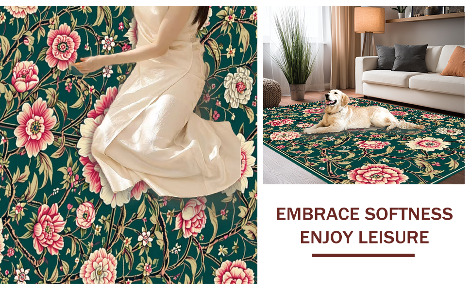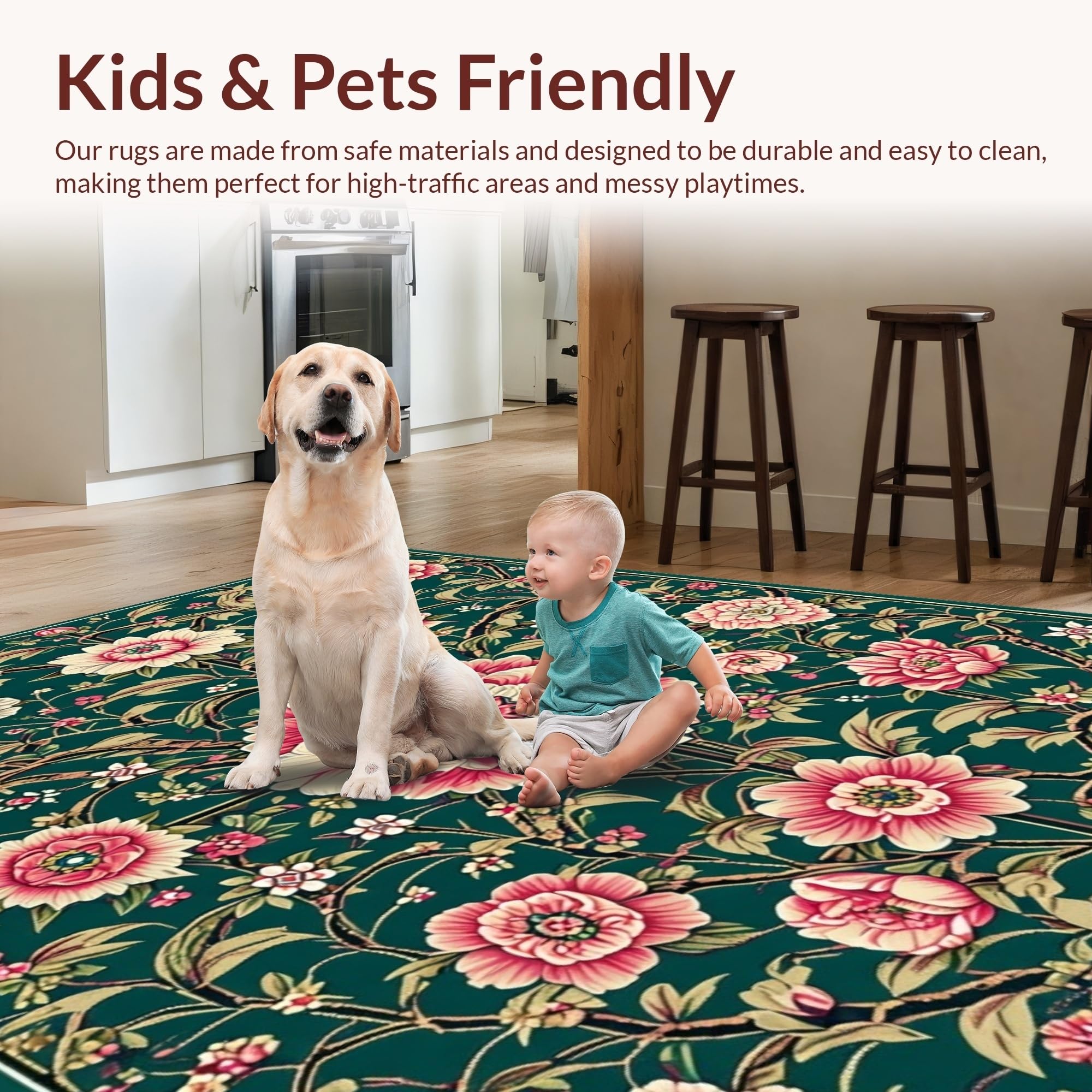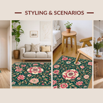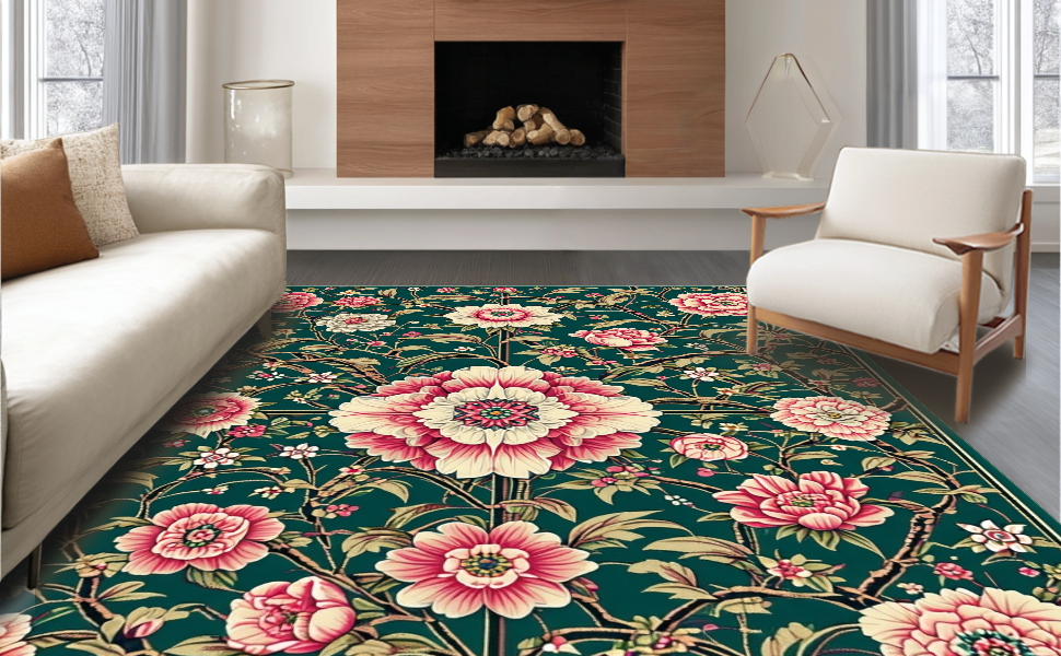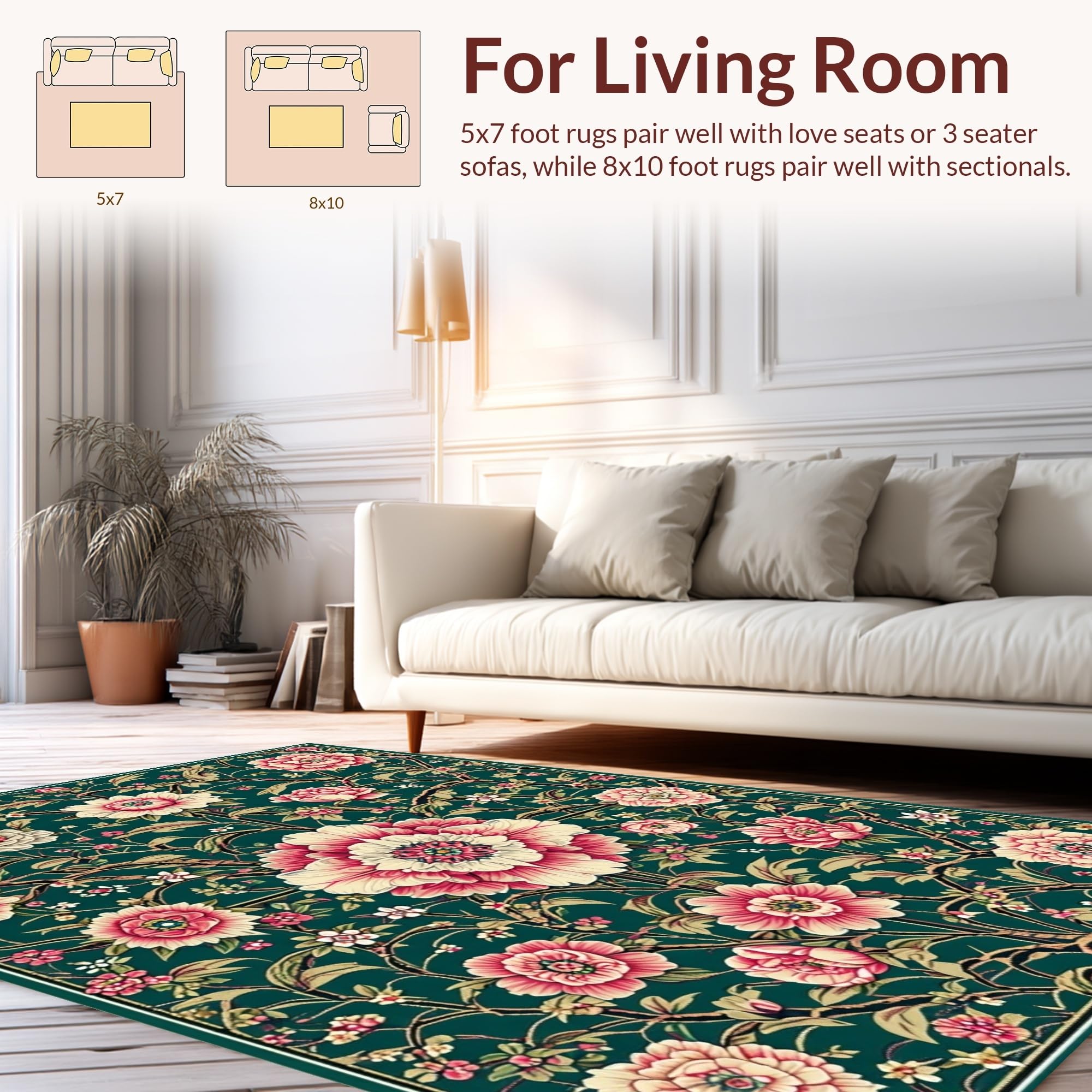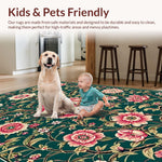 Ultra Soft Area Rug, Non Slip, Stain Resistant, Washable Area Rugs for Living Room, Bedroom, Elegant Antique Botanical Flourish(Green) Overview: