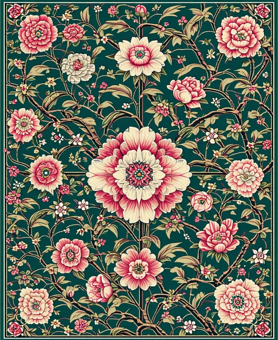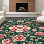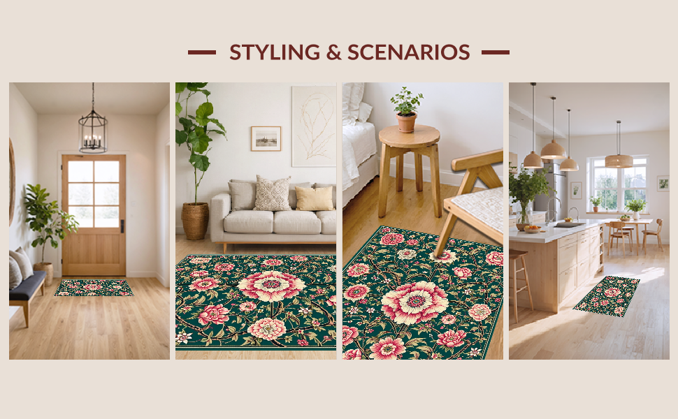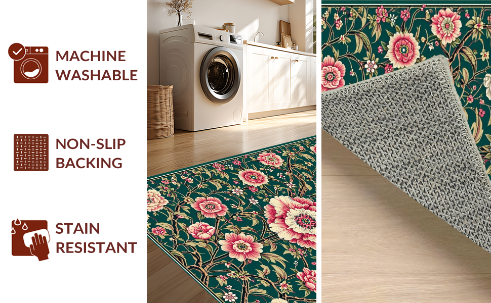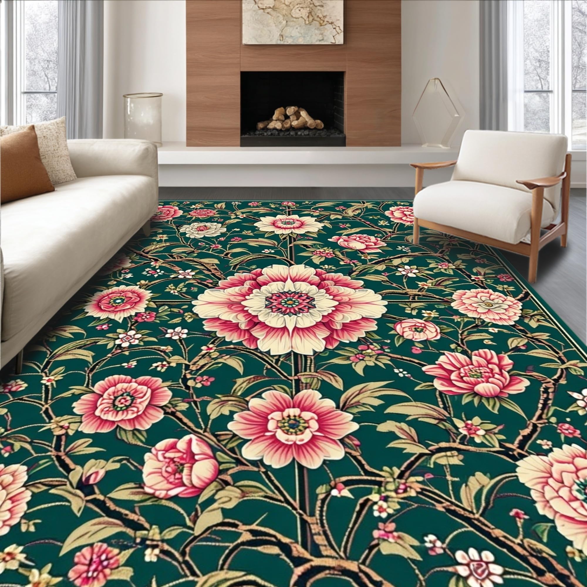 Ultra Soft Area Rug, Non Slip, Stain Resistant, Washable Area Rugs for Living Room, Bedroom, Elegant Antique Botanical Flourish(Green) Overview: