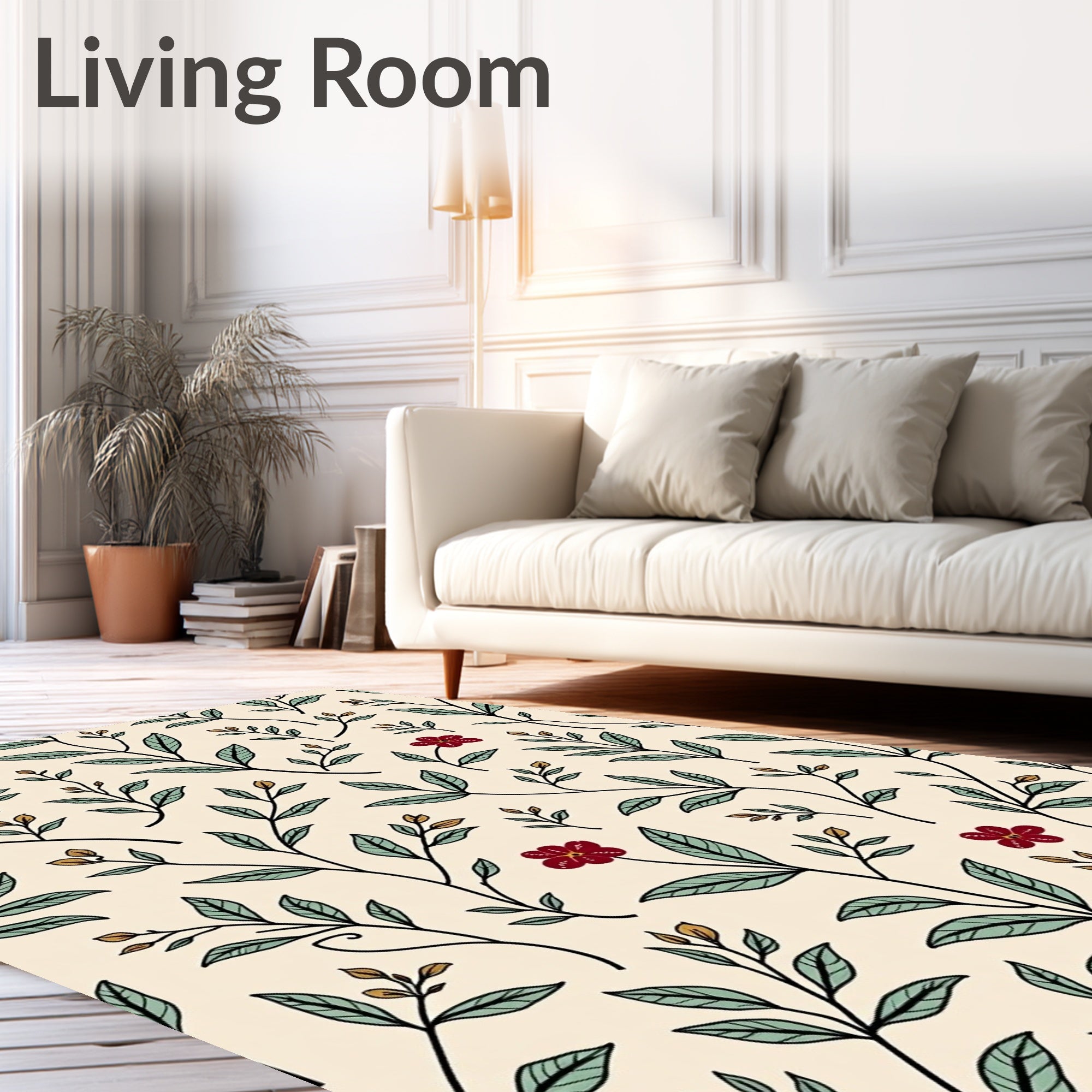 Ultra Soft Area Rug, Non Slip, Stain Resistant, Washable Area Rugs for Living Room, Bedroom, Elegant Arabesque Holiday with Botanical Vine(Ivory) Overview: