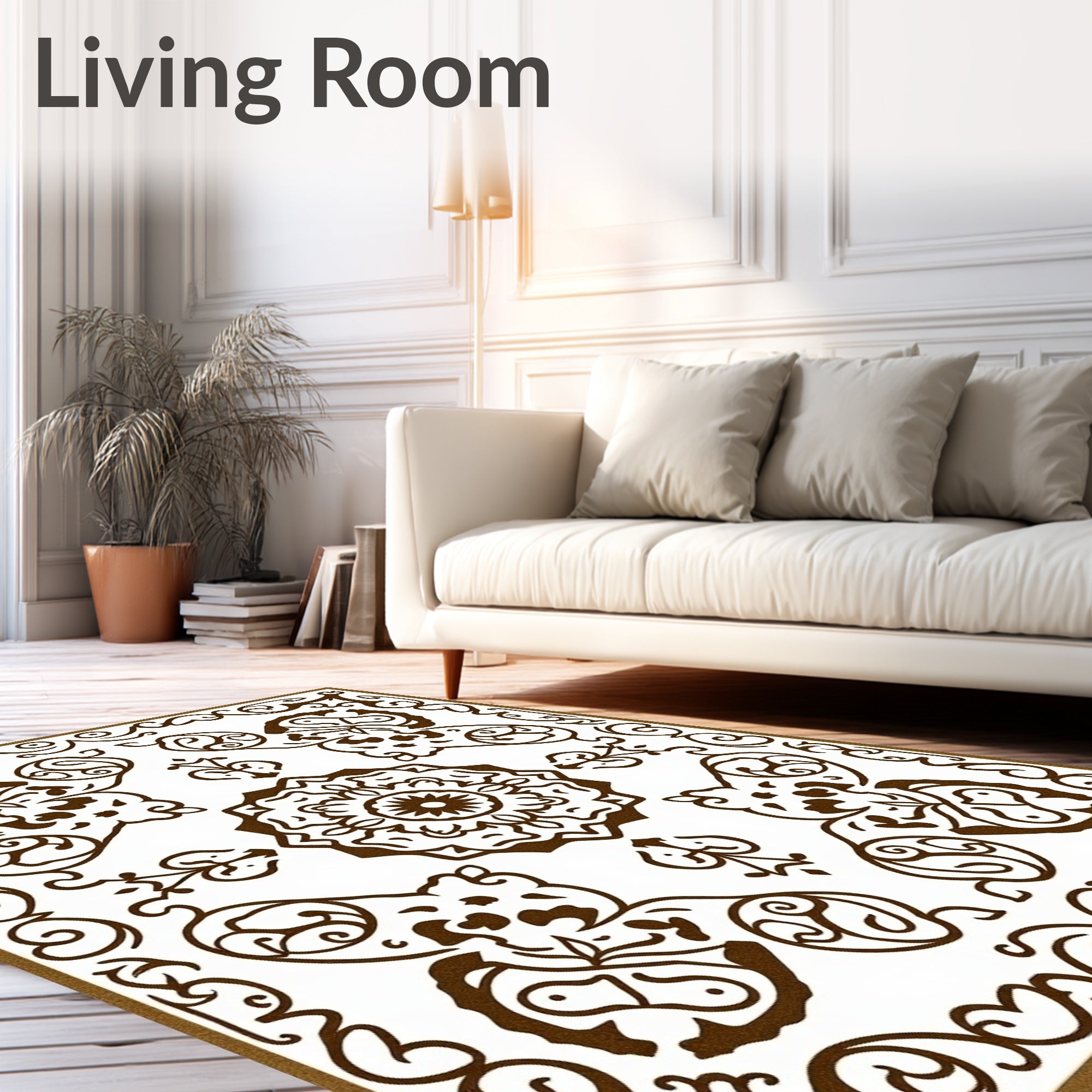 Ultra Soft Area Rug, Non Slip, Stain Resistant, Washable Area Rugs for Living Room, Bedroom, Elegant Arabesque Scroll Patina Filigree Weathered Artisan(Beige) Overview: