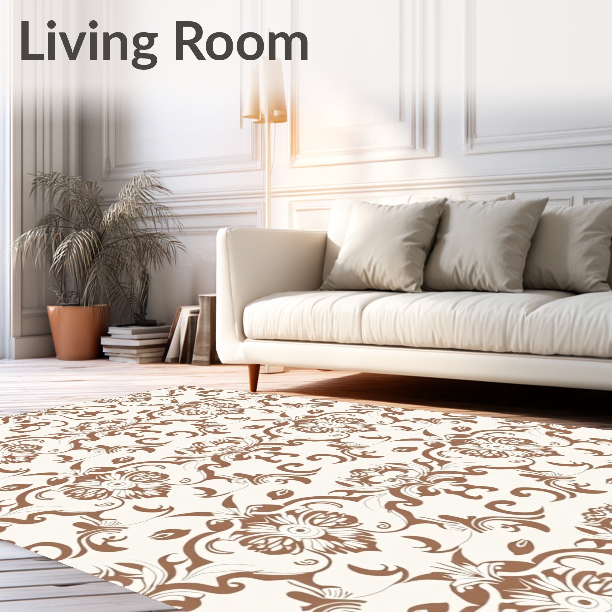 Flatwoven High Traffic Area Rug, Elegant Swirl Motif Featuring Delicate Tracery, Non Slip, Stain Resistant, Washable Area Rugs for Living Room, Bedroom (Brown) Overview: