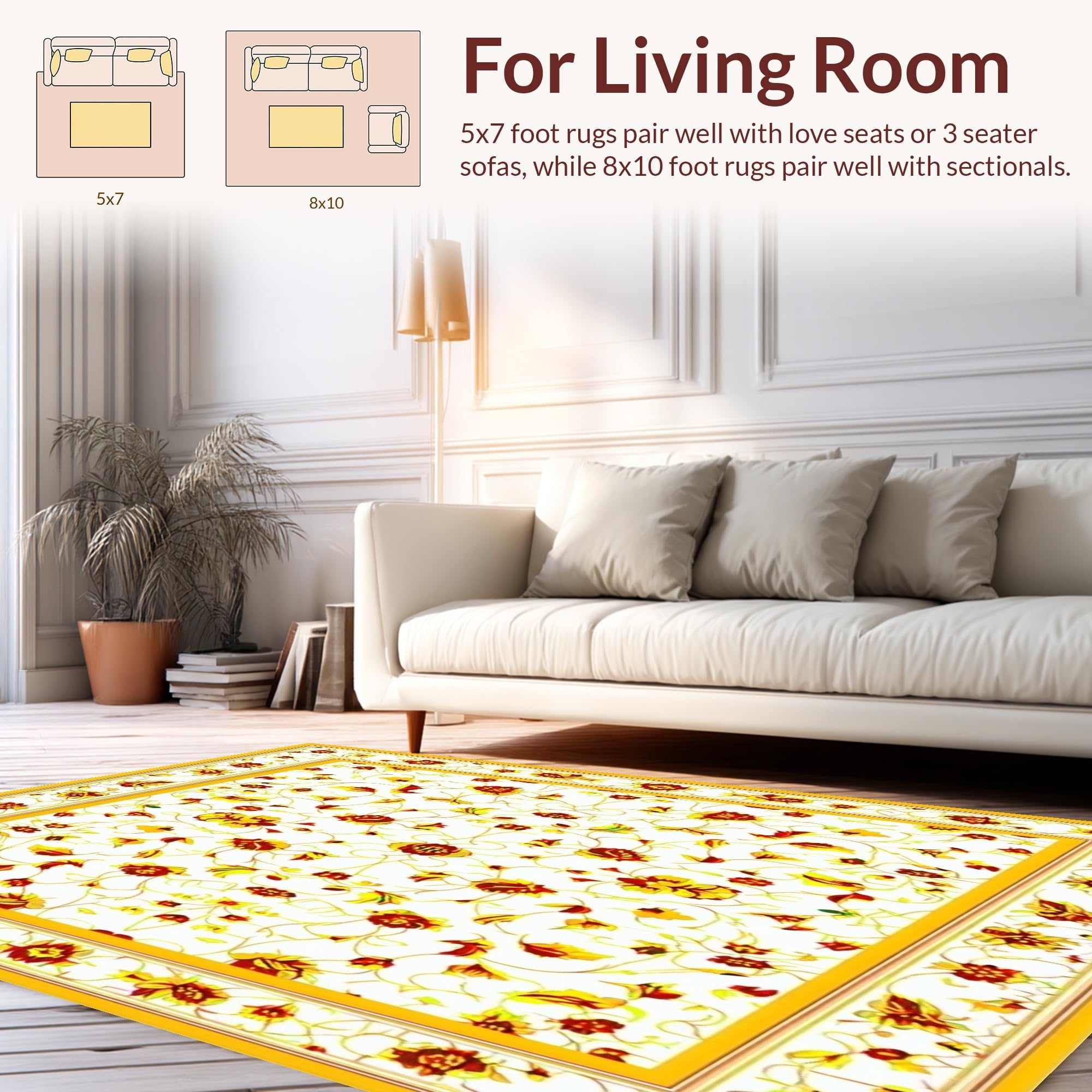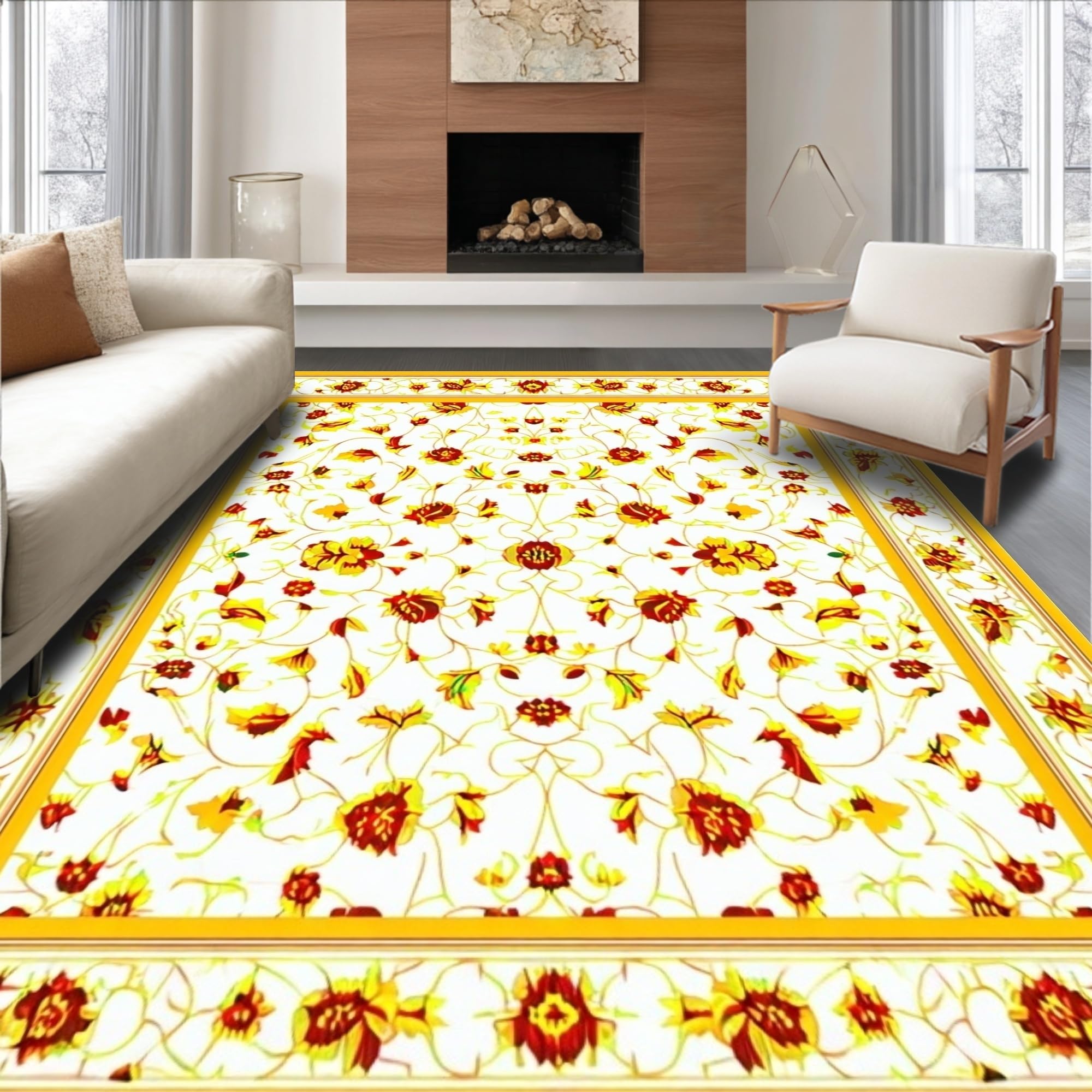 Ultra Soft Area Rug, Non Slip, Stain Resistant, Washable Area Rugs for Living Room, Bedroom, Elegant Area Featuring Ornate Floral and Geometric Design(White) Overview: