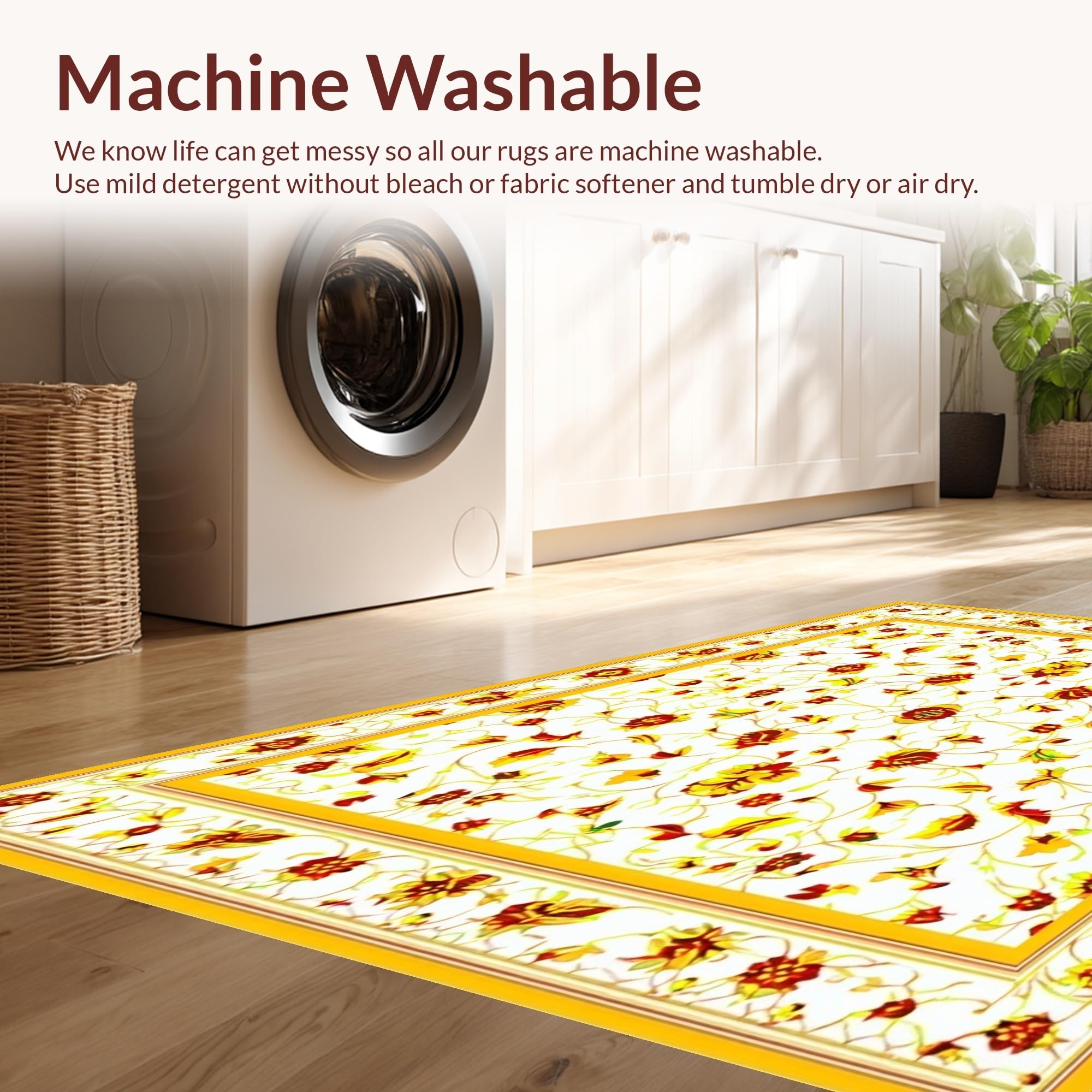 - Machine Washable: Our rugs can be easily thrown in the wash machine.