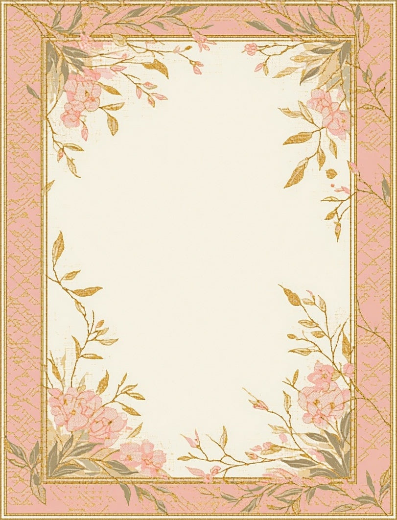 Elegant Area with Subtle Pink and Gold Leaf Design for Stylish Spaces(Pink)
