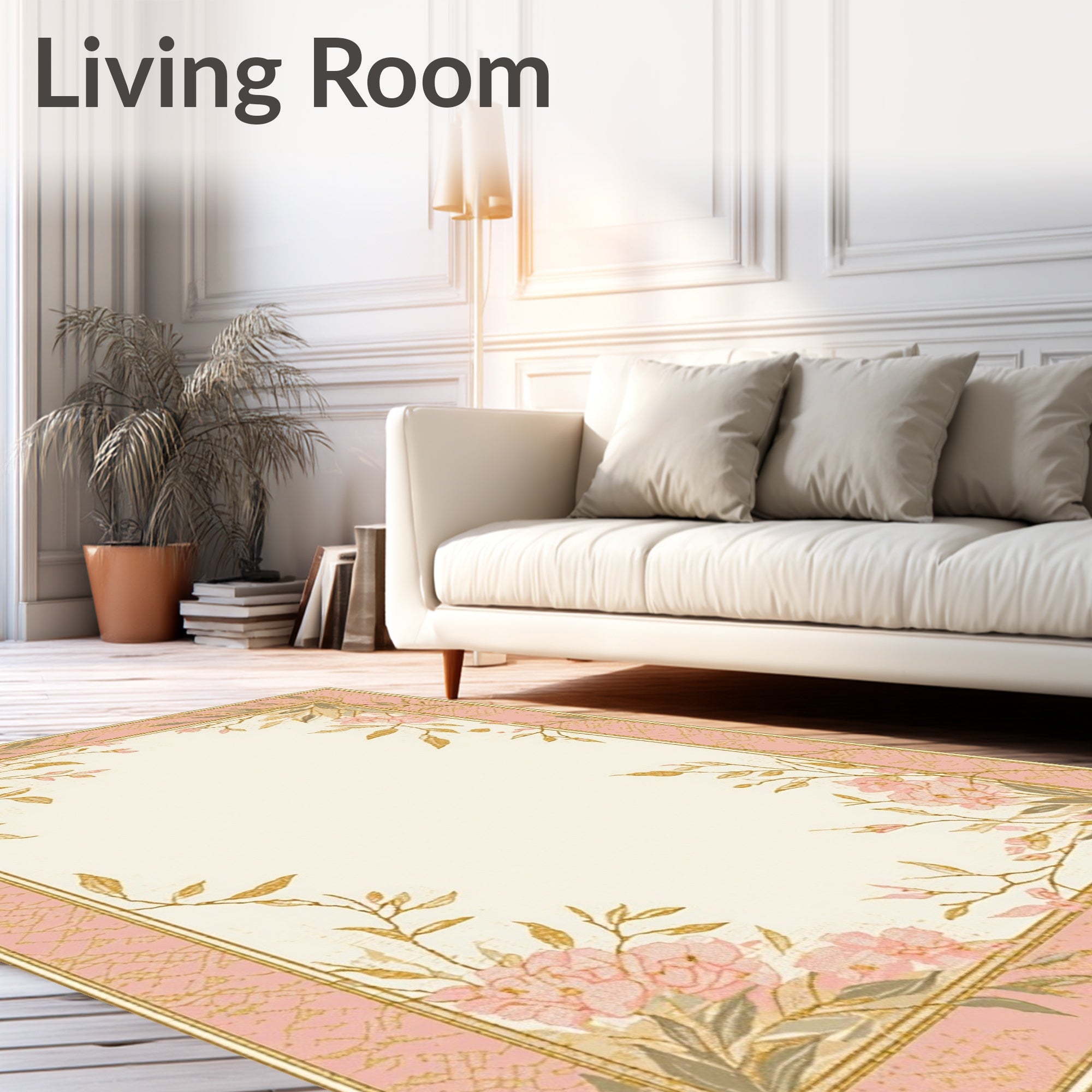 Ultra Soft Area Rug, Non Slip, Stain Resistant, Washable Area Rugs for Living Room, Bedroom, Elegant Area with Subtle Pink and Gold Leaf Design for Stylish Spaces(Pink) Overview: