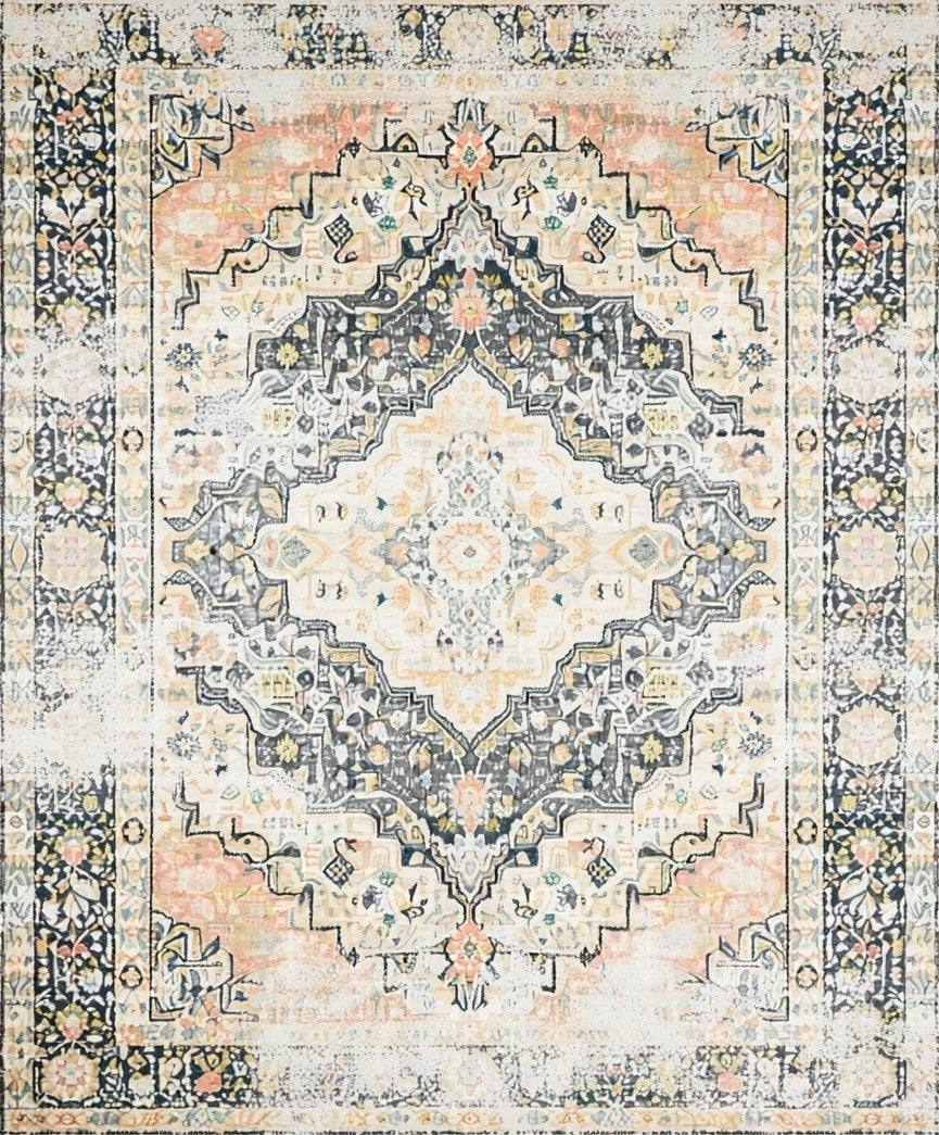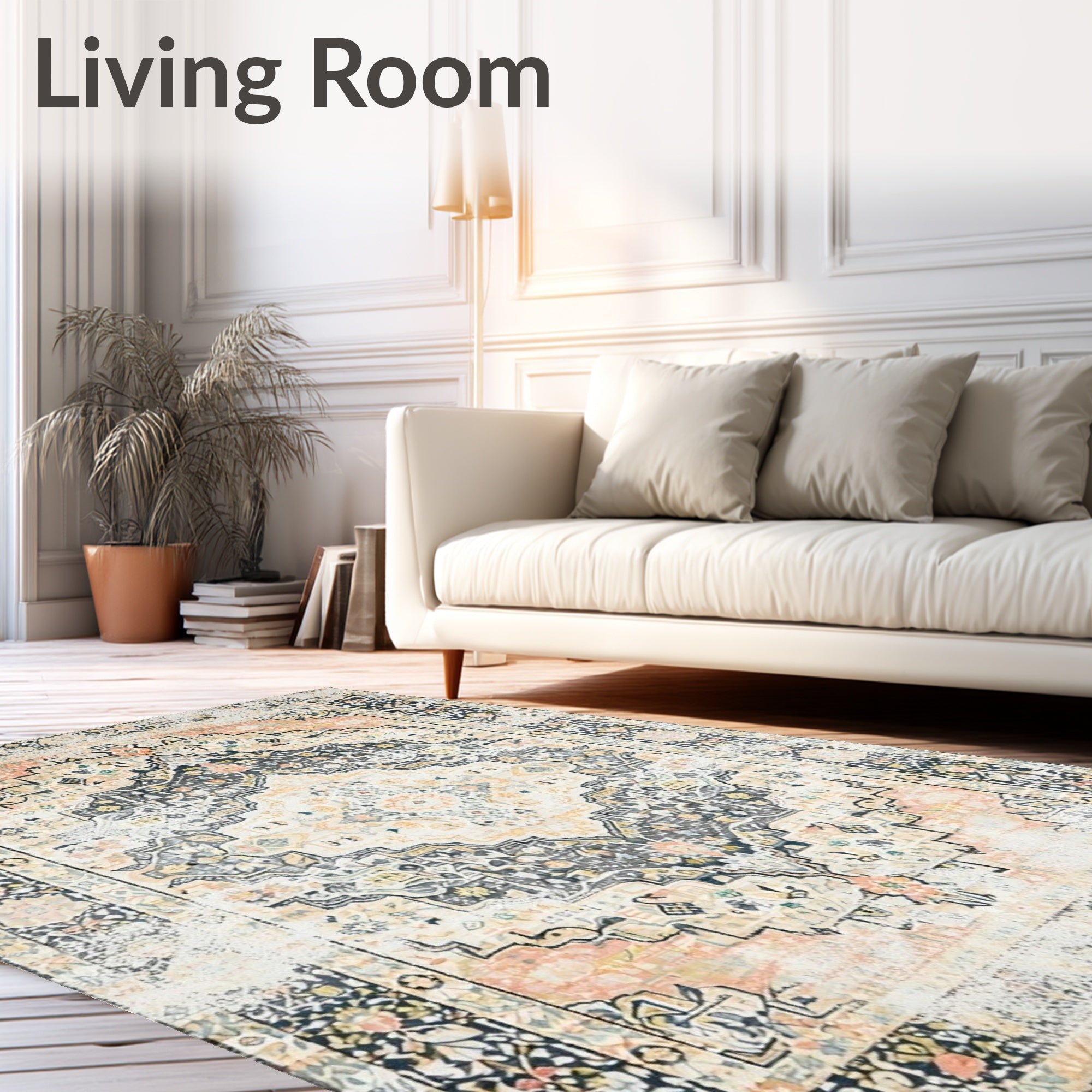 Ultra Soft Area Rug, Non Slip, Stain Resistant, Washable Area Rugs for Living Room, Bedroom, Elegant Beige and Grey with Faded Eastern Style Medallion Floral(Beige) Overview: