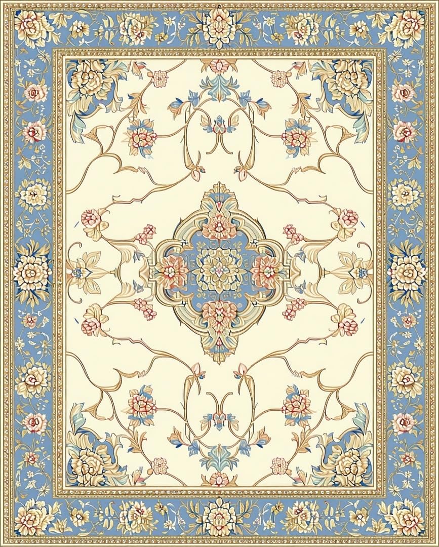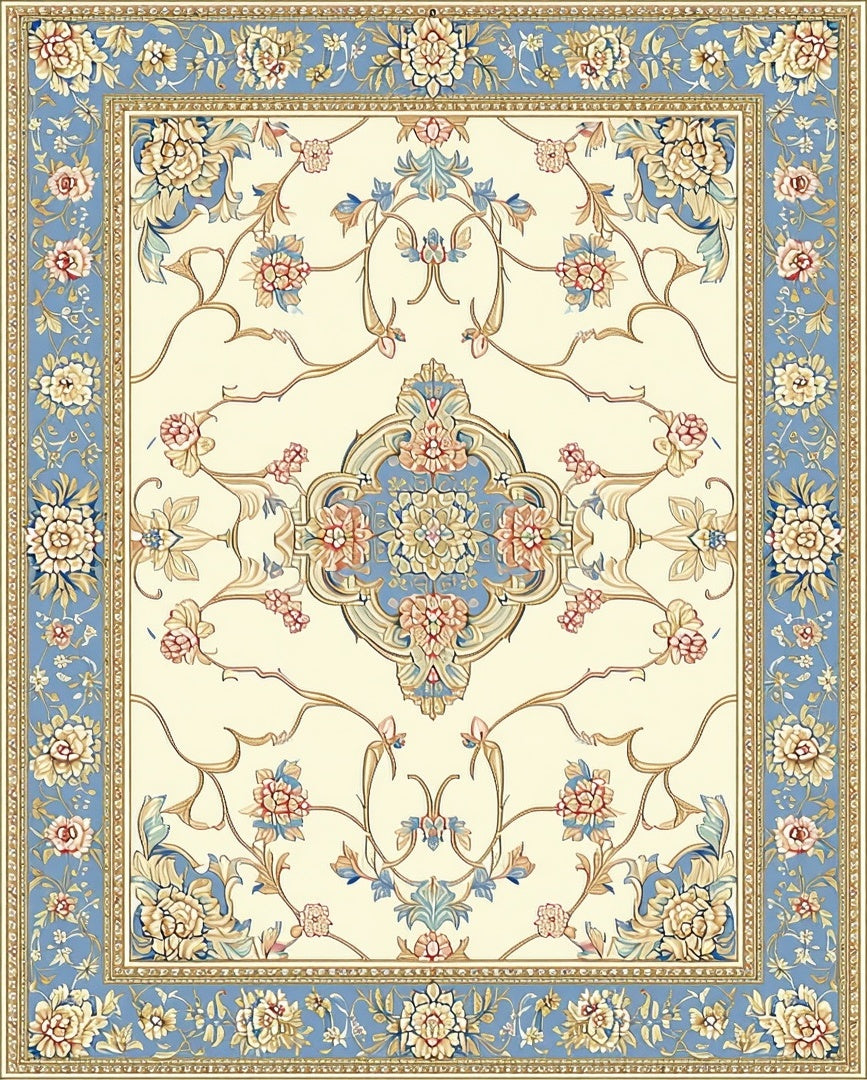 Elegant Beige and Light Blue Ornate Floral Borders(Beige)