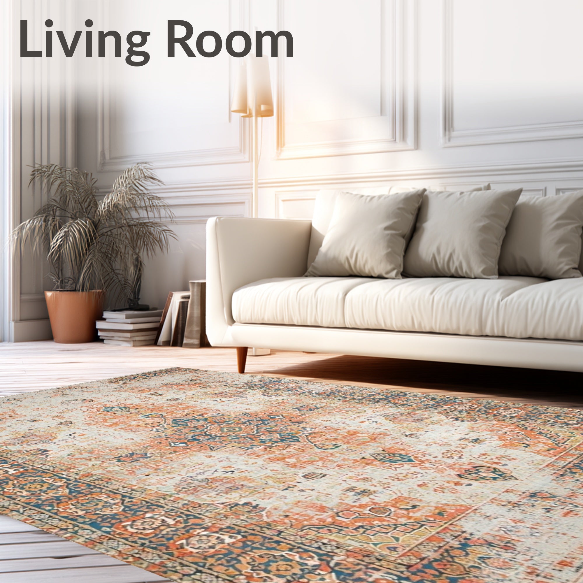 Ultra Soft Area Rug, Non Slip, Stain Resistant, Washable Area Rugs for Living Room, Bedroom, Elegant Beige and Multi Accent Area Featuring Classic Distressed Motifs(Orange) Overview:
