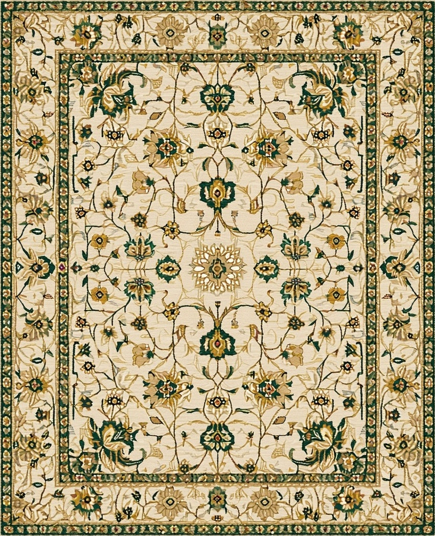 Elegant Beige Area with Intricate Floral Motifs and Green Accents(Beige)