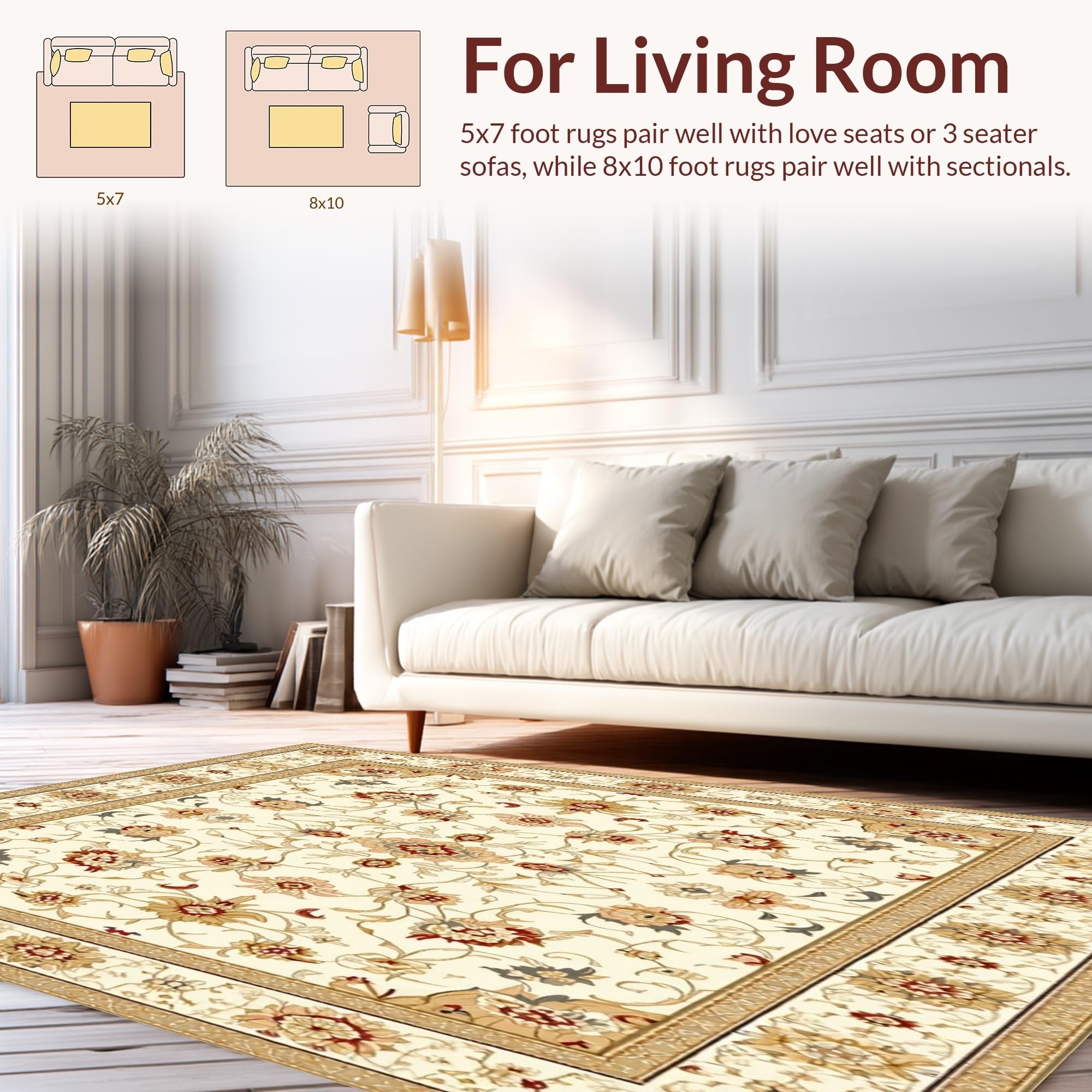 Ultra Soft Area Rug, Non Slip, Stain Resistant, Washable Area Rugs for Living Room, Bedroom, Elegant Beige Area(Beige) Overview: