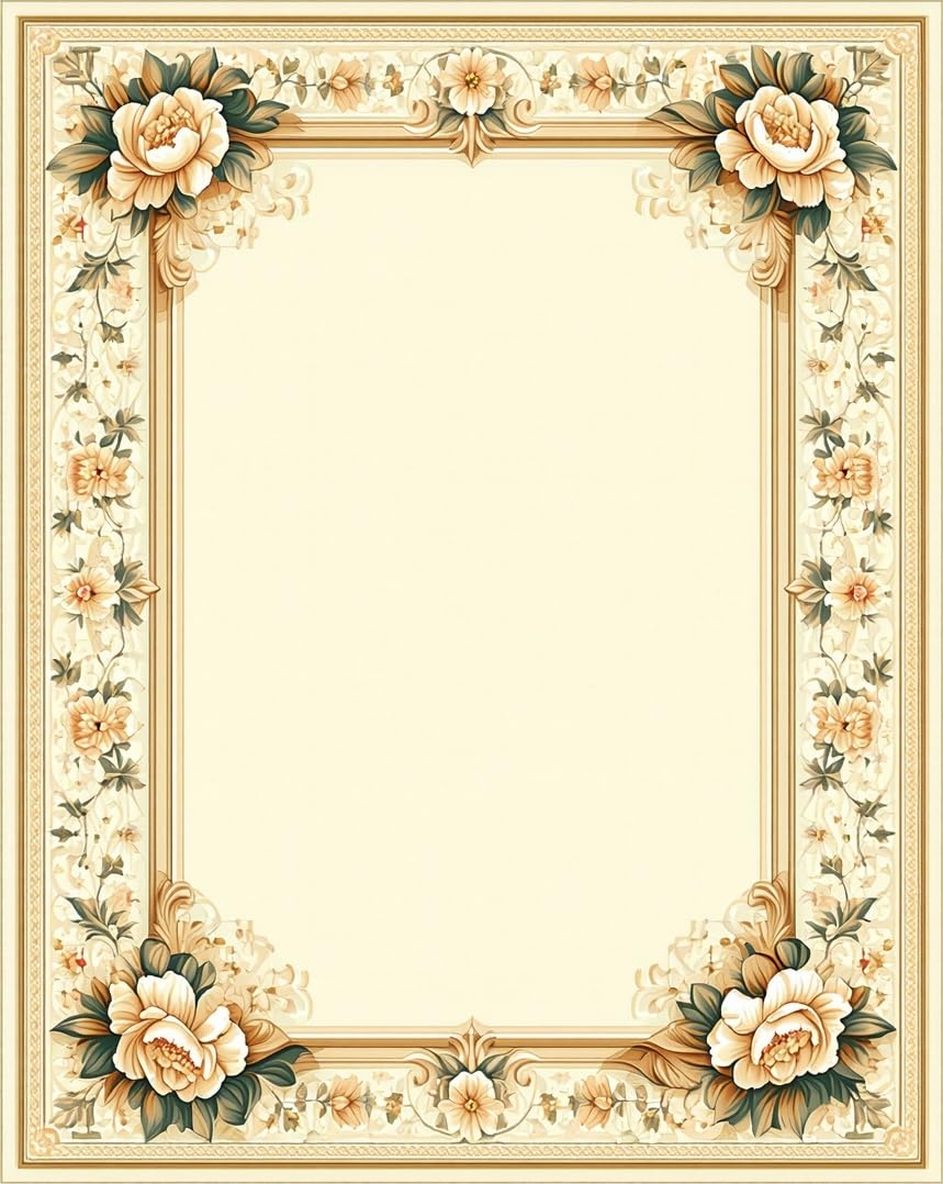 Elegant Beige Floral Border Area Timeless Geometric Design(Beige)