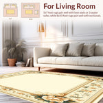 Ultra Soft Area Rug, Non Slip, Stain Resistant, Washable Area Rugs for Living Room, Bedroom, Elegant Beige Floral Border Area Timeless Geometric Design(Beige) Overview: