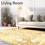 Ultra Soft Area Rug, Non Slip, Stain Resistant, Washable Area Rugs for Living Room, Bedroom, Elegant Beige Geometric Harmony with a Touch of Gold Accents(Gold) Overview:
