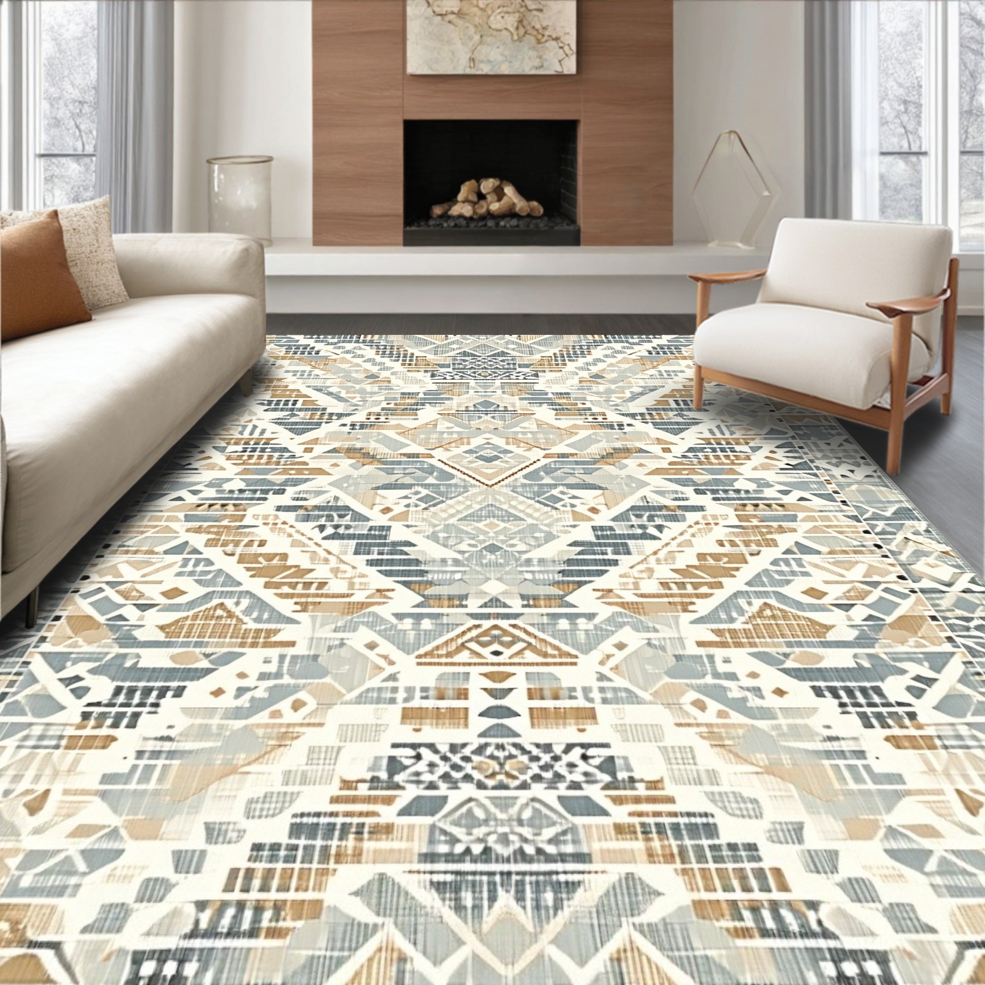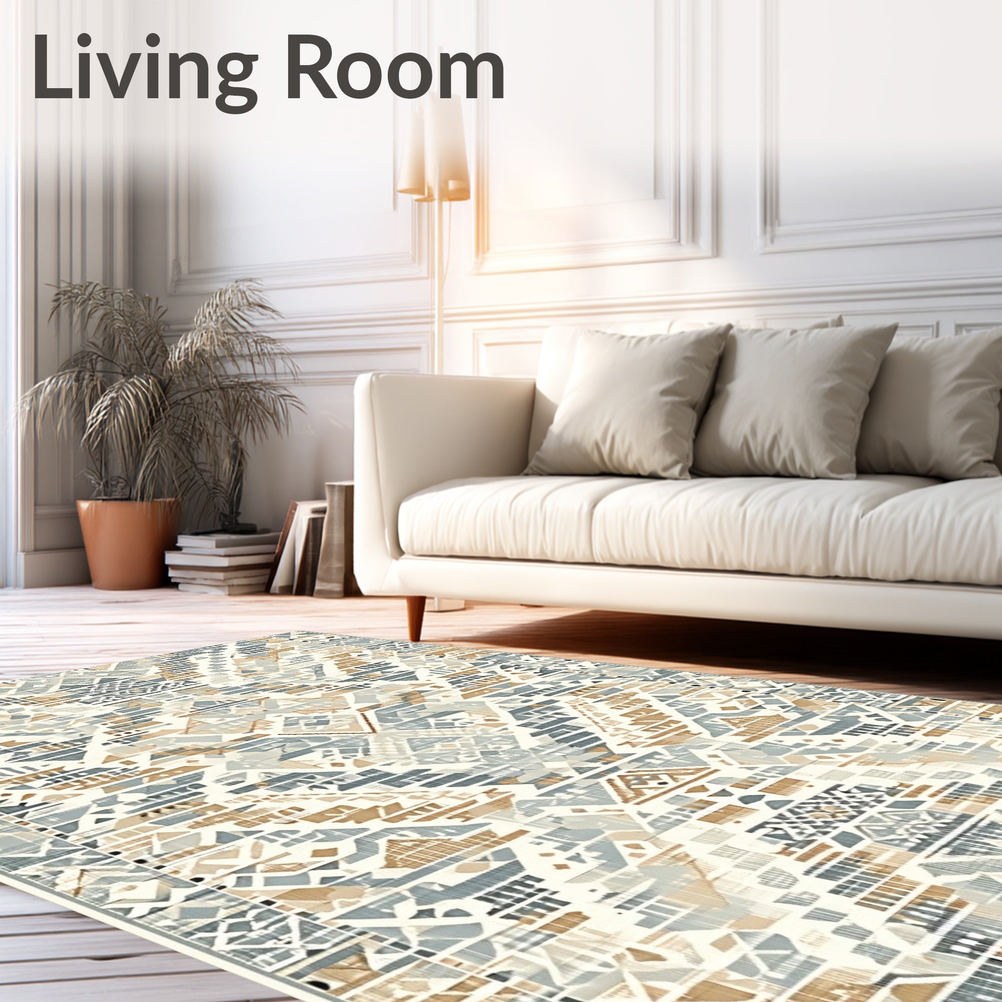 Ultra Soft Area Rug, Non Slip, Stain Resistant, Washable Area Rugs for Living Room, Bedroom, Elegant Beige Grey Interwoven Geometric Animal Inspired Floor(Beige) Overview: