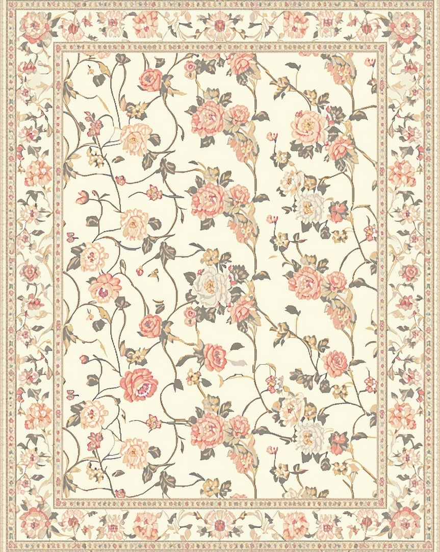 Elegant Beige Kitchen Area Floral Runner Non Slip(Ivory)