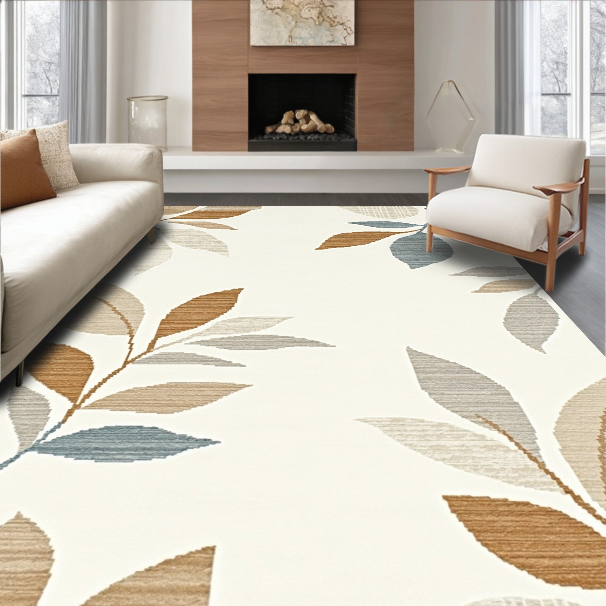 Ultra Soft Area Rug, Non Slip, Stain Resistant, Washable Area Rugs for Living Room, Bedroom, Elegant Beige Tropical Botanical Print Modern Area Chic Decor(Beige) Overview: