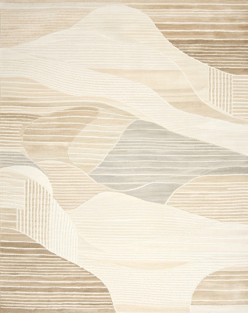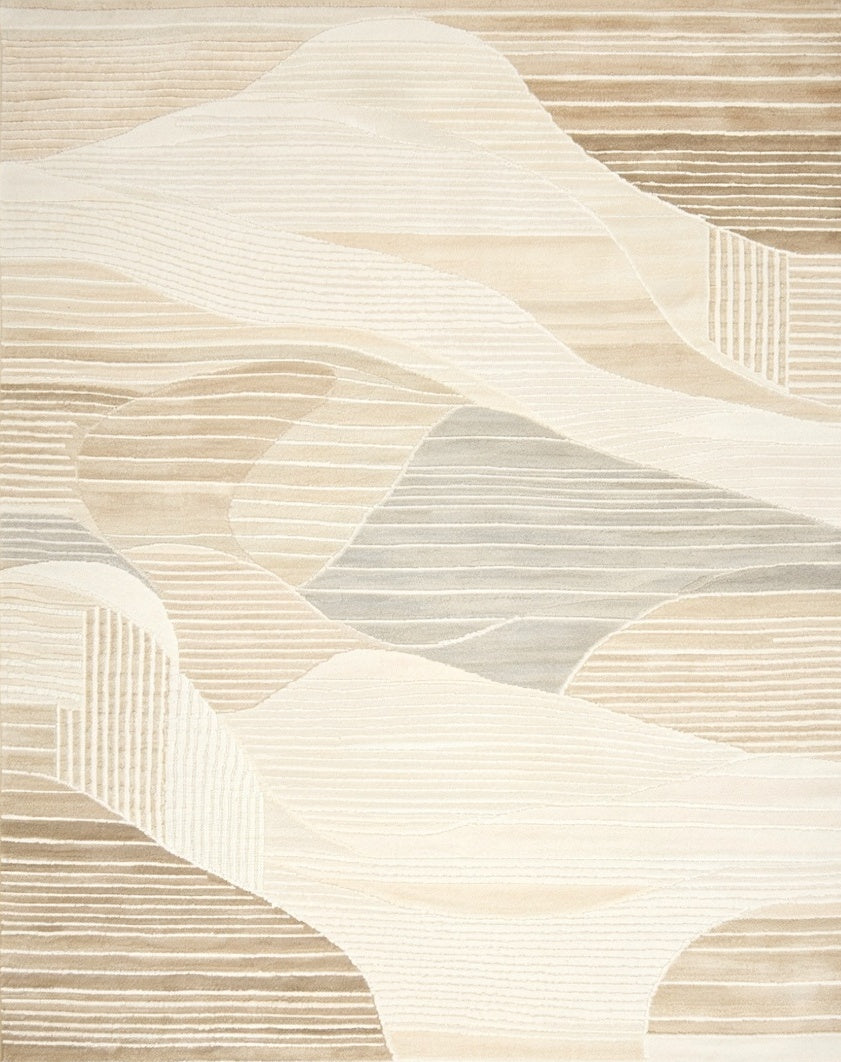 Ultra Soft Area Rug, Non Slip, Stain Resistant, Washable Area Rugs for Living Room, Bedroom, Elegant Beige with Cream Geometric Wave Design(Beige) Overview: