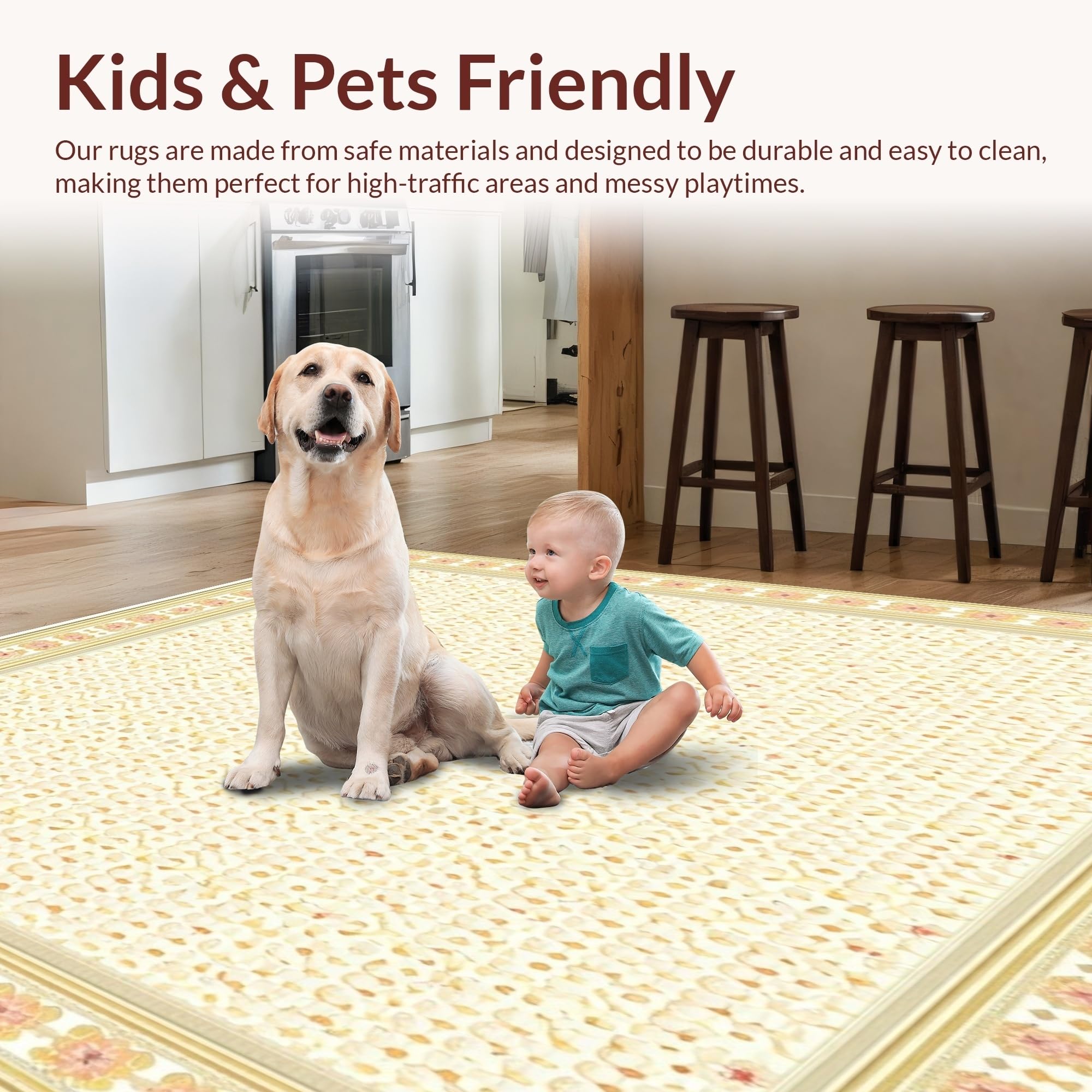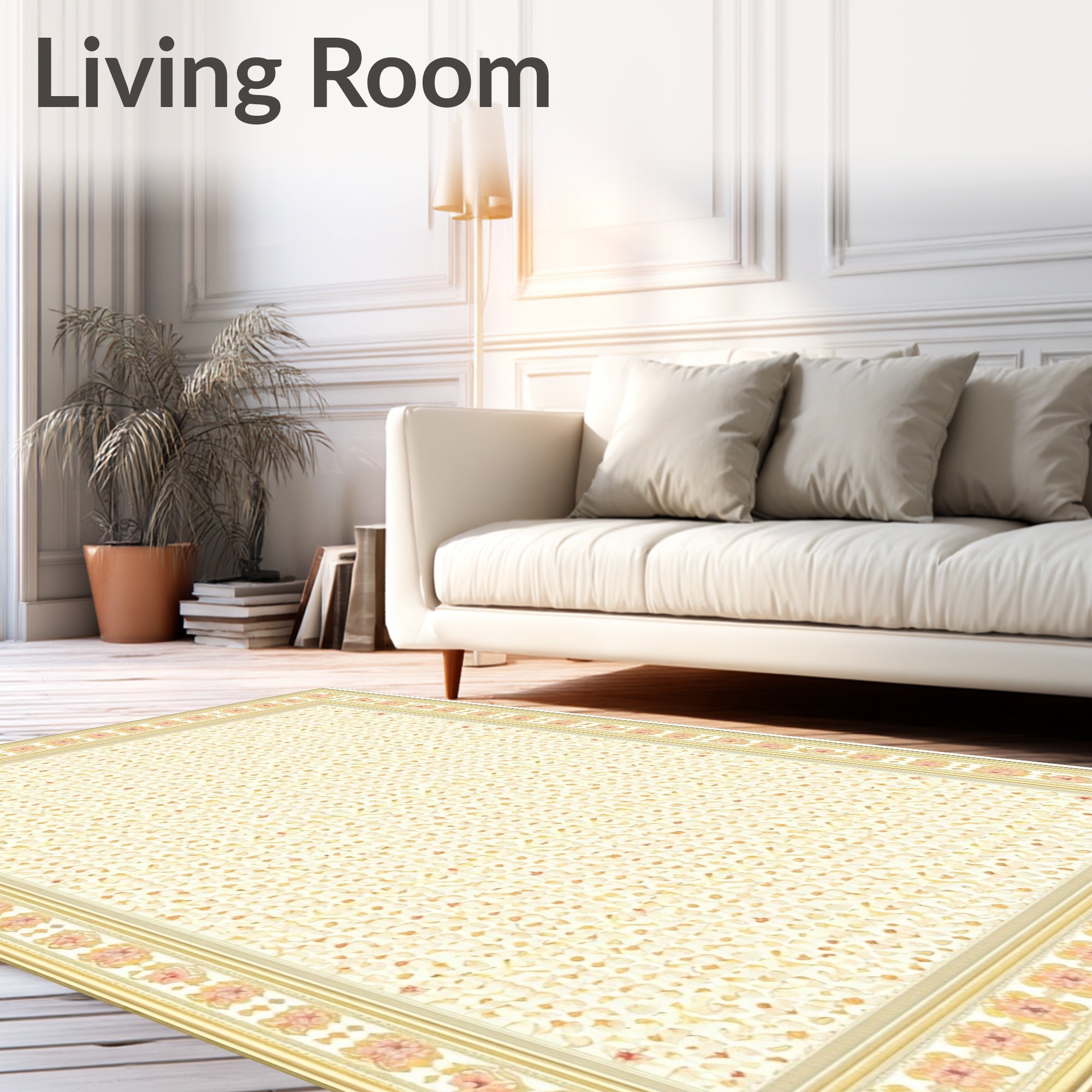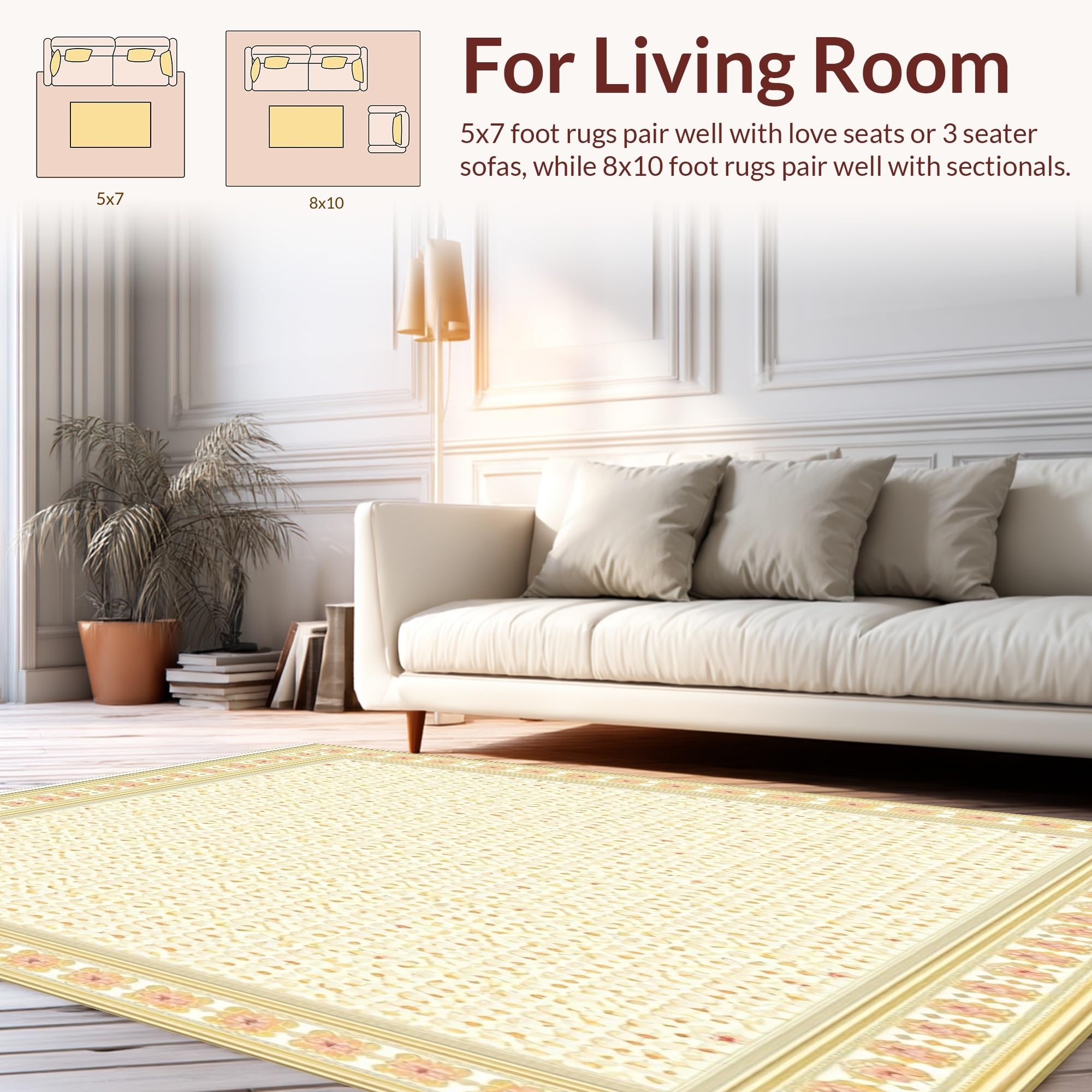 Ultra Soft Area Rug, Non Slip, Stain Resistant, Washable Area Rugs for Living Room, Bedroom, Elegant Beige with Floral Motifs Traditional Design(Beige) Overview: